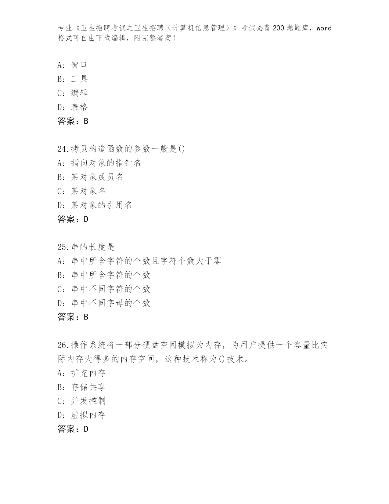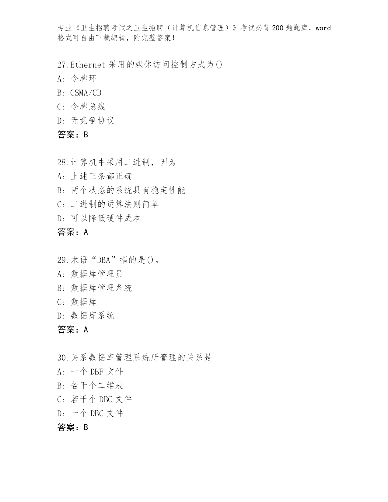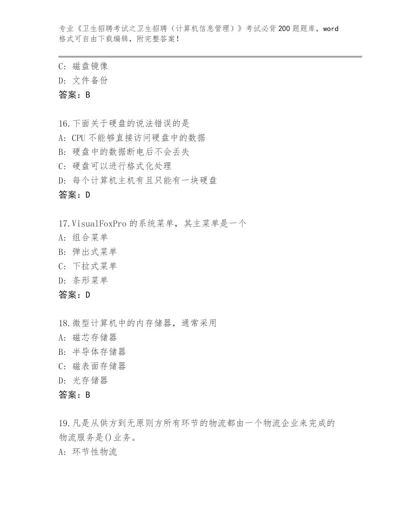 河北省赵县整理《卫生招聘考试之卫生招聘(计算机信息管理)》考试必背200题(研优卷)