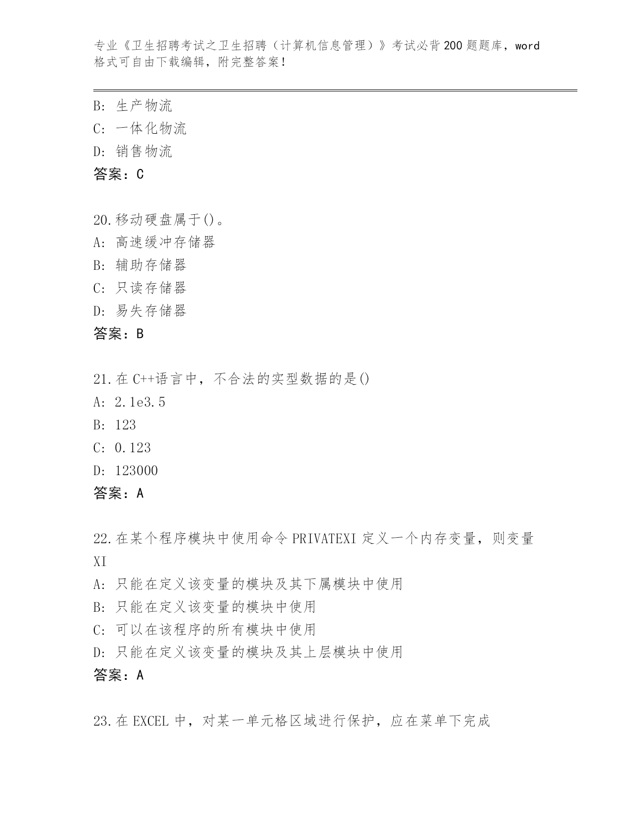 整理云南省临翔区《卫生招聘考试之卫生招聘(计算机信息管理)》考试必背200题真题【研优卷】
