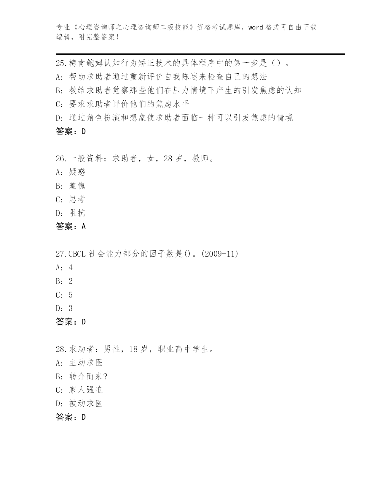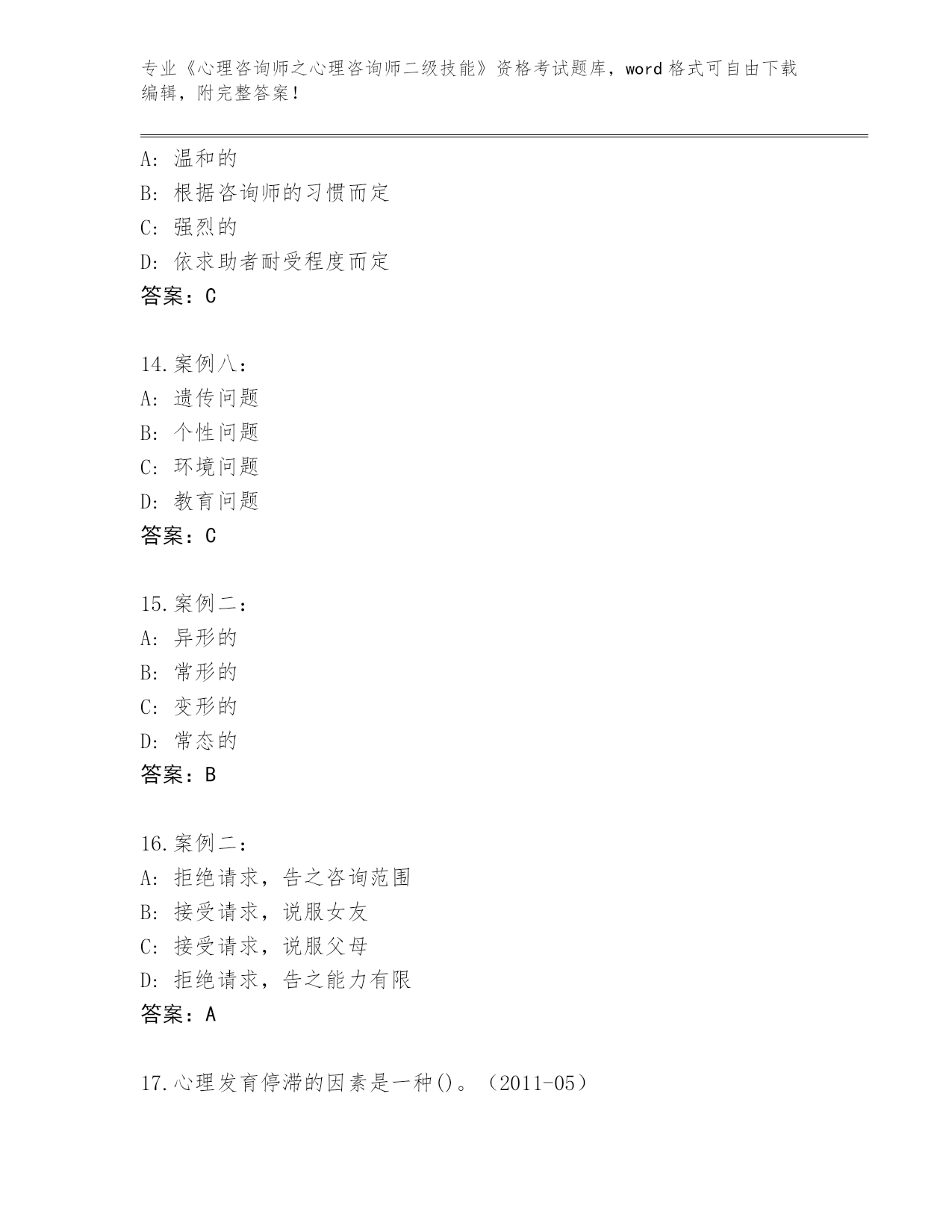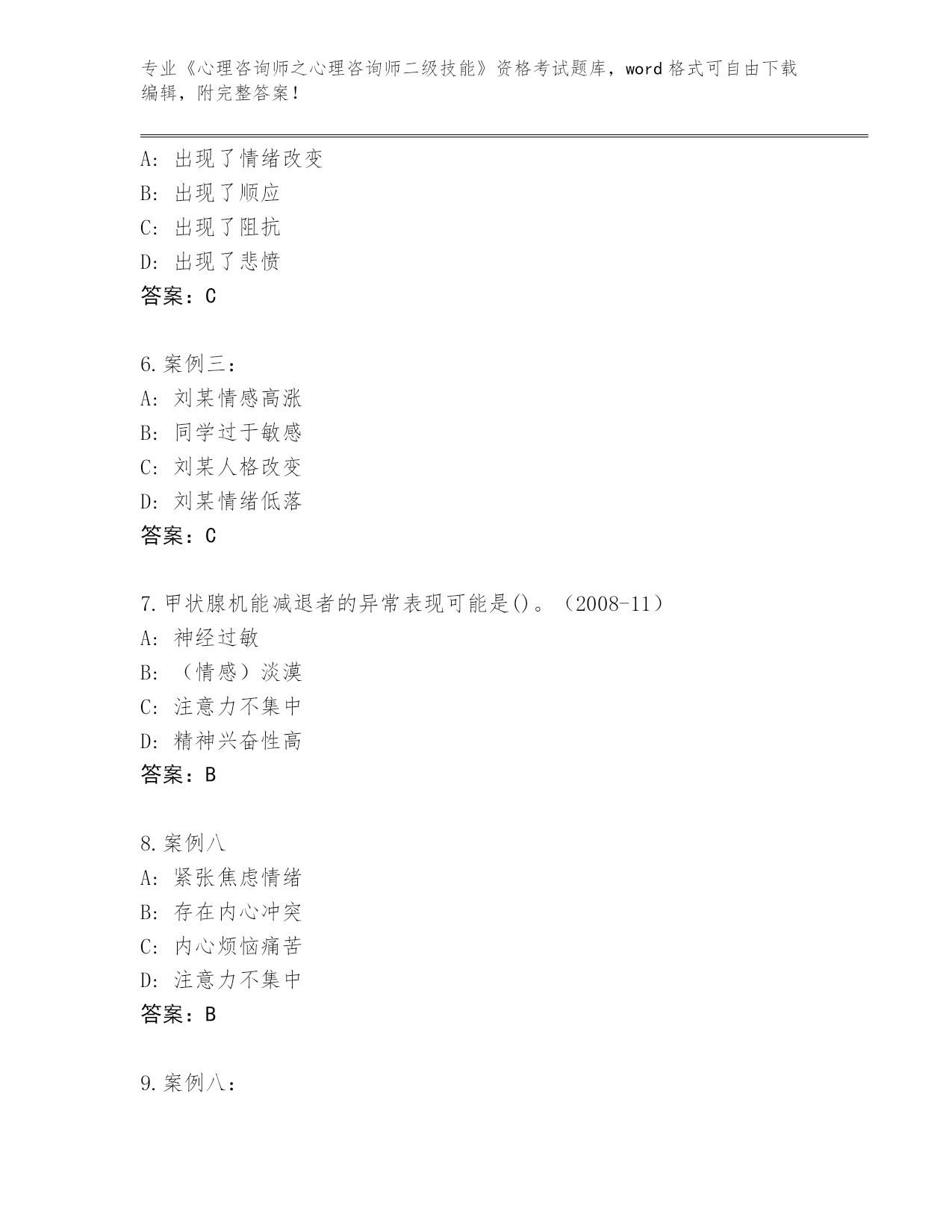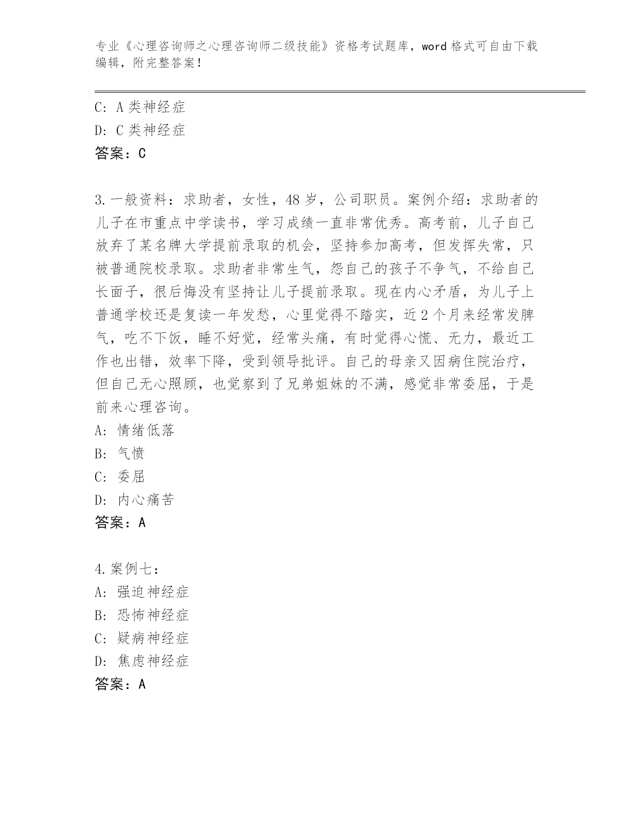 河南省内部使用《心理咨询师之心理咨询师二级技能》资格考试完整版带答案(黄金题型)