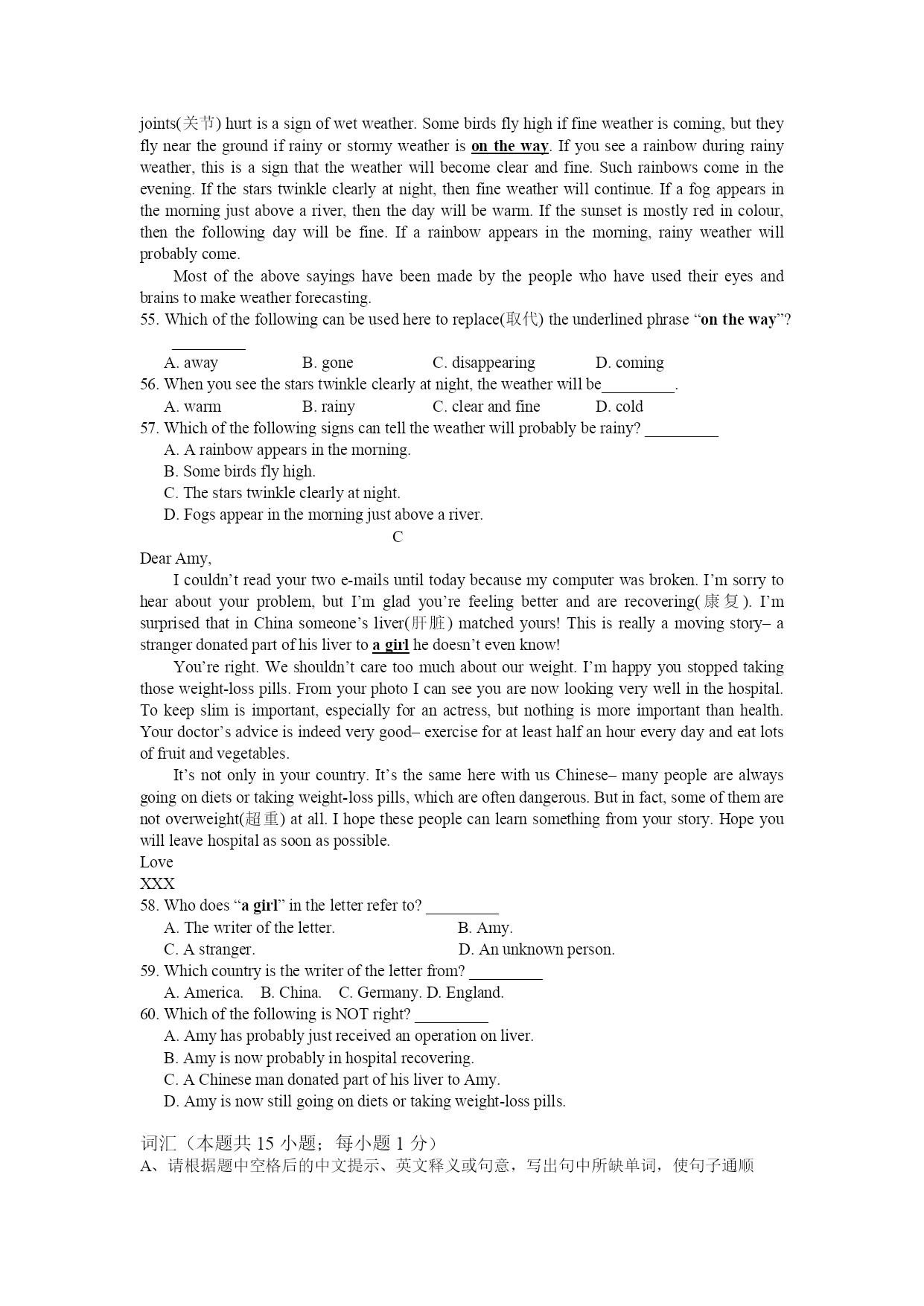 九年级期末复习讲义RG三单项选择(15分)()21.Theworld'spopulation(人口)ismorethan7billion,soscientistswillhaveto_________newwaystosolvefoodproblem.A.catchupwithB.keepupwithC.comeupwithD.makeupwith()22.----Tomhadnothingforbreakfast,_______he?----_______.Hehadsomebreadandmilk.A.had,YesB.had,NoC.did,YesD.did,No()23.MrsZhangis________allhertimeandenergy__________beingamumrightnow.A.devote;onB.devoting;onC.devote;toD.devoting;to()24.MysisterandIoftenargue______whichTVprogramme______.A.about,watchingB.with,towatchC.about,towatchD.with,watching()25..____theageof6,Alice_____takingpianolessons.A.At,beganB.On,beganC.At,havebegunD.On,hadbegun()26.________amazingnews!______one-year-oldchildcandrivesuchabeautifulpicture.A.What,AB.What,AnC.How,AD.Whatan,An()27.It’swrong__________you_________other’shomework.A.of,copyB.for,copyC.of,tocopyD.for,tocopy()28.________you_________heisinterestedinTVseries,butIam.A.Neither;norB.Notonly;butalsoC.Either;orD.Both;and()29.Andywouldrather______whileMillieprefers_______to_______.A.walk,jogging,walkingB.walk,jogging,walkC.towalk,tojog,walkingD.walking,jog,walk()30.—Whathappened?—Theoldmannextdoorwasfound_____inthelivingroom.It'sverysadA.deadB.dieC.diedD.death()31.It’stimefortest.Bequiet,please.I’mgoingto_____yourtestpapers.A.giveupB.giveoutC.handinD.workout()32.Thequestionis_________thatnobodycananswerit.A.veryhardB.toodifficultC.strangeenoughD.sostrange().–Look,Marylookssad.Let’sgoand_______.A.cheeruphimB.cheerhimupC.cheerupherD.cheerherup()34.–Mum,canIhavesomething________?–Oh,dear.Youcanonlydrinksomewater.Thereis________inthekitchen.A.todrink;nothingelseB.drinking;somethingelseC.toeat;somethingelseD.eating;nothingelse()35.Icanhardlyknow_______somuchwastewater.A.howtodowithB.whattodowithC.whattodealwithD.howdealingwith完形填空。(15分)Everyoneneeds__36__.Weallliketowatchclosetosomeone.__37__isnicetohaveafriendtotalk,laugh,anddothingswith.__38__,sometimesweneedtobealone.Wedon’talwayswantpeople__39__.Butwewouldfeellonelyifw