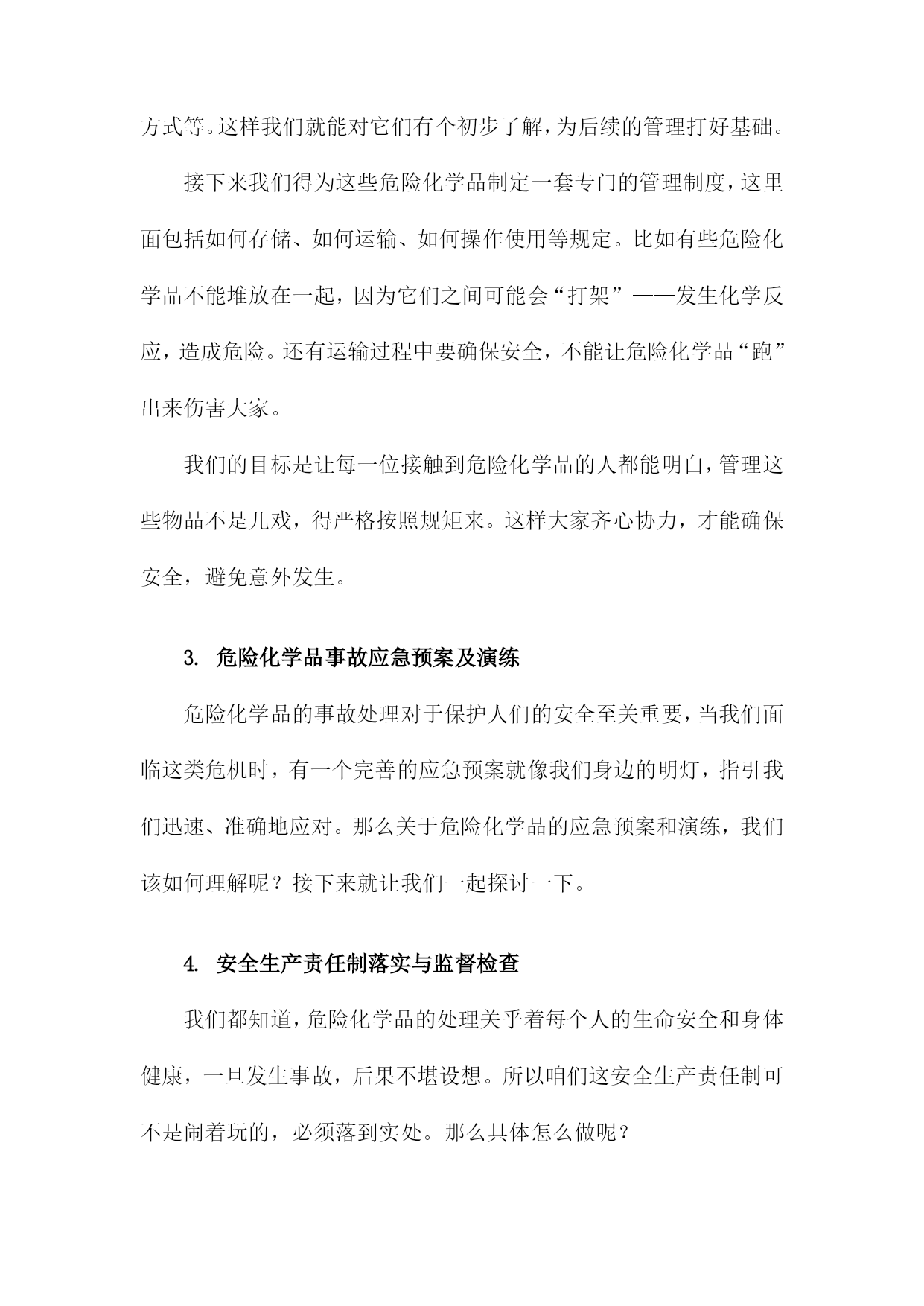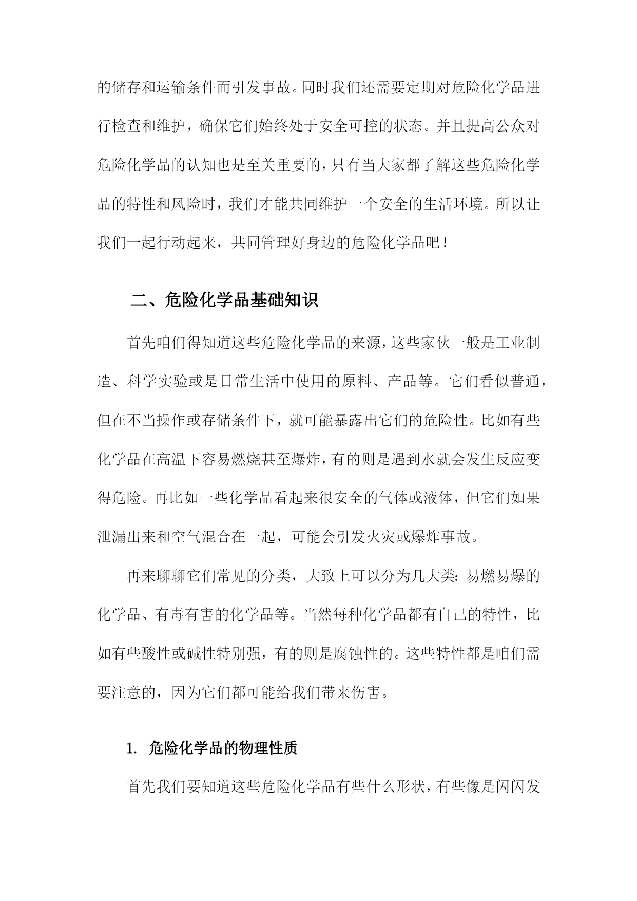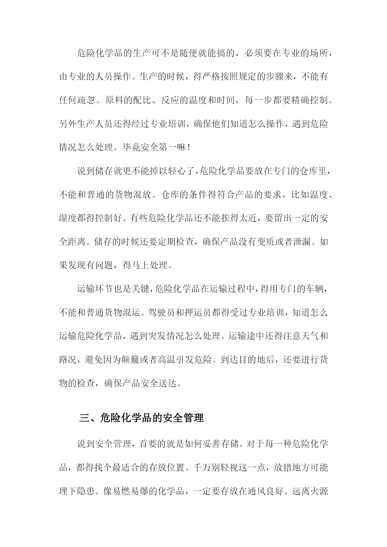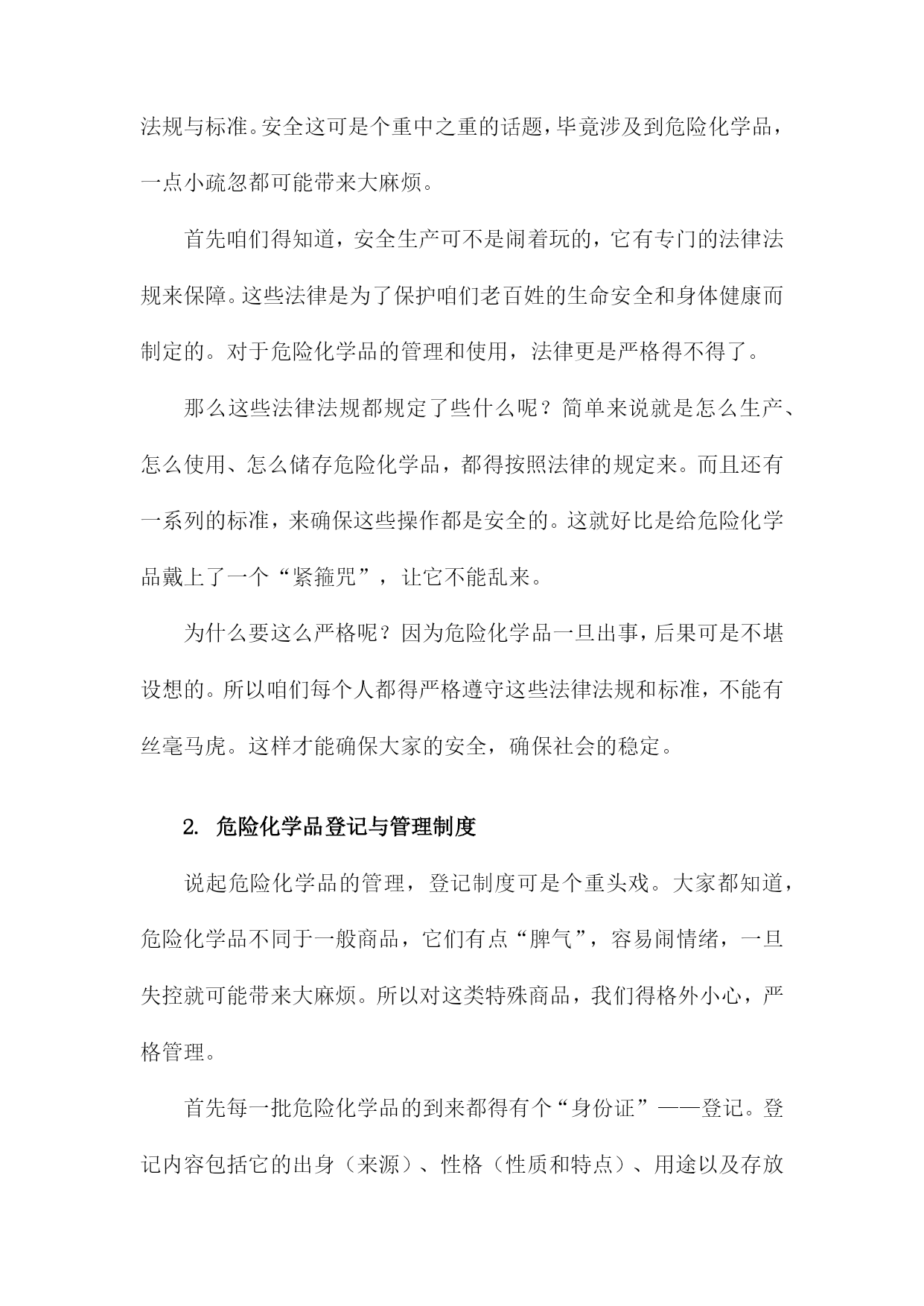 《危险化学品》课件一、课程介绍欢迎来到我们的《危险化学品》课程!这一课是为那些对危险化学品感兴趣或者在工作中需要接触危险化学品的朋友们精心设计的。危险化学品的特性和安全操作是我们日常生活中不可忽视的重要知识点,无论是工业生产还是实验室研究,都需要对它们有深入的了解。在这门课程中,我们将一起探讨危险化学品的种类、性质以及如何处理这些化学品的安全知识。我们将从基础概念出发,逐步深入到实际的应用和操作。通过学习你将能够了解到如何正确存储、运输和使用危险化学品,以及一旦遇到突发情况,应该如何迅速、有效地应对。1.课程背景与目的一提到课程背景呢,我们知道随着社会工业化的进程加速,越来越多的化学产品和原材料在生产生活中得到了广泛应用。而在这个过程中,如果不对这些危险化学品的特性和风险进行了解和管理,就可能引发安全事故。因此无论是为了保障工业生产的安全运行,还是为了保护我们每个人的生命财产安全,都需要普及和提高大家对危险化学品的认知和应对能力。这也正是我们开设这门课程的目的所在。说到具体目的呢,简单来说就是帮助大家认识危险化学品。了解它们是什么、性质如何、有哪些潜在风险以及如何安全地操作和管理它们。通过这门课程的学习呢,大家不仅可以掌握危险化学品的基础知识,还能学会如何预防和处理危险化学品带来的风险。这样不管是在工作还是在生活中,都能更好地保护自己和他人的安全。总的来说呢,《危险化学品》这门课程是非常实用的,它能帮助我们更好地应对生活中的各种风险和挑战。让我们一起学习这门课程吧!2.危险化学品定义及分类接下来让我们了解一下什么是危险化学品,其实危险化学品就是我们生活中常听到的一些容易引发危险或伤害的物质。它们可能存在于我们的日常生活用品中,也可能出现在工业生产环境中。这些物质因其特殊的性质,如果被不当使用或处理不当,就可能会对人造成危害或对周围环境造成污染。那么这些物质是怎么分类的呢?别担心我们一起来揭晓答案。首先我们要知道危险化学品可以根据其性质进行分类,常见的分类方式包括易燃易爆物质、有毒有害物质等。这些物质可能很容易燃烧甚至爆炸,也可能在接触后对人体造成伤害或导致中毒。因此了解这些物质的特性和分类是非常重要的,在实际生活中,我们应当格外注意这些物质的存放和使用方法,避免发生意外事故。只有这样我们才能更好地保护自己和他人的安全,让我们继续努力学习有关危险化学品的更多知识吧!为了我们的生活更加安全!好了我们接着往下学习,下一部分我们将探讨危险化学品的常见特性以及防范措施等内容。希望大家都能认真对待危险化学品的安全问题哦!为了我们的生活环境和我们的生命安全哦!放心地往前走,不走寻常路只适用于日常的小确幸场景,当涉及到安全时,每一步都要稳稳当当哦!大家准备好了吗?让我们一起进入下一个章节吧!3.危险化学品的重要性和管理要求我们的生活离不开各种各样的物品,有些虽然看似普通,但却隐藏着巨大的危险。今天我们要聊的就是这些特殊的物品——危险化学品。它们可能就在我们身边,虽然它们带来了不小的风险,但同时也发挥着不可或缺的重要作用。让我们一起揭开它们的神秘面纱。管理危险化学品可不是一件轻松的事情,首先我们需要了解每一种危险化学品的特性和危害。只有知道了它们的脾气和性格,我们才能对症下药,找到正确的使用方法和管理方法。其次使用危险化学品的时候,必须遵守严格的操作规程和安全标准。绝不能因为一时的疏忽大意,造成不可挽回的后果。此外储存和运输危险化学品也需要特别小心,要确保它们不被错误地处理或误用,也要防止它们因为不当的储存和运输条件而引发事故。同时我们还需要定期对危险化学品进行检查和维护,确保它们始终处于安全可控的状态。并且提高公众对危险化学品的认知也是至关重要的,只有当大家都了解这些危险化学品的特性和风险时,我们才能共同维护一个安全的生活环境。所以让我们一起行动起来,共同管理好身边的危险化学品吧!二、危险化学品基础知识首先咱们得知道这些危险化学品的来源,这些家伙一般是工业制造、科学实验或是日常生活中使用的原料、产品等。它们看似普通,但在不当操作或存储条件下,就可能暴露出它们的危险性。比如有些化学品在高温下容易燃烧甚至爆炸,有的则是遇到水就会发生反应变得危险。再比如一些化学品看起来很安全的气体或液体,但它们如果泄漏出来和空气混合在一起,可能会引发火灾或爆炸事故。再来聊聊它们常见的分类,大致上可以分为几大类:易燃易爆的化学品、有毒有害的化学品等。当然每种化学品都有自己的特性,比如有些酸性或碱性特别强,有的则是腐蚀性的。这些特性都是咱们需要注意的,因为它们都可能给我们带来伤害。1.危险化学品的物理性质首先我们要知道这些危险化学品有些什么形状,有些像是闪闪发光的固体,有些则是液体,甚至还有一些是气体。颜色也是各种各样的,有的可能是