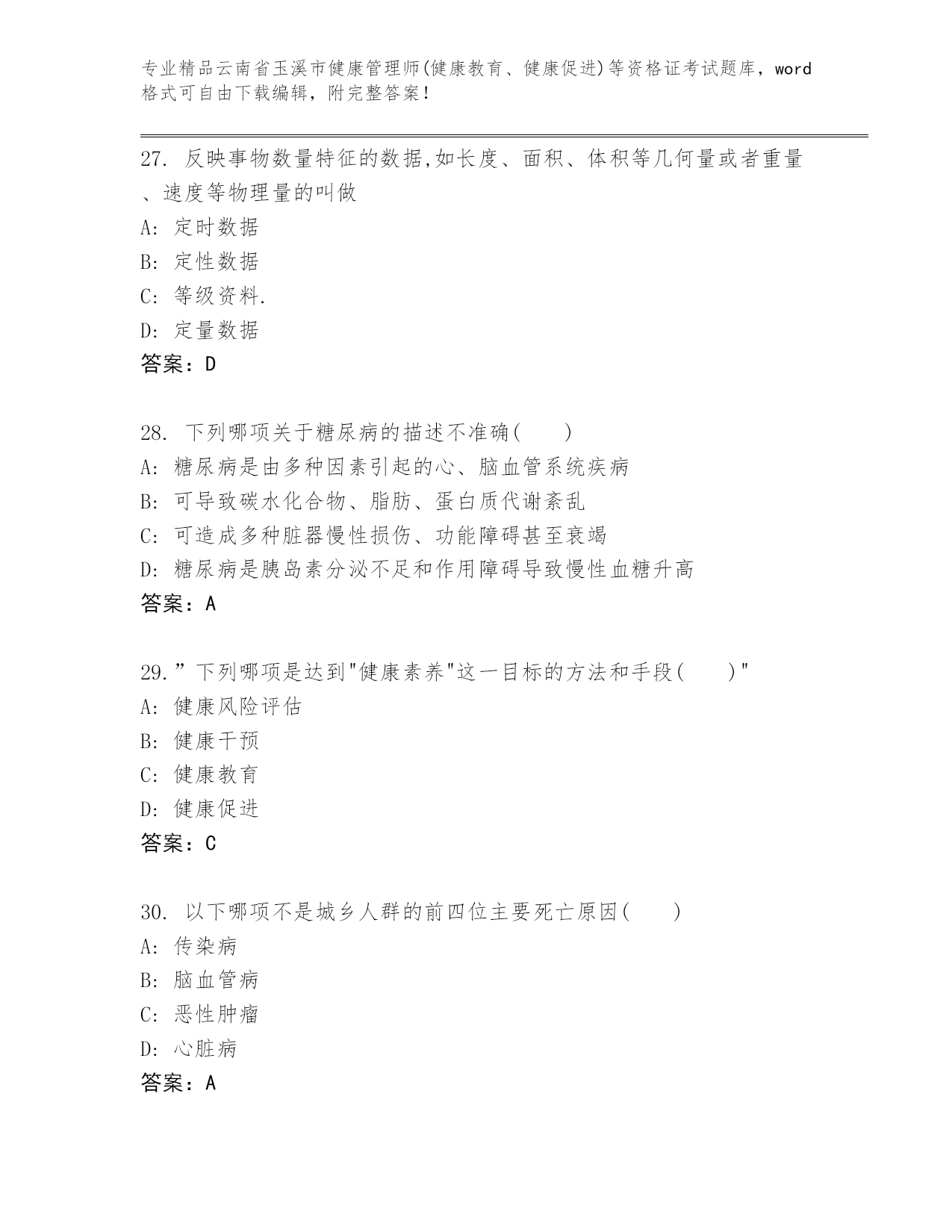 历年云南省玉溪市健康管理师(健康教育、健康促进)等资格证考试真题【巩固】.docx