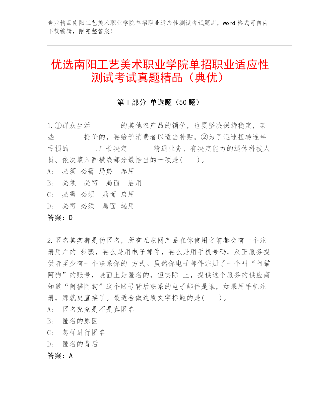 优选南阳工艺美术职业学院单招职业适应性测试考试真题精品(典优).docx
