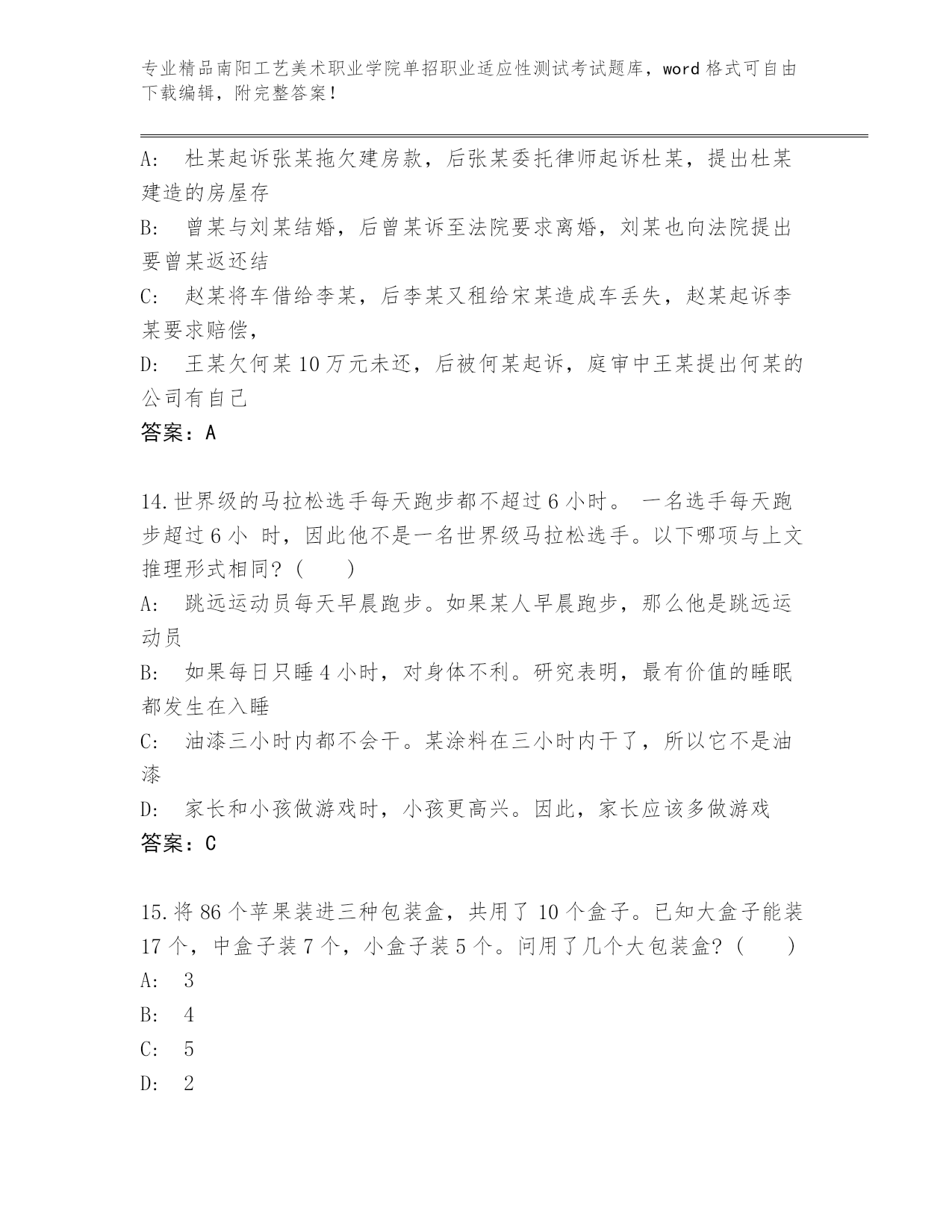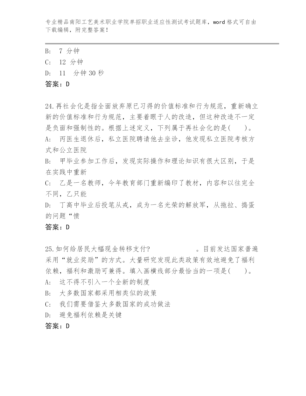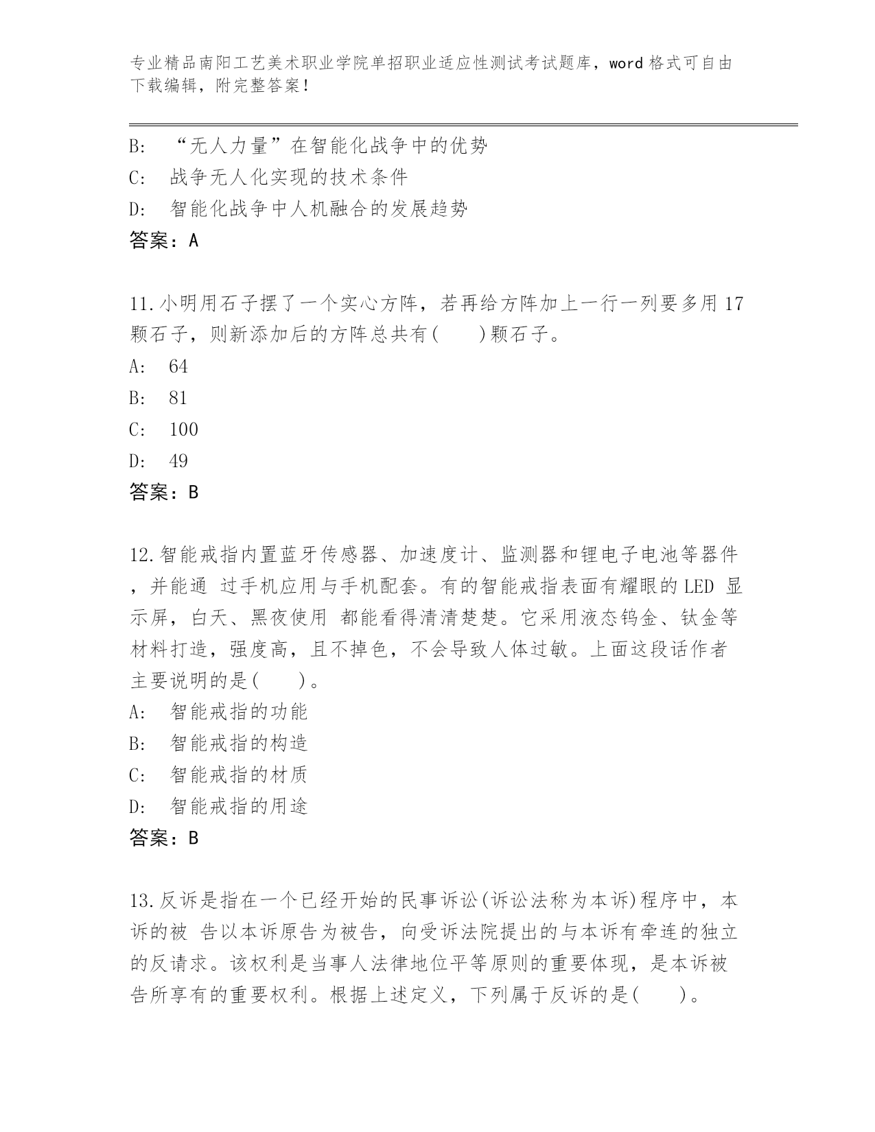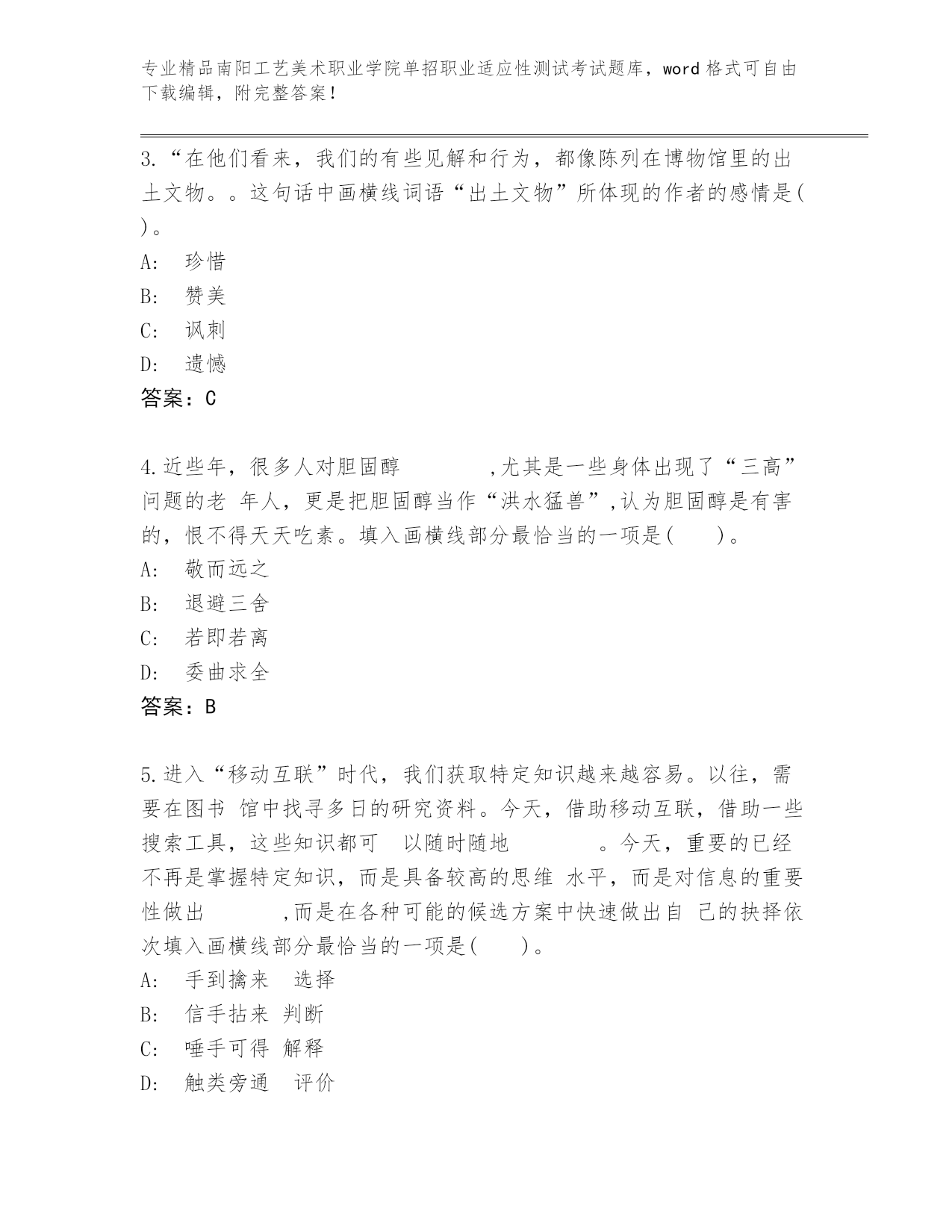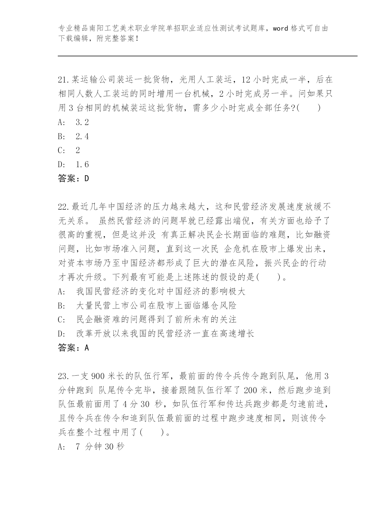 优选南阳工艺美术职业学院单招职业适应性测试考试真题精品(典优)