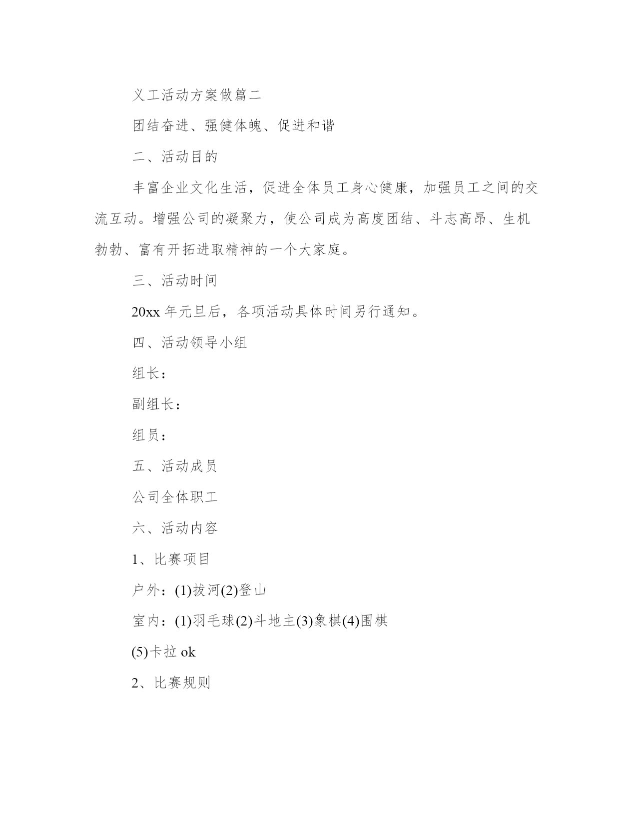 2023年义工活动方案做 义工活动方案(精选9篇).docx