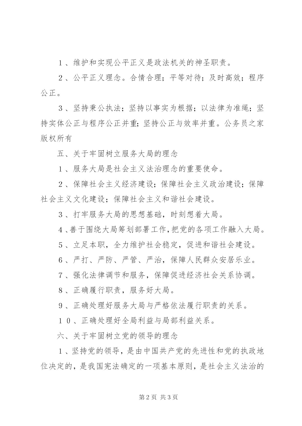 第PAGE\*Arabic\*MERGEFORMAT3页共NUMPAGES\*MERGEFORMAT3页社会主义法治理念教育宣传内容一、关于社会主义法治理念1、牢固树立依法治国的理念;牢固树立执法为民的理念;牢固树立公平正义的理念;牢固树立服务大局的理念;牢固树立党的领导的理念。2、依法治国是社会主义法治的核心内容;执法为民是社会主义法治的本质要求;公平正义是社会主义法治的价值追求;服务大局是社会主义法治的重要使命;党的领导是社会主义法治的根本保证。二、关于牢固树立依法治国的理念1、依法治国,是我们党领导人民治理国家的基本方略。2、依法治国,三个基本内涵。法律面前人人平等;树立和维护法律权威;严格依法办事。3、依法治国理念基本要求:提高法律素养;坚持严格执法;模范遵守法律;自觉接受监督.三、关于牢固树立执法为民的理念1、执法为民是核心。一切为了人民;一切依靠人民;尊重和保障人权。2、以人为本,执法为民;勤政守法;甘当公仆;文明执法;清正廉洁。四、关于牢固树立公平正义的理念1、维护和实现公平正义是政法机关的神圣职责。2、公平正义理念。合情合理;平等对待;及时高效;程序公正。3、坚持秉公执法;坚持以事实为根据;以法律为准绳;坚持实体公正与程序公正并重;坚持公正与效率并重。公务员之家版权所有五、关于牢固树立服务大局的理念1、服务大局是社会主义法治理念的重要使命。2、保障社会主义经济建设;保障社会主义政治建设;保障社会主义文化建设;保障社会主义和谐社会建设。3、打牢服务大局的思想基础,时刻想着大局。4、善于围绕大局筹划部署工作,把党的各项工作融入大局。5、立足本职,全力维护社会稳定,促进和谐社会建设。6、严打、严防、严管、严治,保障人民群众安居乐业。7、强化法律调节和服务,保障促进经济社会关系协调。8、正确履行职责,服务好大局。9、正确处理好服务大局与严格依法履行职责的关系。10、正确处理好全局利益与局部利益关系。六、关于牢固树立党的领导的理念1、坚持党的领导,是由中国共产党的先进性和党的执政地位决定的,是我国宪法确定的一项基本原则,是社会主义法治的根本保证,也是由政法机关的性质和任务决定的。2、坚持党的领导是建设社会主义法治国家的根本保证。3、依法治国是党领导人民治理国家的基本方略。4、自觉地把巩固党的执政地位、维护人民利益和维护社会主义法治统一起来。5、自觉地贯彻落实党的方针政策与严格执法有机结合起来。6、加强和改进党对政法工作的领导与保障司法机关依法独立公正地行使职权统一起来。7、一切增强党的观念。8、始终坚持马克思主义在政法工作中的指导地位。9、坚决贯彻执行党的路线方针政策和重大决策部署。10、要在执法办案实践中切实发挥党员干警的先锋模范作用,扩大党员在全体干警中政治影响力和业务带头作用。
