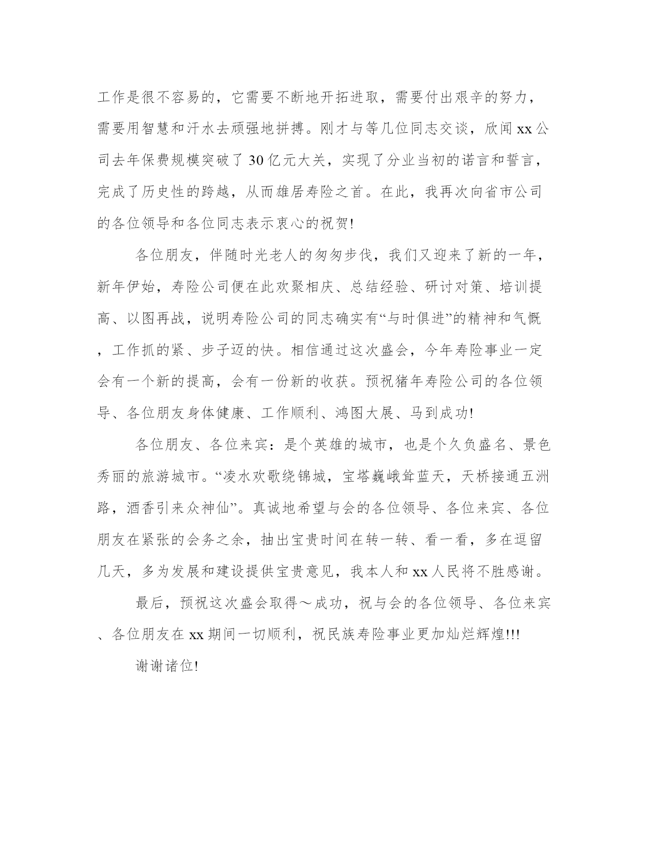 最新保险公司表彰会领导讲话稿件模板无论是身处学校还是步入社会,大家都尝试过写作吧,借助写作也可以提高我们的语言组织能力。那么我们该如何写一篇较为完美的范文呢?下面是小编帮大家整理的优质范文,仅供参考,大家一起来看看吧。保险公司表彰会领导讲话稿件篇一大家好!今天,非常荣幸地应邀前来参加保险公司分公司~年精英年会,我感到非常的高兴和荣幸。这次盛会全国多位名流学者莅临赐教,全省各市寿险公司的领导相聚锦城,千余名寿险精英欢聚一堂,共同庆祝xx人寿在过去的一年里所取得的辉煌业绩,倾心畅谈美好的寿险明天,这既是xx人寿分公司的光荣和骄傲,也是三百万xx人民的光荣和骄傲。值此之际,我代表市委、市政府向这次盛会的召开表示热烈的祝贺,向参加会议的寿险公司各位领导、各位专家学者、各位创造了辉煌个人业绩、为寿险事业发展立下汗马功劳的寿险精英表示热烈的欢迎。寿险事业是一项充满爱心、造福人民的光荣事业,也是一项充满挑战性的工作。它是国家金融工作的一个重要组成部分,直接为改革开放、稳定企业和人民群众的生活配套服务。在目前市场竞争日益激烈复杂,特别是保险市场竞争主体日趋多元化的情况下,要做好这项工作是很不容易的,它需要不断地开拓进取,需要付出艰辛的努力,需要用智慧和汗水去顽强地拼搏。刚才与等几位同志交谈,欣闻xx公司去年保费规模突破了30亿元大关,实现了分业当初的诺言和誓言,完成了历史性的跨越,从而雄居寿险之首。在此,我再次向省市公司的各位领导和各位同志表示衷心的祝贺!各位朋友,伴随时光老人的匆匆步伐,我们又迎来了新的一年,新年伊始,寿险公司便在此欢聚相庆、总结经验、研讨对策、培训提高、以图再战,说明寿险公司的同志确实有“与时俱进”的精神和气慨,工作抓的紧、步子迈的快。相信通过这次盛会,今年寿险事业一定会有一个新的提高,会有一份新的收获。预祝猪年寿险公司的各位领导、各位朋友身体健康、工作顺利、鸿图大展、马到成功!各位朋友、各位来宾:是个英雄的城市,也是个久负盛名、景色秀丽的旅游城市。“凌水欢歌绕锦城,宝塔巍峨耸蓝天,天桥接通五洲路,酒香引来众神仙”。真诚地希望与会的各位领导、各位来宾、各位朋友在紧张的会务之余,抽出宝贵时间在转一转、看一看,多在逗留几天,多为发展和建设提供宝贵意见,我本人和xx人民将不胜感谢。最后,预祝这次盛会取得~成功,祝与会的各位领导、各位来宾、各位朋友在xx期间一切顺利,祝民族寿险事业更加灿烂辉煌!!!谢谢诸位!