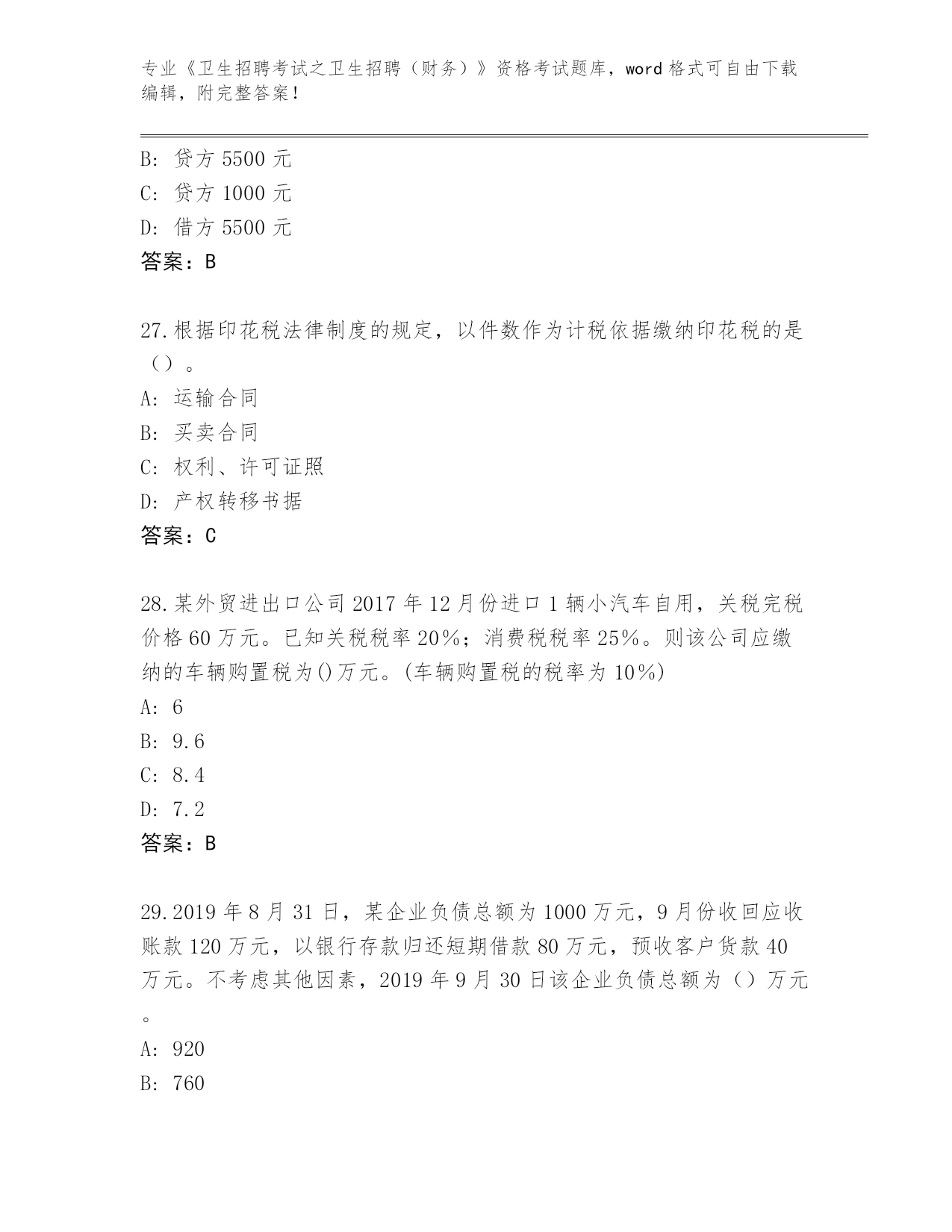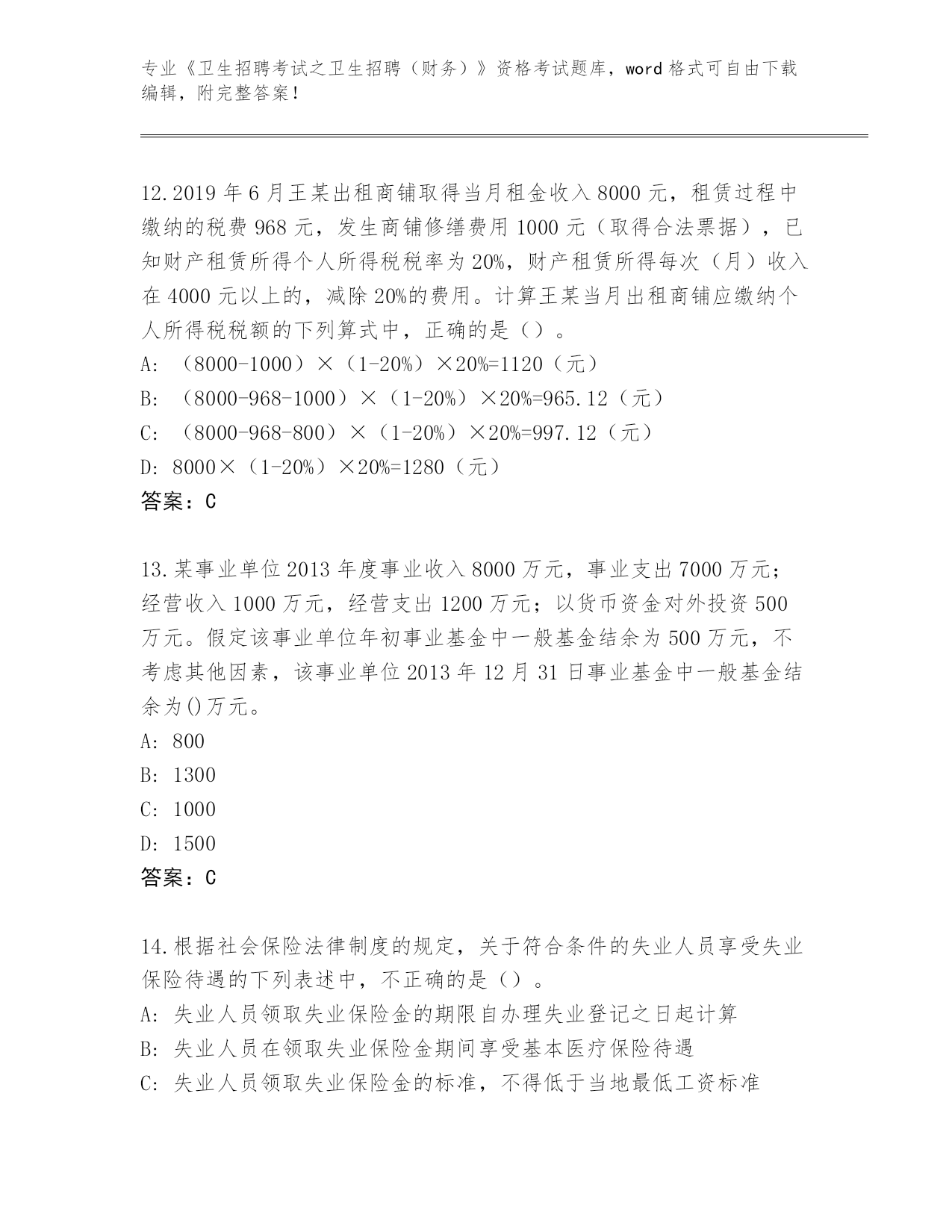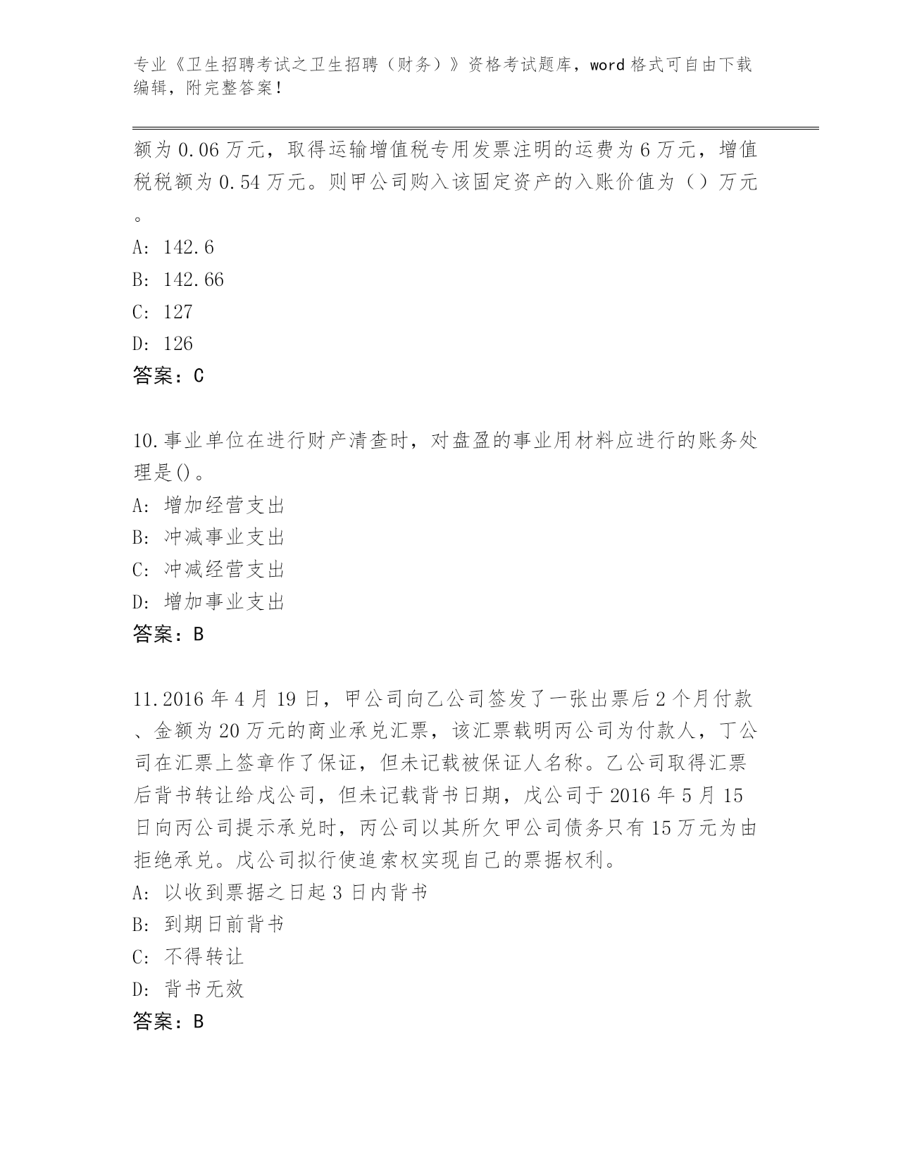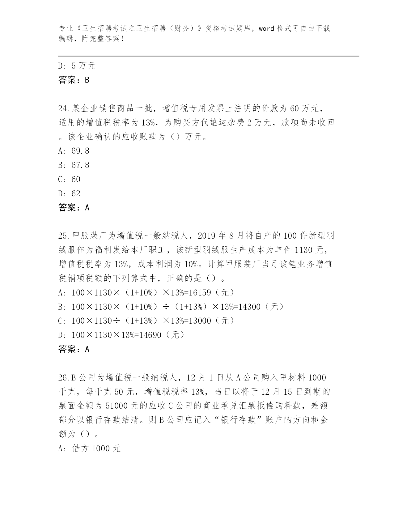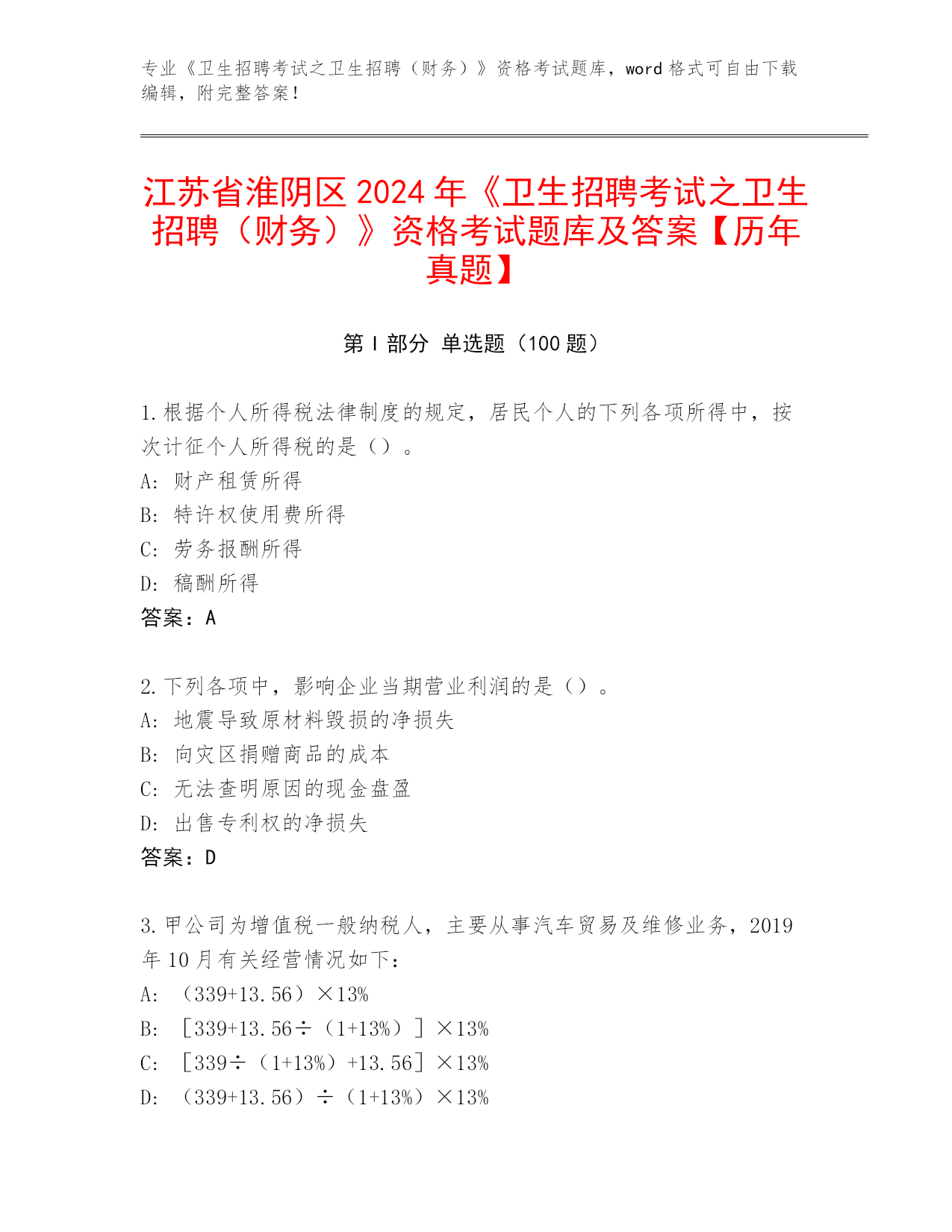 江苏省淮阴区2024年《卫生招聘考试之卫生招聘(财务)》资格考试题库及答案【历年真题】