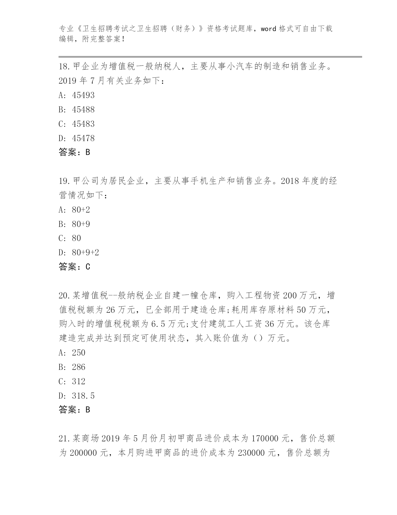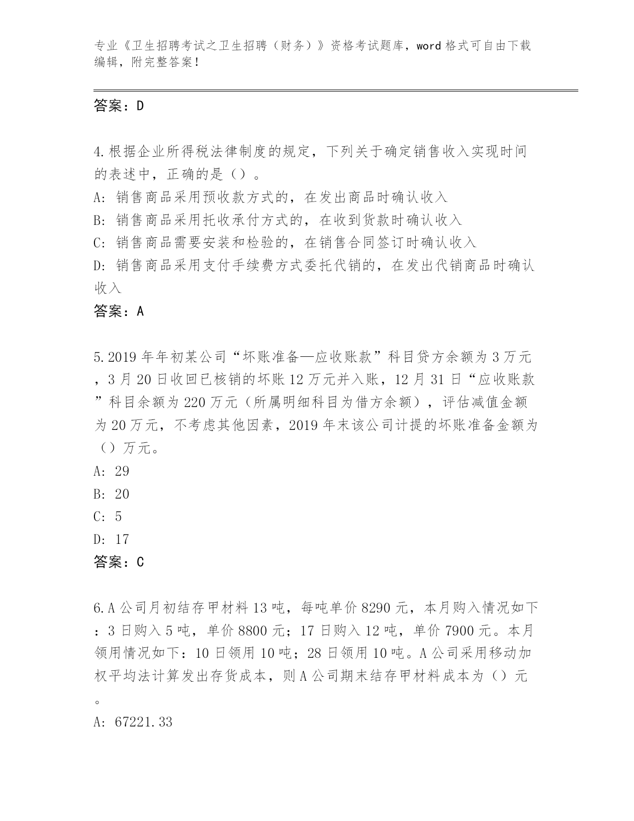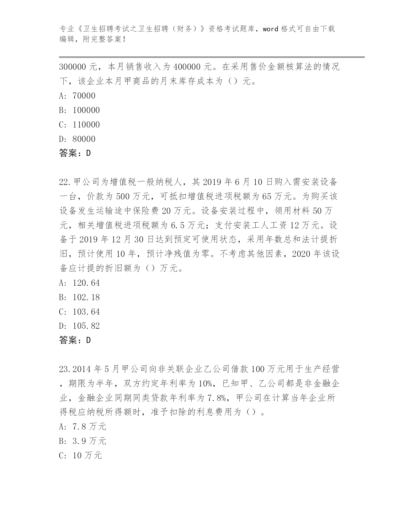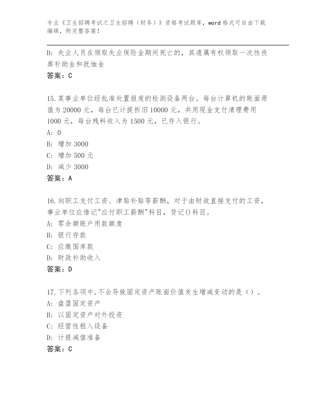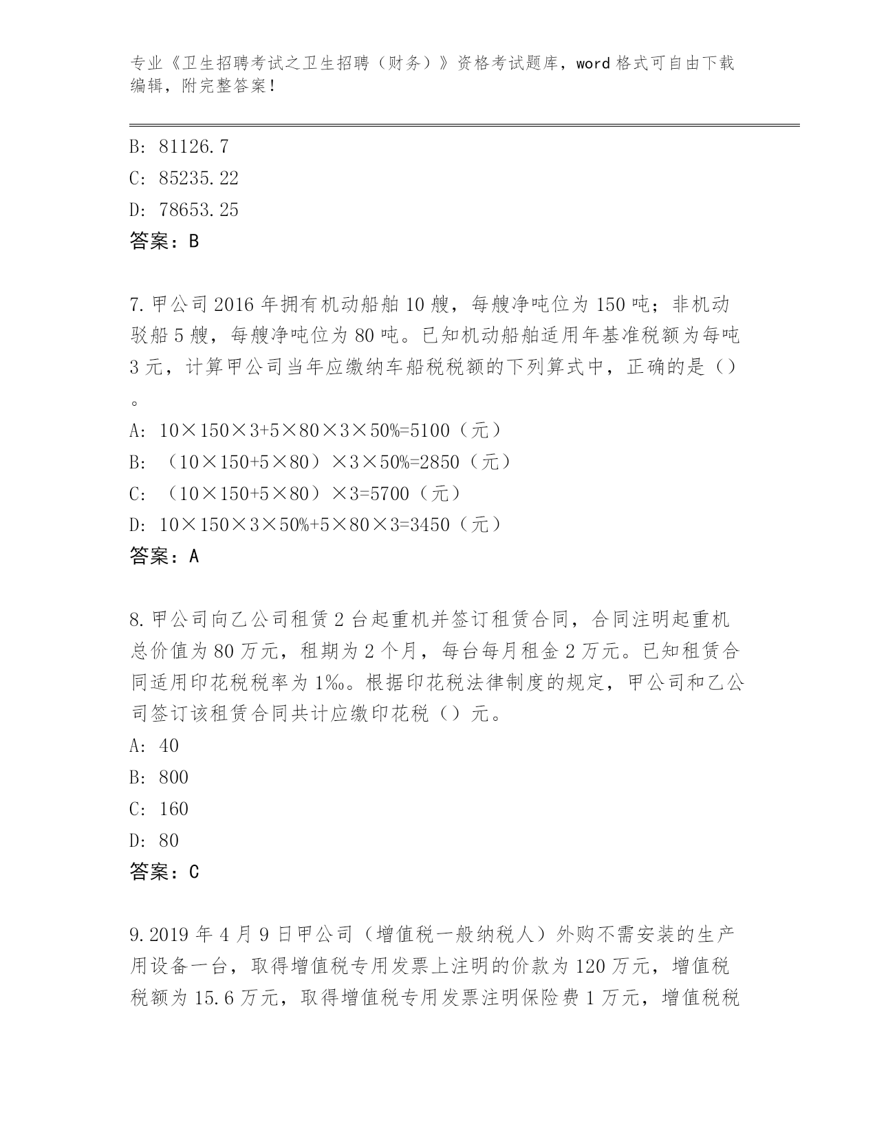 江苏省淮阴区2024年《卫生招聘考试之卫生招聘(财务)》资格考试题库及答案【历年真题】