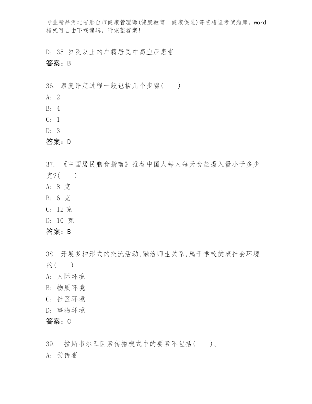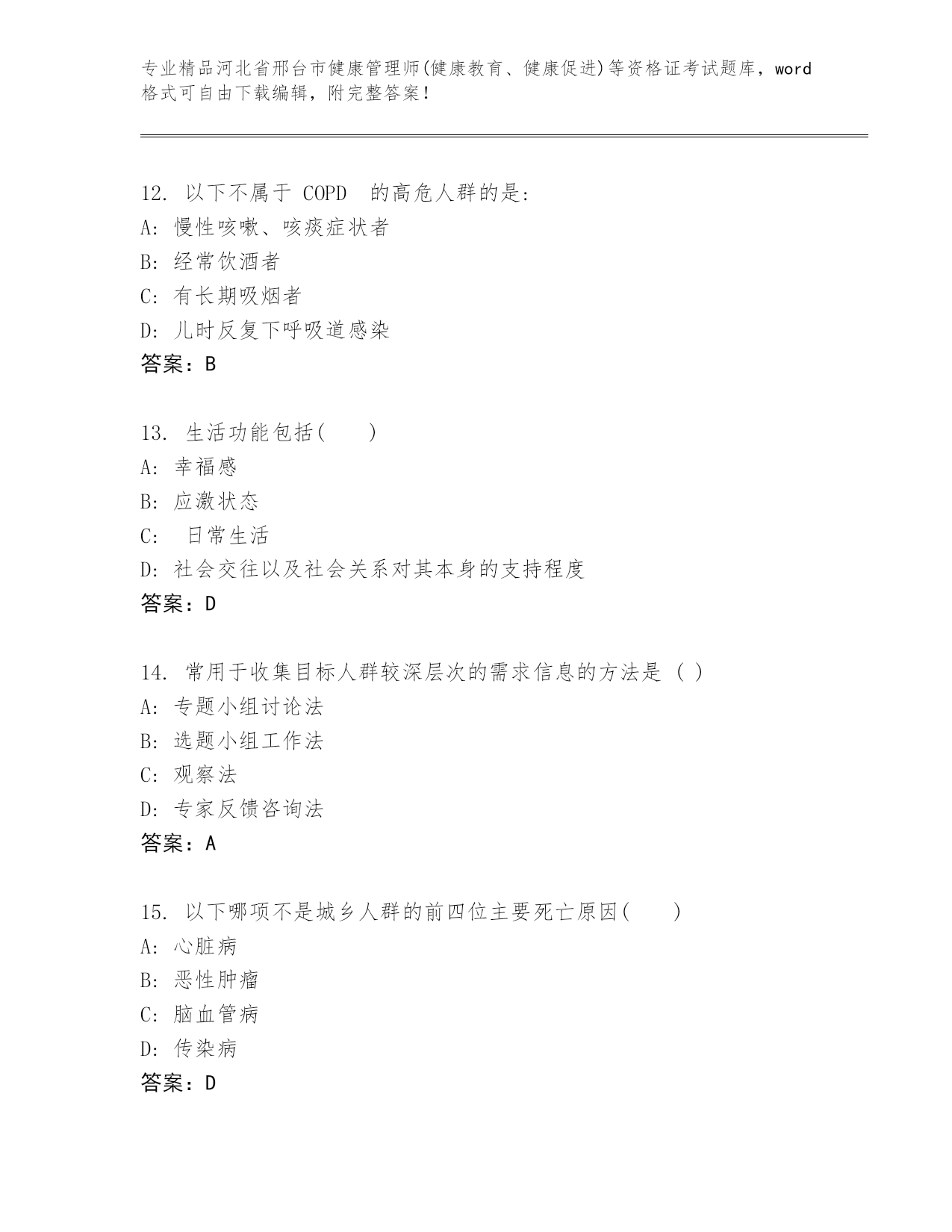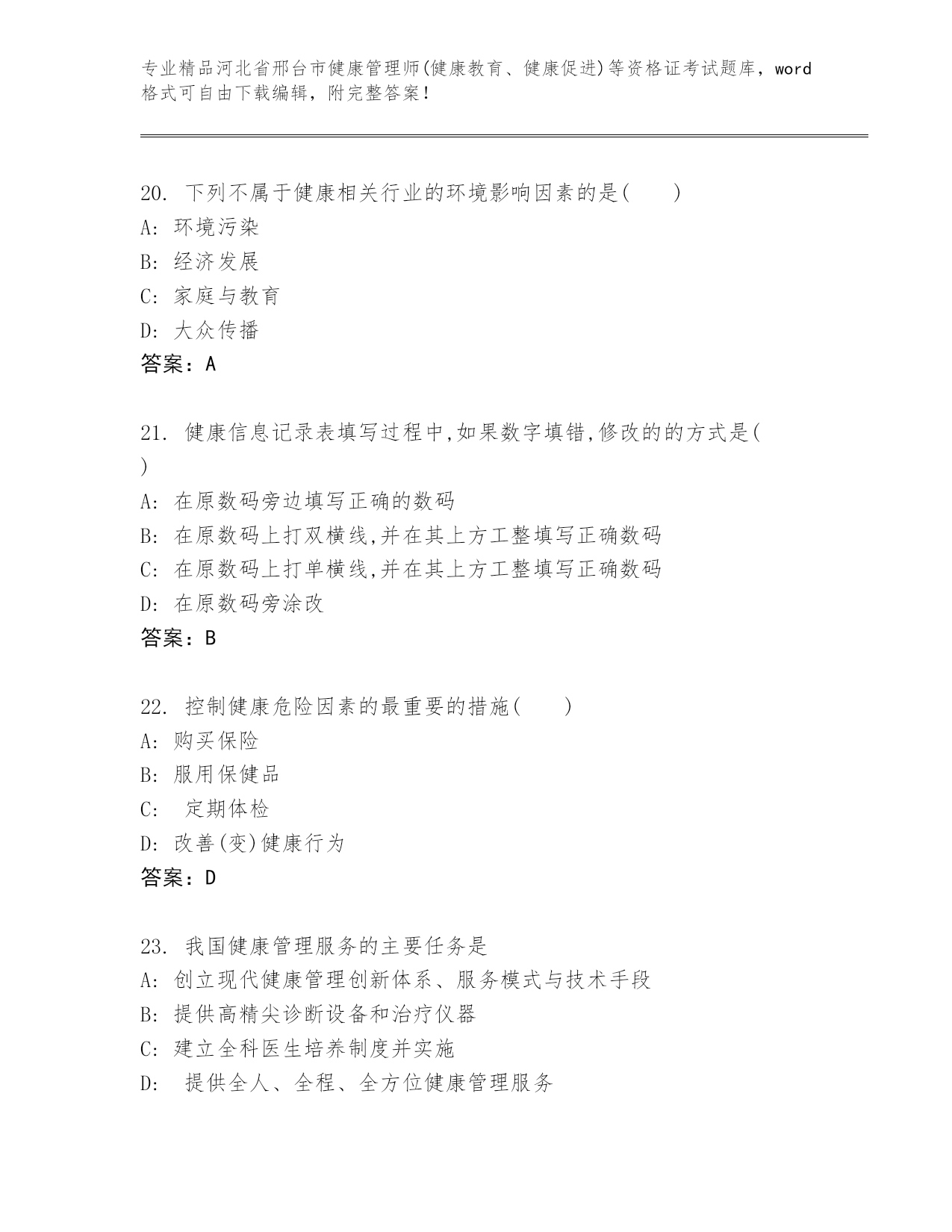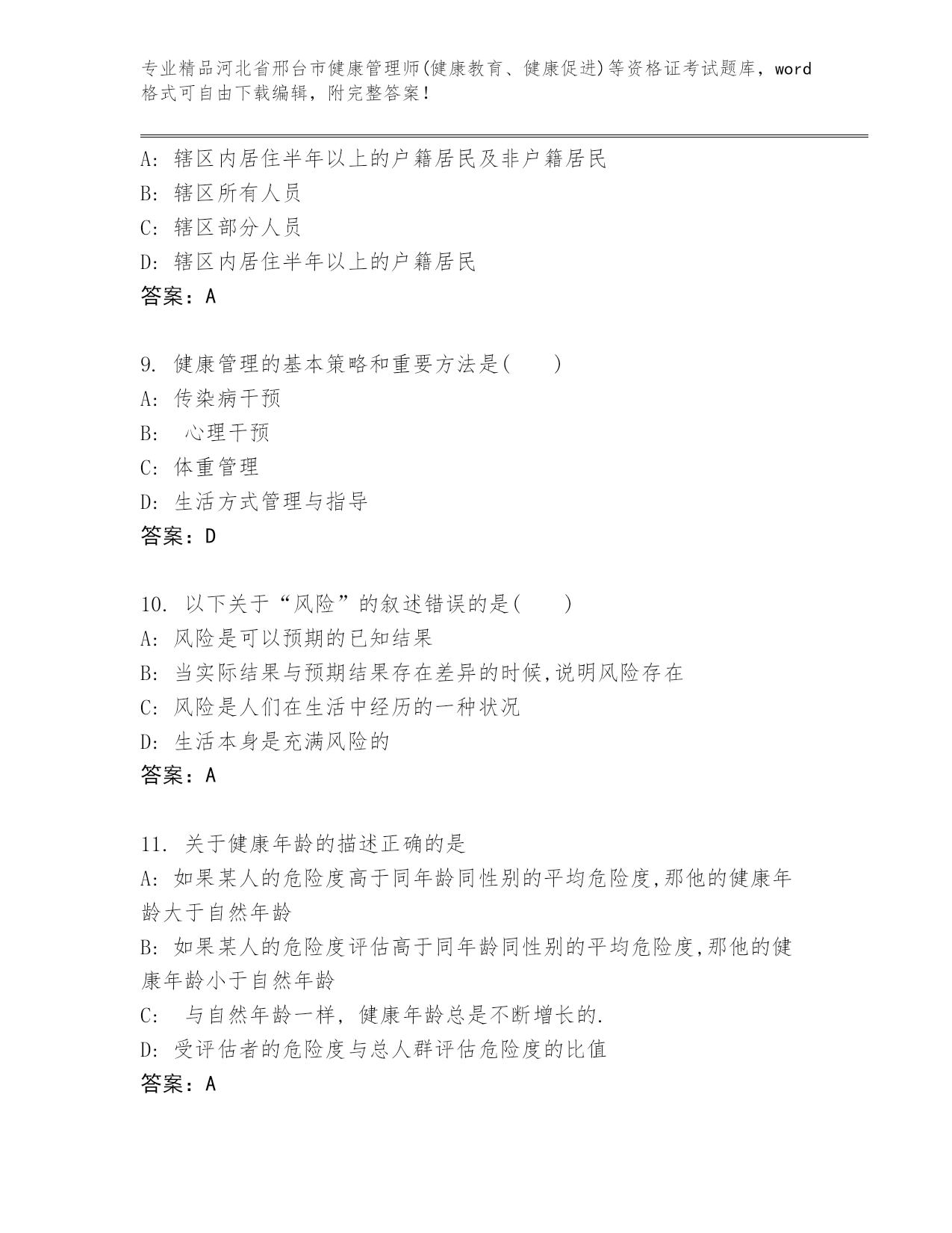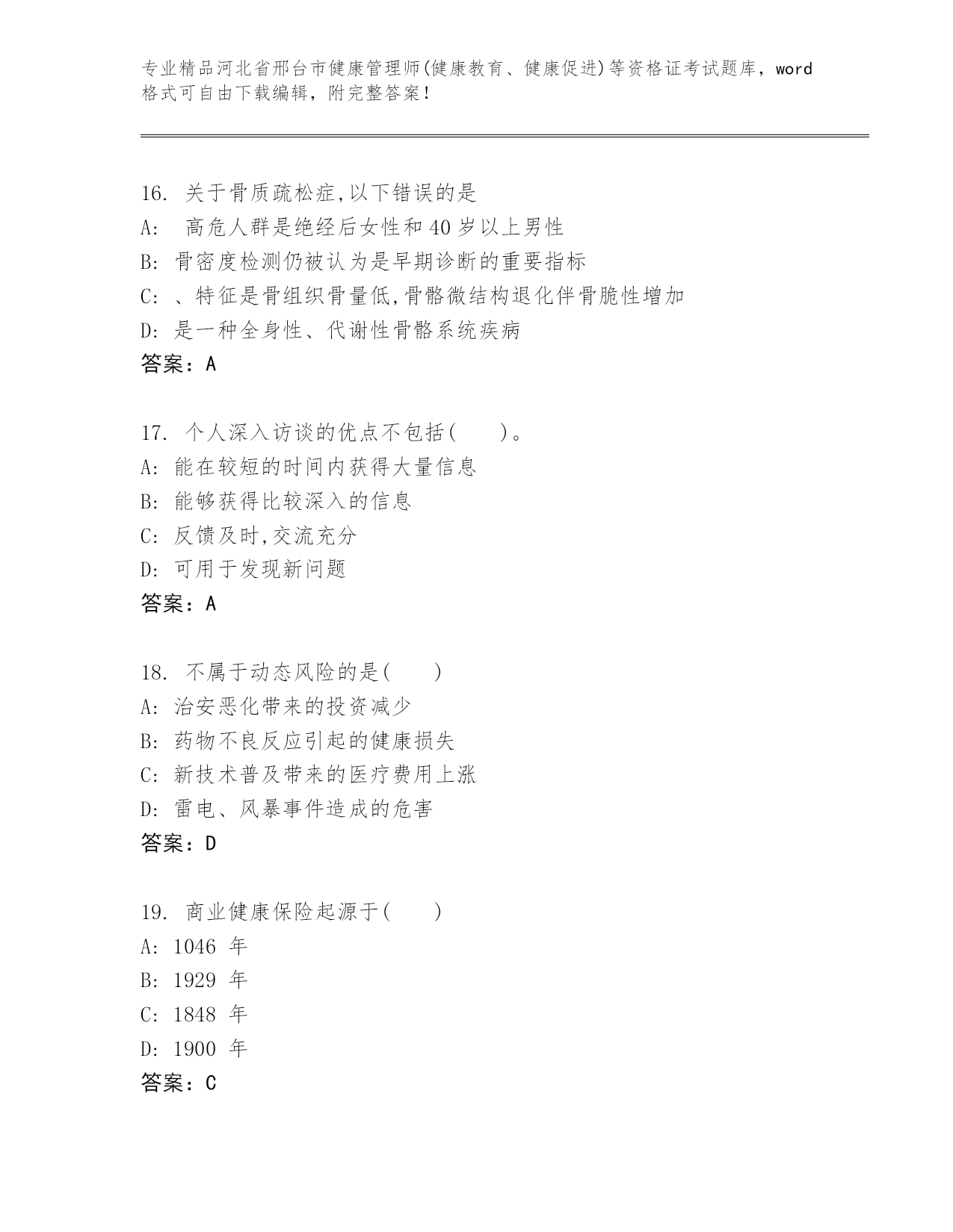 河北省邢台市健康管理师(健康教育、健康促进)等资格证考试题库新版.docx