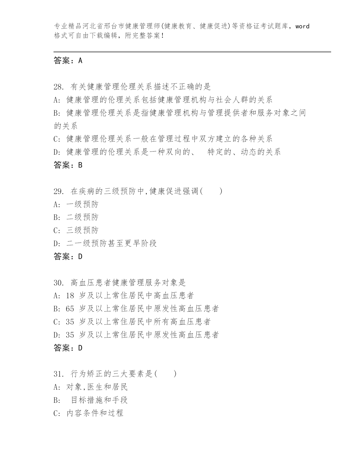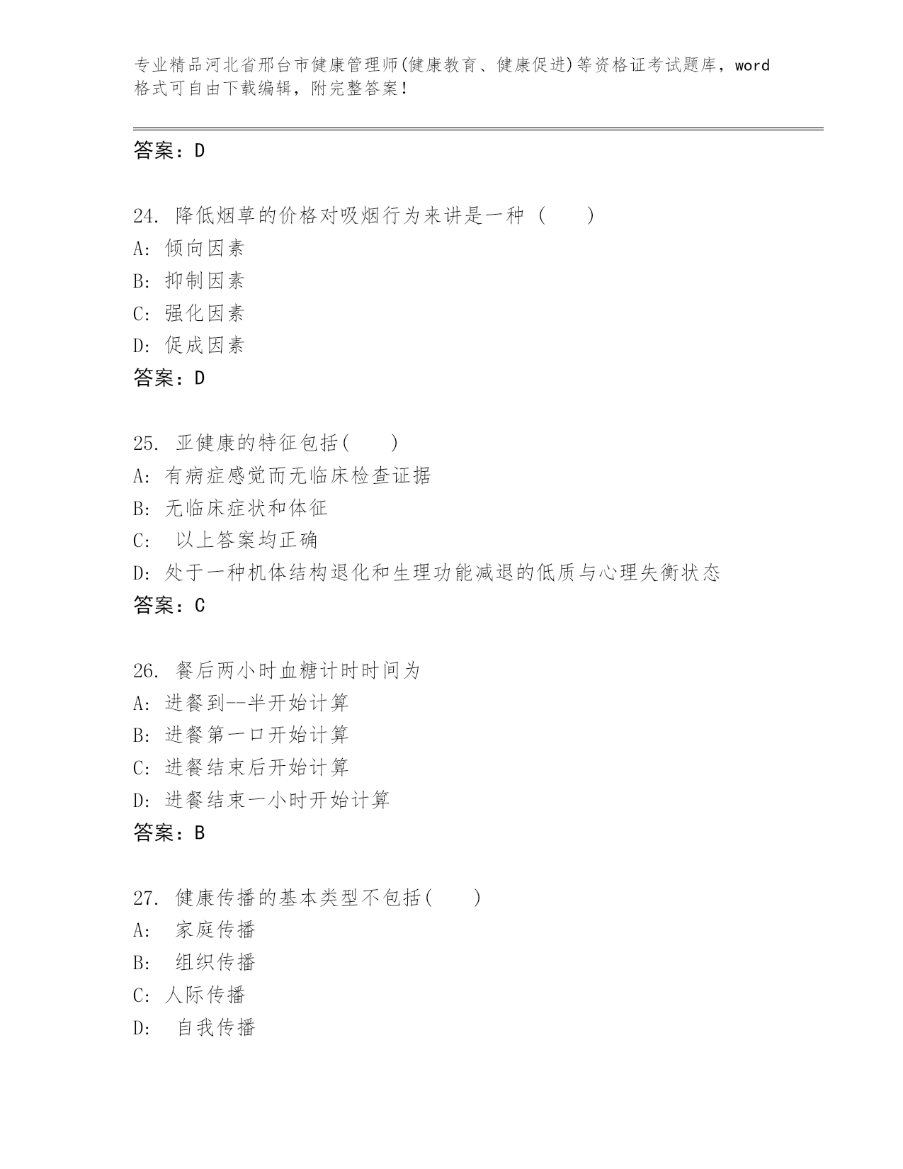 河北省邢台市健康管理师(健康教育、健康促进)等资格证考试题库新版