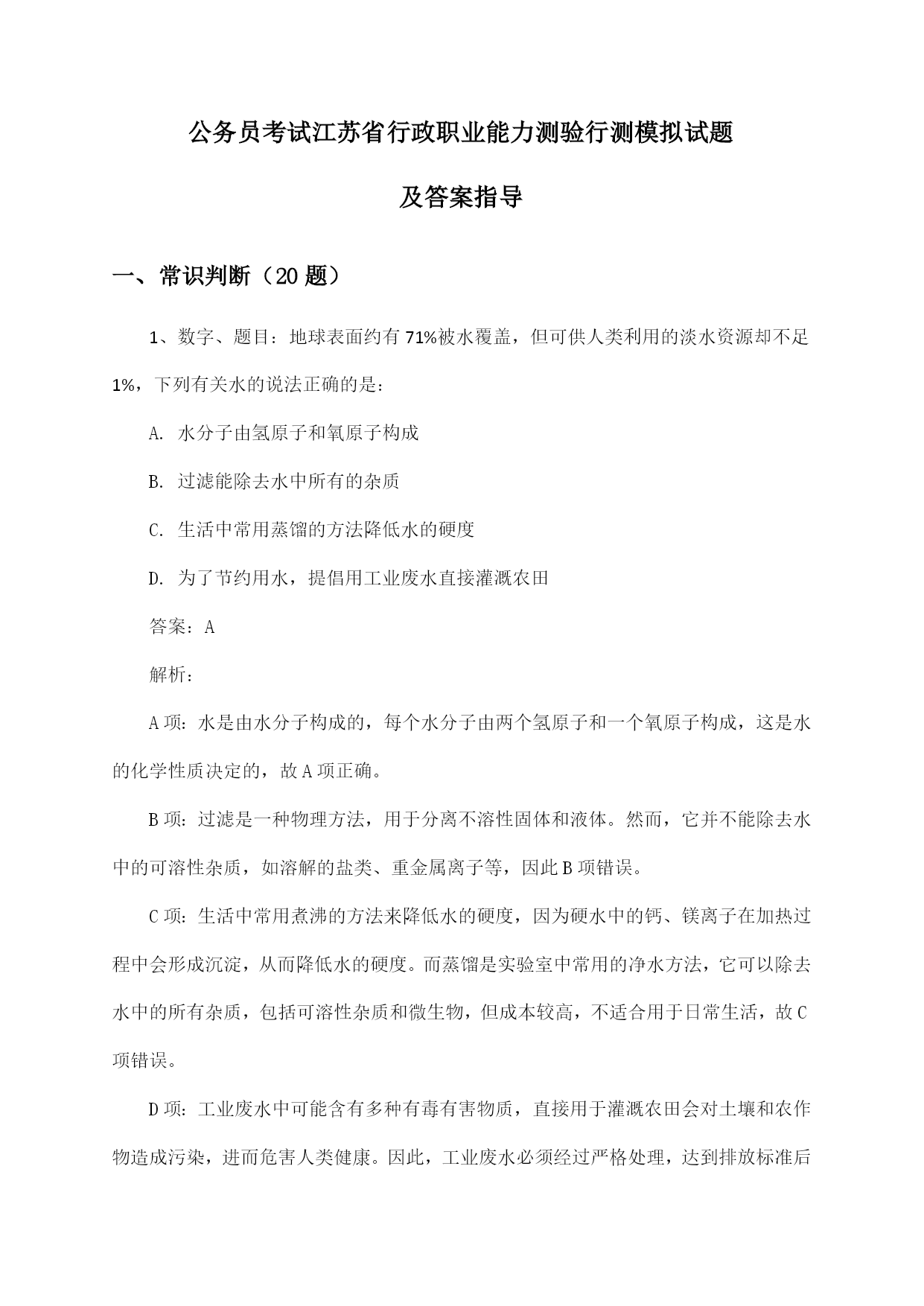 江苏省行政职业能力测验公务员考试行测模拟试题及答案指导.docx