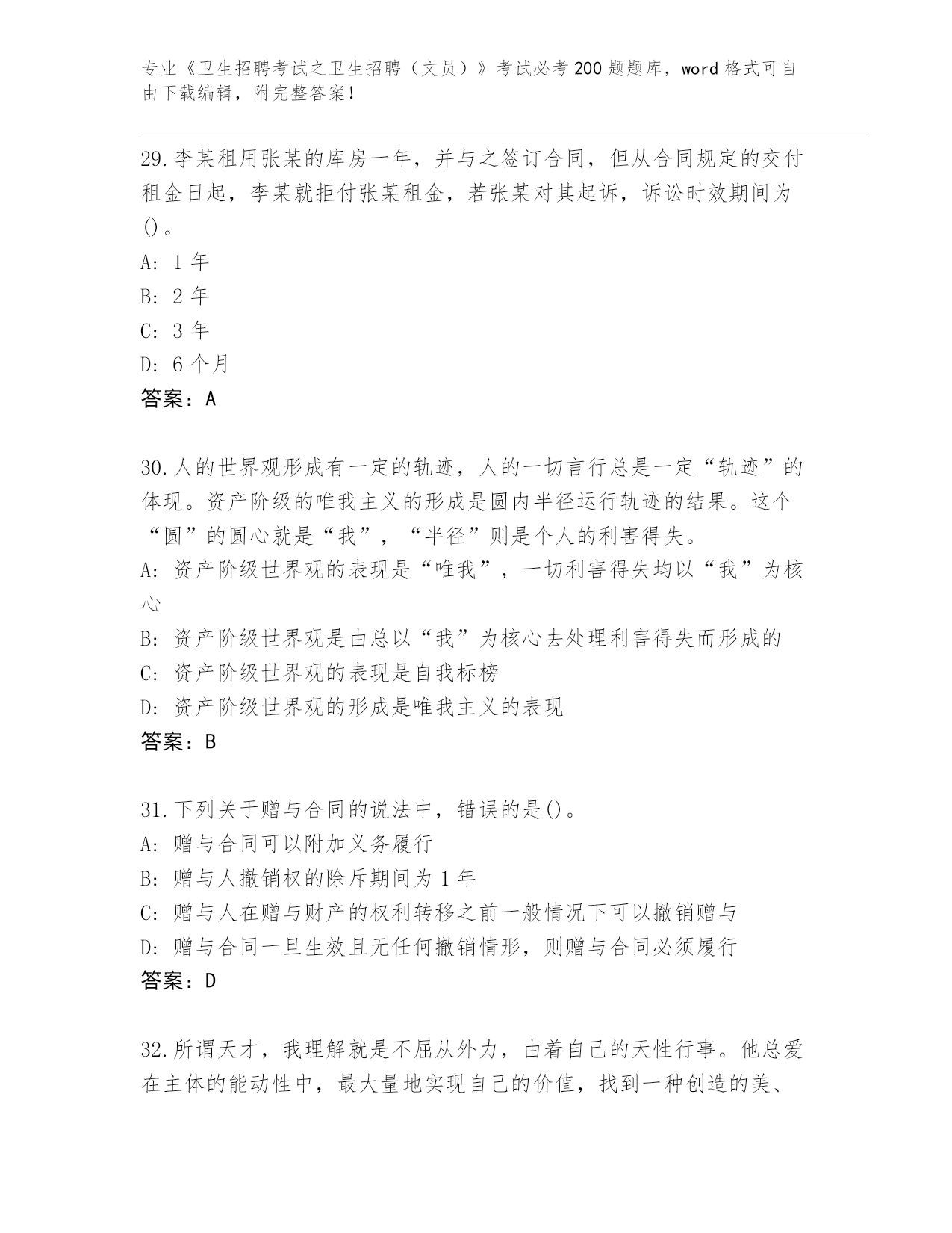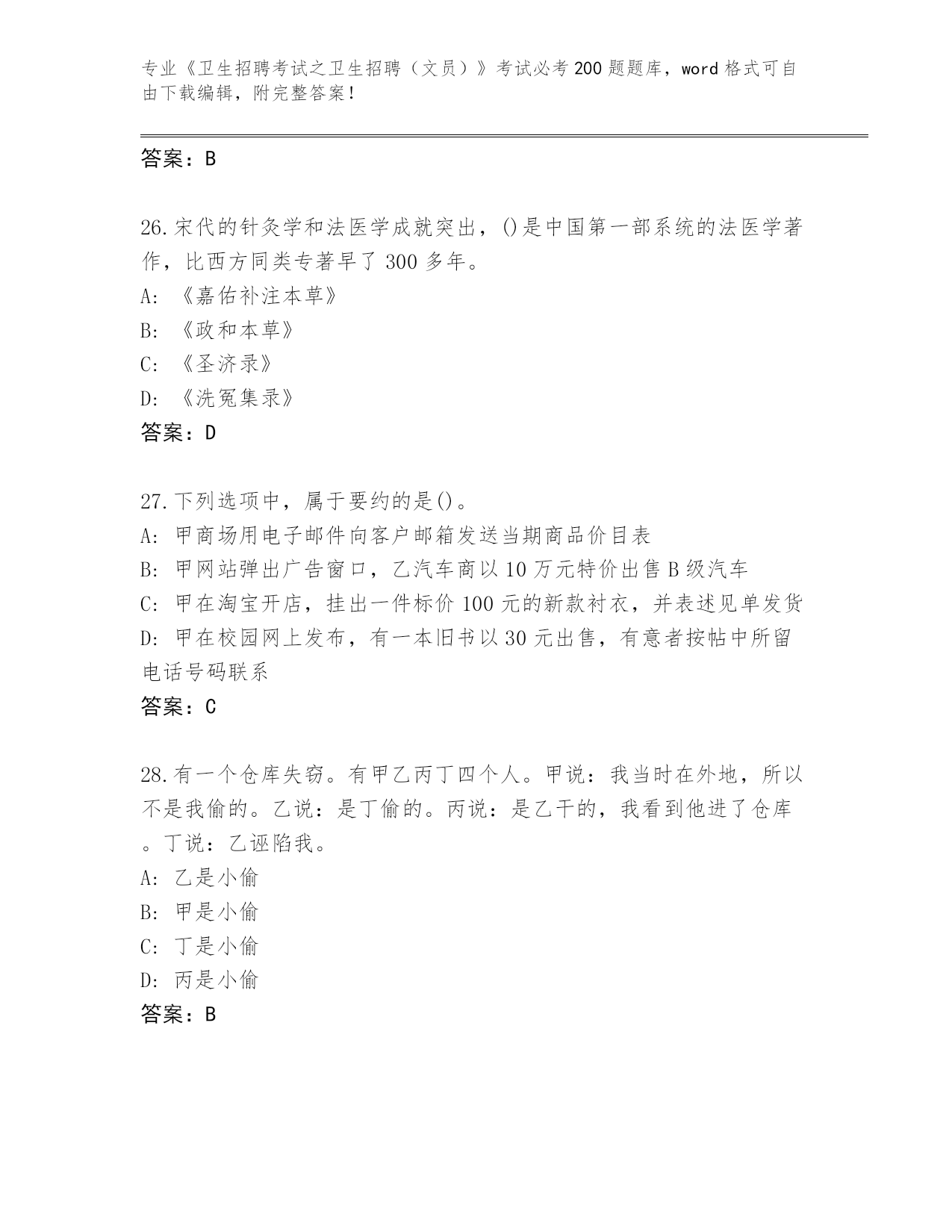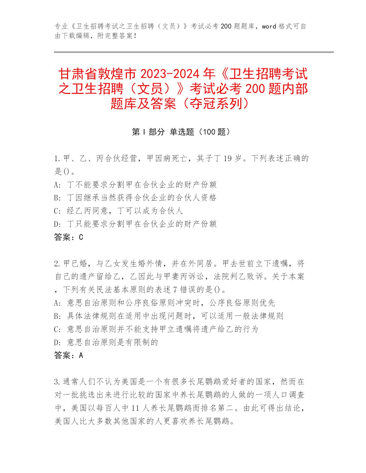 甘肃省敦煌市2023-2024年《卫生招聘考试之卫生招聘(文员)》考试必考200题内部题库及答案(夺冠系列)