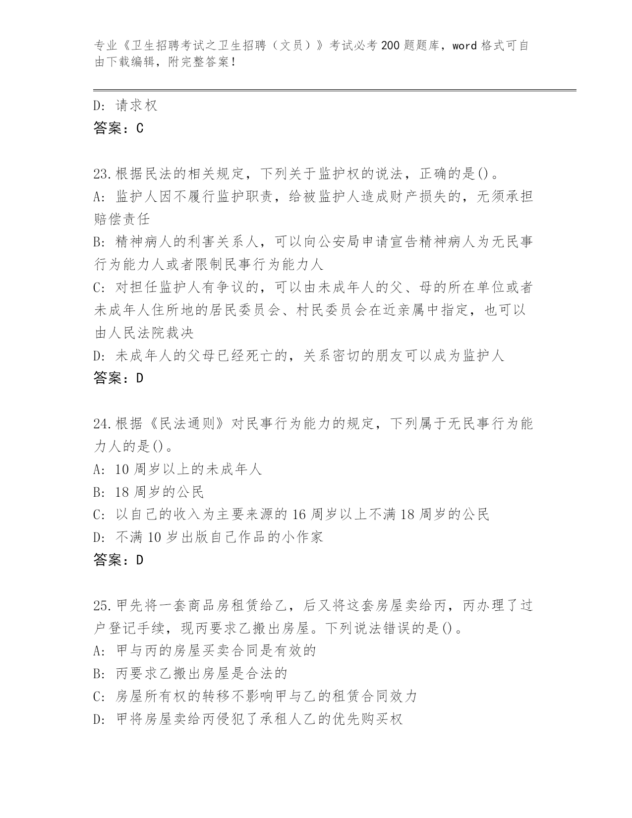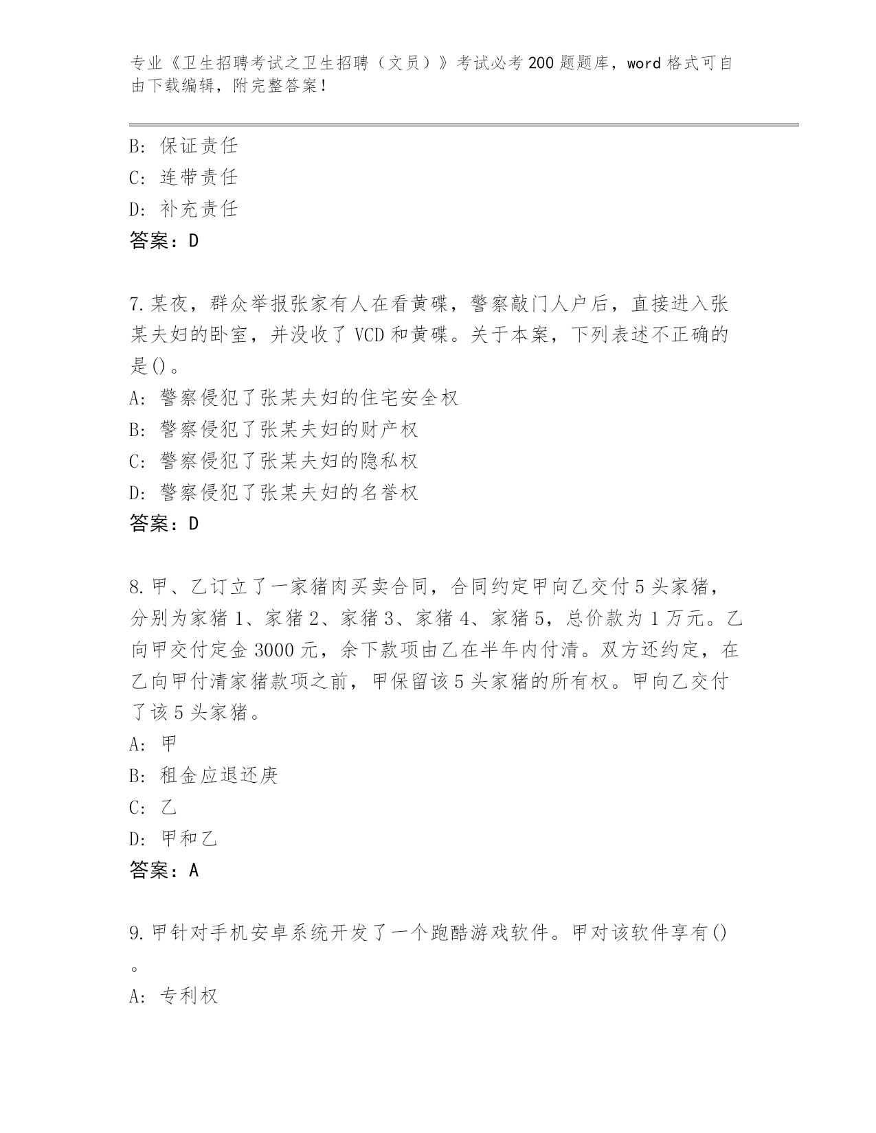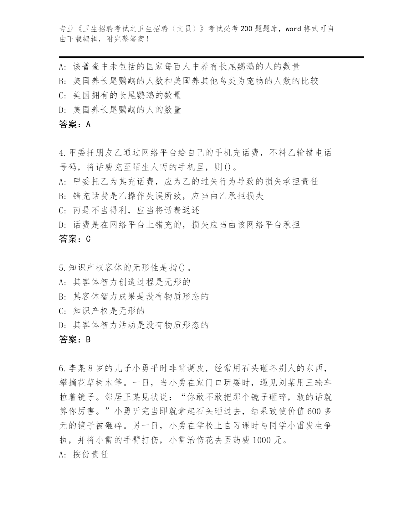 甘肃省敦煌市2023-2024年《卫生招聘考试之卫生招聘(文员)》考试必考200题内部题库及答案(夺冠系列)