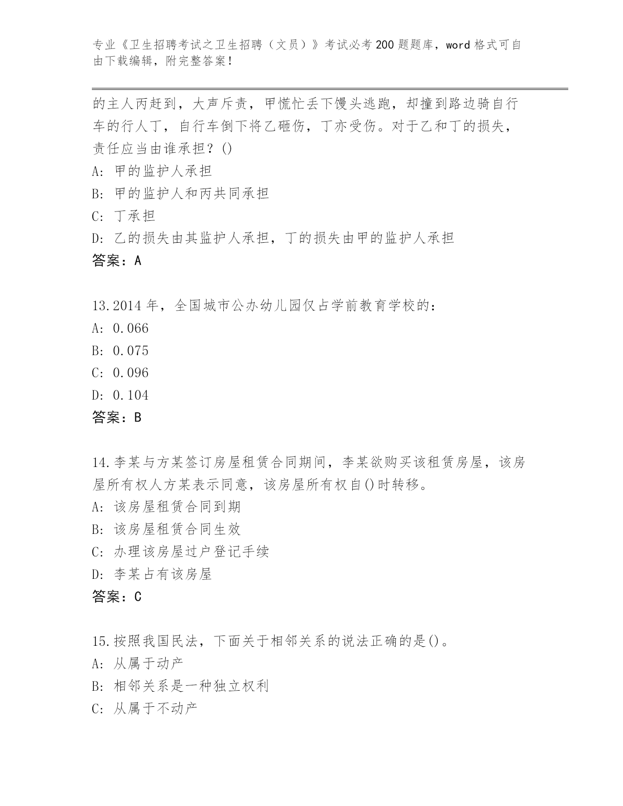 河北省2024年《卫生招聘考试之卫生招聘(文员)》考试必考200题内部题库及答案【夺冠系列】