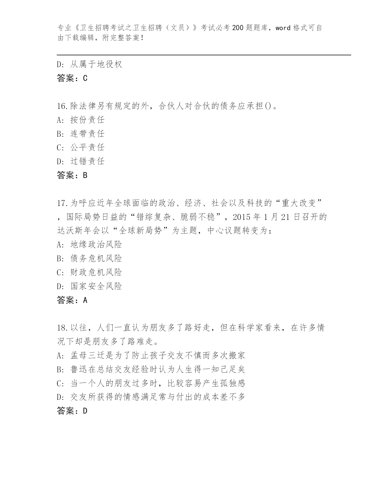 整理甘肃省敦煌市《卫生招聘考试之卫生招聘(文员)》考试必考200题大全及答案(典优)