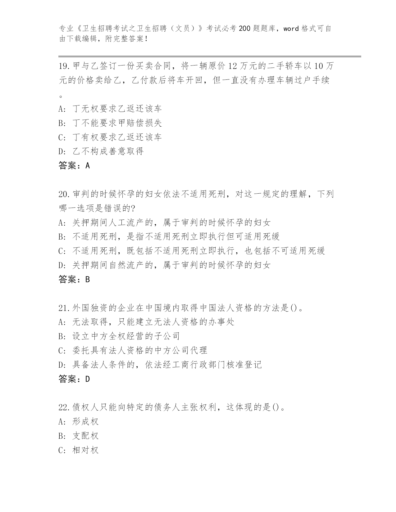 2024年甘肃省敦煌市《卫生招聘考试之卫生招聘(文员)》考试必考200题完整版及答案(夺冠系列)