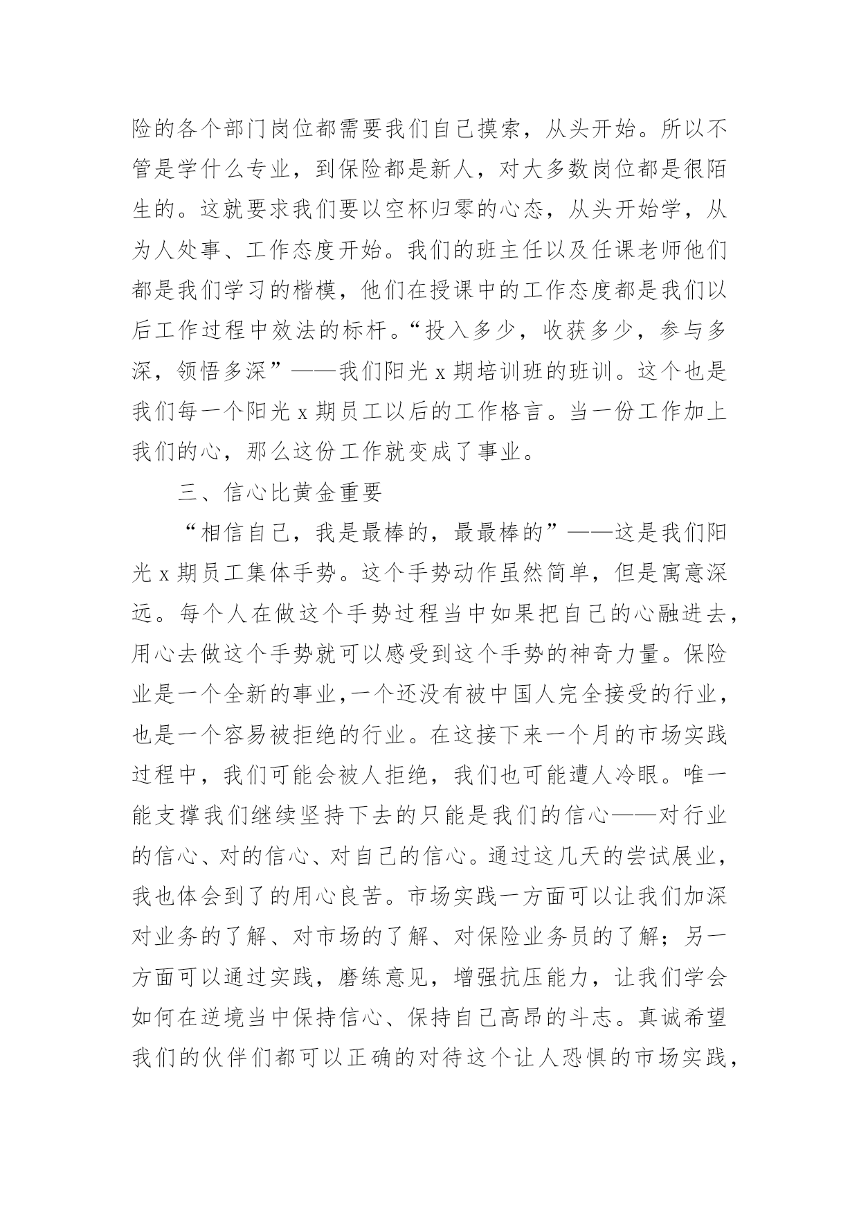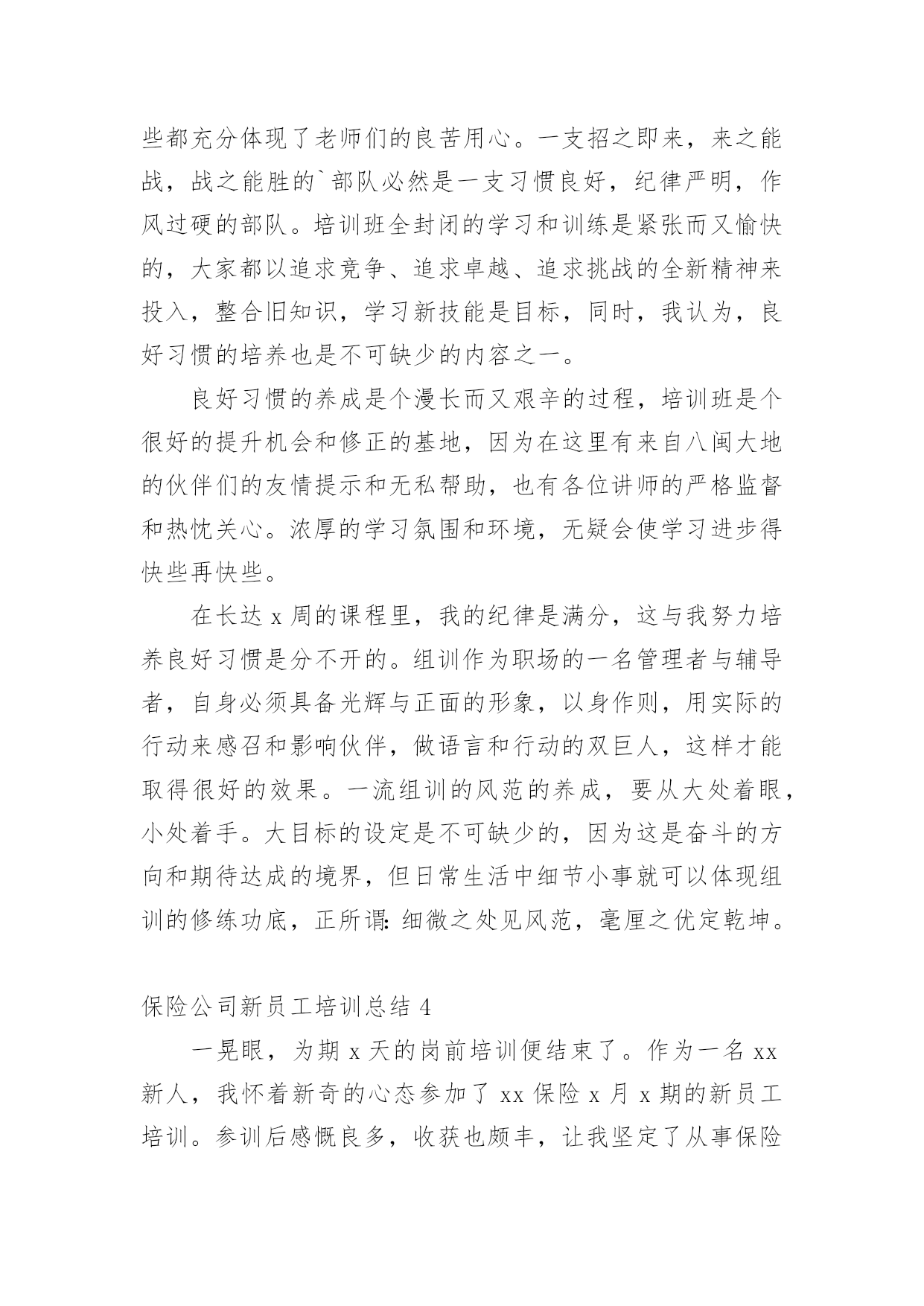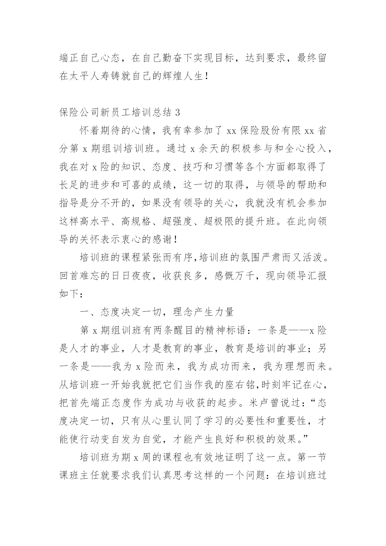 保险公司新员工培训总结总结是指对某一阶段的工作、学习或思想中的经验或情况进行分析研究,做出带有规律性结论的书面材料,它可以明确下一步的工作方向,少走弯路,少犯错误,提高工作效益,让我们来为自己写一份总结吧。那么你真的懂得怎么写总结吗?以下是小编整理的保险公司新员工培训总结,仅供参考,希望能够帮助到大家。保险公司新员工培训总结1时光飞逝,一个星期的培训马上就要结束了。这次培训的目的是帮助我们黄石供电公司的新员工尽快完成角色转变,了解公司企业文化,熟悉公司的管理制度,增强主人翁意识,养成积极主动的工作态度和敬业精神,拓展良好的人际关系,确定正确的发展目标。此次培训主要包括5个部分:绩效管理,厂纪厂规,电网建设,安规和廉政建设。在公司领导的精心组织下,培训井然有序,每一次的讲座都安排了优秀的讲授老师,良好的听课环境,学员们的积极参与,圆满完成培训任务的同时也使我本人感触颇多。首先是彭老师给我们讲解绩效管理。老师把20名新员工安自由组合方式分成4组,讲解概念的同时穿插案例让我们分组讨论,最后做总结发言。灵活的授课方式让沉闷的课堂多彩起来了,充分调动了大家的积极性,使大家很好地吸收了老师的讲解内容。绩效管理是公司管理者与员工之间在目标与如何实现目标上达成共识的过程,是促进员工进行改善,帮助员工成功达到目标,取得优异成绩的管理方法。对公司而言:绩效管理是增强有效沟通,提高管理效率,达成经营目标所采取的系统有效管理手段。对员工而言:绩效管理是检验自我能力,实现与上级有效沟通与提高自我业绩,实现自我发展的重要路径。学完绩效管理,我觉得有几个值得特别注意的地方:第一,绩效管理是一个完整的系统,不是一个简单的步骤。无论是在理论阐述还是管理实践当中,都会遇到这样一个误区:绩效管理=绩效考核,做绩效管理就是做绩效考核表。所以许多的企业在操作绩效管理时,往往断章取义地认为绩效管理就是绩效考核,企业做了绩效考核表,量化了考核指标,年终实施了考核,就是做了绩效管理了。这种误区使得许多企业在操作绩效管理时省略了极为重要的目标制定、沟通管理等过程,忽略了绩效管理中需要掌握和使用的技巧与技能,在实施绩效管理中遇到了很多的困难和障碍,企业的绩效管理的水平也处于低层次徘徊。第二,目标管理的一个最大的好处就是员工明白自己努力的方向,经理明确如何更好地通过员工的目标对员工进行有效管理,提供支持帮助。同样,绩效管理也强调目标管理,目标+沟通的绩效管理模式被广泛提倡和使用。只有绩效管理的目标明确了,经理和员工的努力才会有方向,才会更加地团结一致,共同致力于绩效目标的实现,共同提高绩效能力,更好地服务于企业的战略规划和远景目标。第三,沟通在绩效管理中起着决定性的作用。制定绩效要沟通,帮助员工实现目标要沟通,年终评估要沟通,分析原因寻求进步要沟通,总之,绩效管理的过程就是员工和经理持续不断沟通的过程。离开了沟通,企业的绩效管理将流于形式。许多管理活动失败的原因都是因为沟通出现了问题,绩效管理就是致力于管理沟通的改善,全面提高管理者的沟通意识,提高管理的沟通技巧,进而改善企业的管理水平和管理者的管理素质。接下来通过李老师和王老师的授课,我们了解了黄石供电公司的基本情况和黄石地区电网建设现状,了解了公司的领导班子和机构组成。黄石供电公司是国家大一型一流供电企业,全民职工2629人,下属16个部室,5个营业公司,16个生产单位,担负着黄石5区2县的供电任务,用户68万,有41个基层营业站所,135个供电组,固定资产21。7亿元。黄石电网西接武汉,北连黄冈,东送江西,是鄂东南电网的枢纽。唯一的500KV的磁湖站是构成湖北主干网的重要一环,7座220KV变电站是组成黄石电网的主干力量,有效稳定地分担着黄石地区的用电负荷,但由于网络结构的拓扑属性,位于阳新的姜变与整个地区的电网联系还很薄弱,电网的稳定安全还有待进一步的加强。王老师还具体的给我们讲解了有关负荷调配,开关操作和线路分析等的实际案例,使我们知道,学校学到的终究只是理论的书面的东西,要将这些东西真正变成实际的技能,我们还有很长的`路要走,需要多留心观察学习,多跟师傅们请教,争取早日有所成,为黄石电网的建设贡献自己的力量。最后是安规学习。电力安全生产的重要性是由电力生产、电力基本建设、电力多种经营的客观规律和生产特性及社会作用决定的。随着电力工业迅速发展、电力体制改革和市场化进程加快,电力安全生产的重要性更加突出。(1)电力安全生产影响各行各业和社会稳定。它为各行各业提供电力,如果供电中断,特别是电网事故造成大面积停电,将使各行各业的生产停顿或瘫痪,有的还会产生一系列次生事故,带来一系列次生灾害。另外,供电中断或大面积停电,会给社会和人民生活秩序带来混乱,甚至造成社会灾难,造成极坏的政治影响。(2)电力安全生产影响电力企业本身。