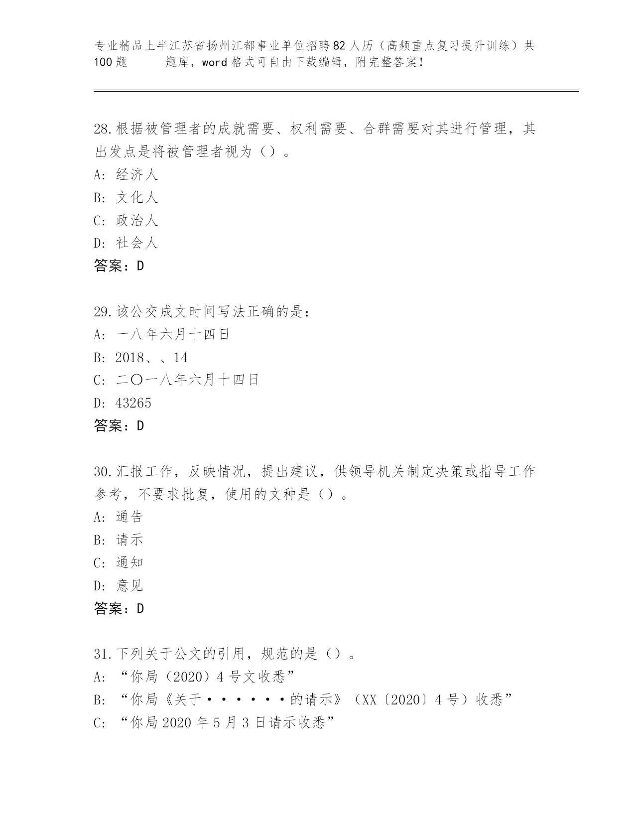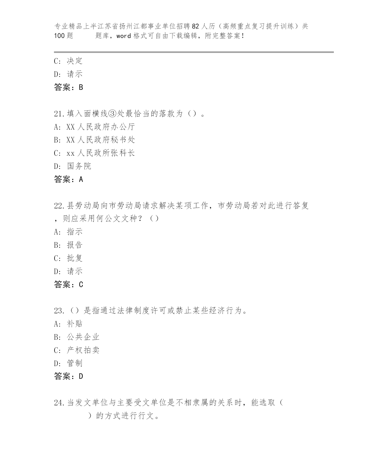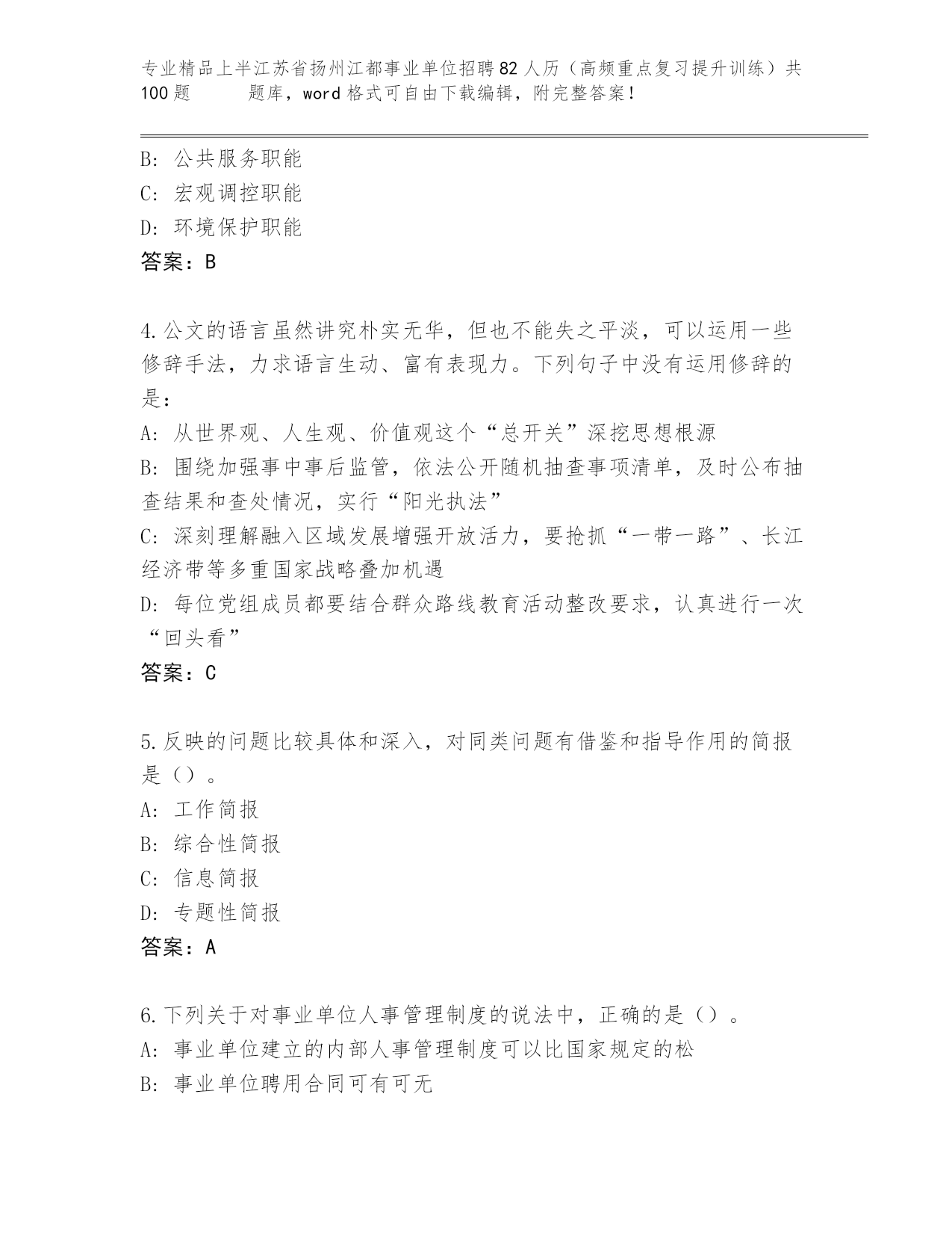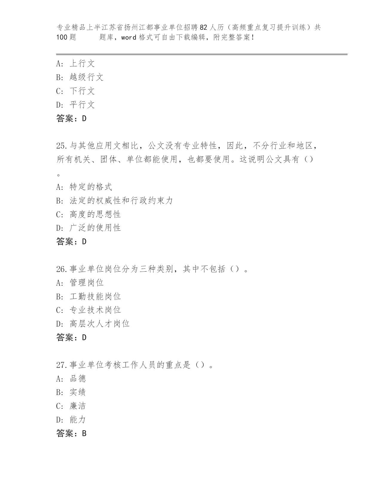 上半江苏省扬州江都事业单位招聘82人历(高频重点复习提升训练)共100题 真题题库精品(各地真题)
