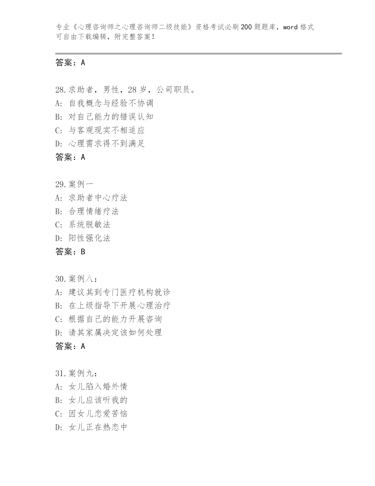 江西省2024年《心理咨询师之心理咨询师二级技能》资格考试必刷200题真题含答案