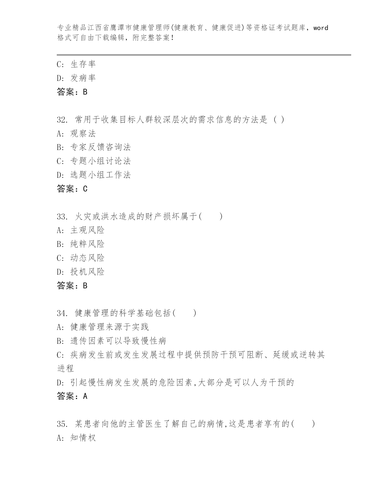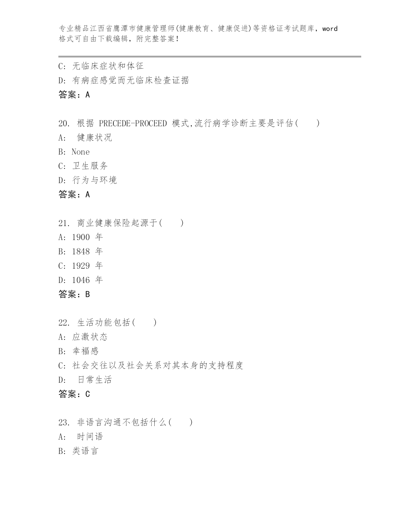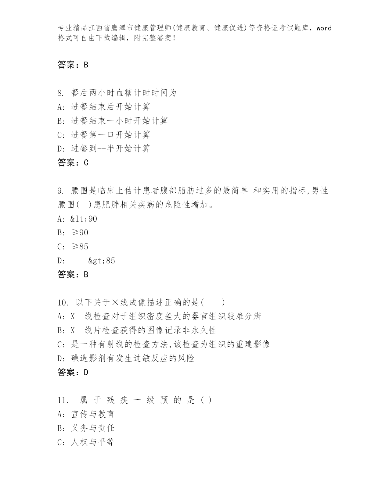 历年江西省鹰潭市健康管理师(健康教育、健康促进)等资格证考试优选题库(培优)