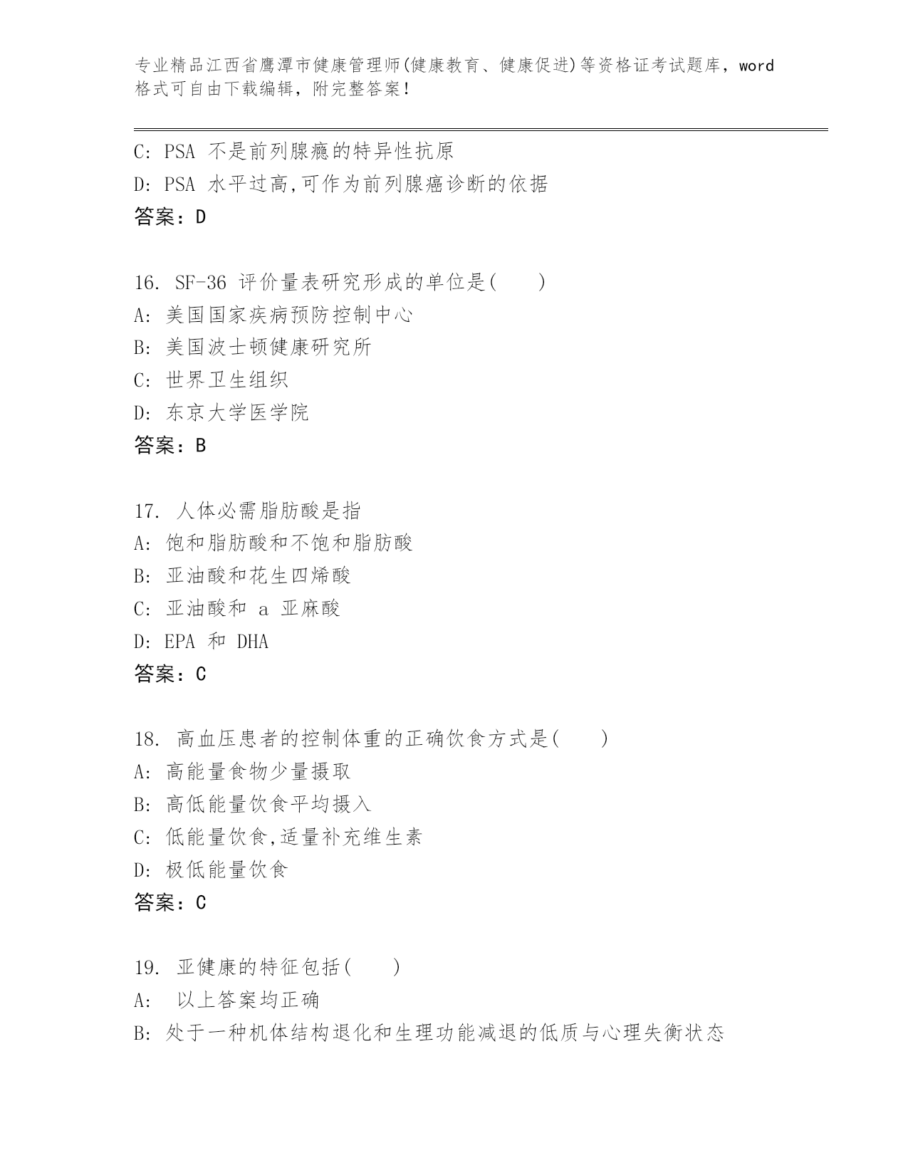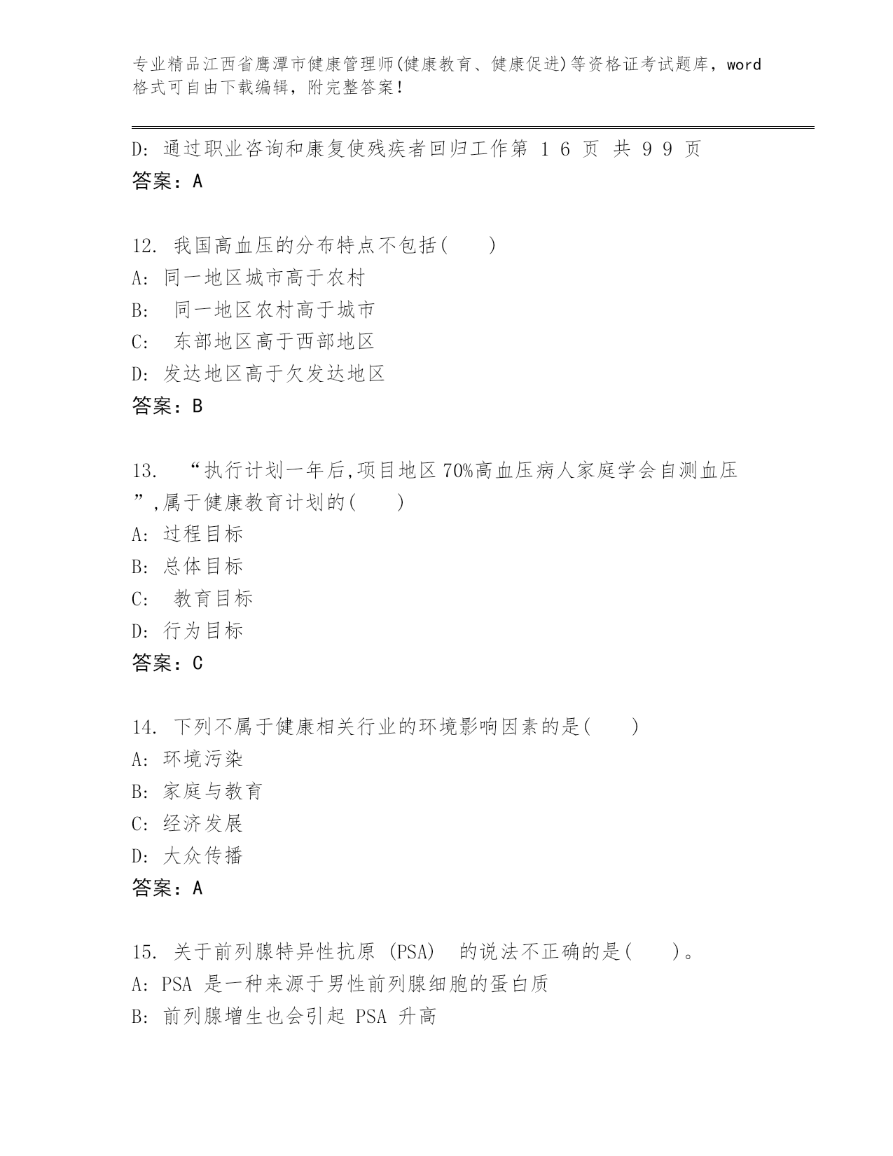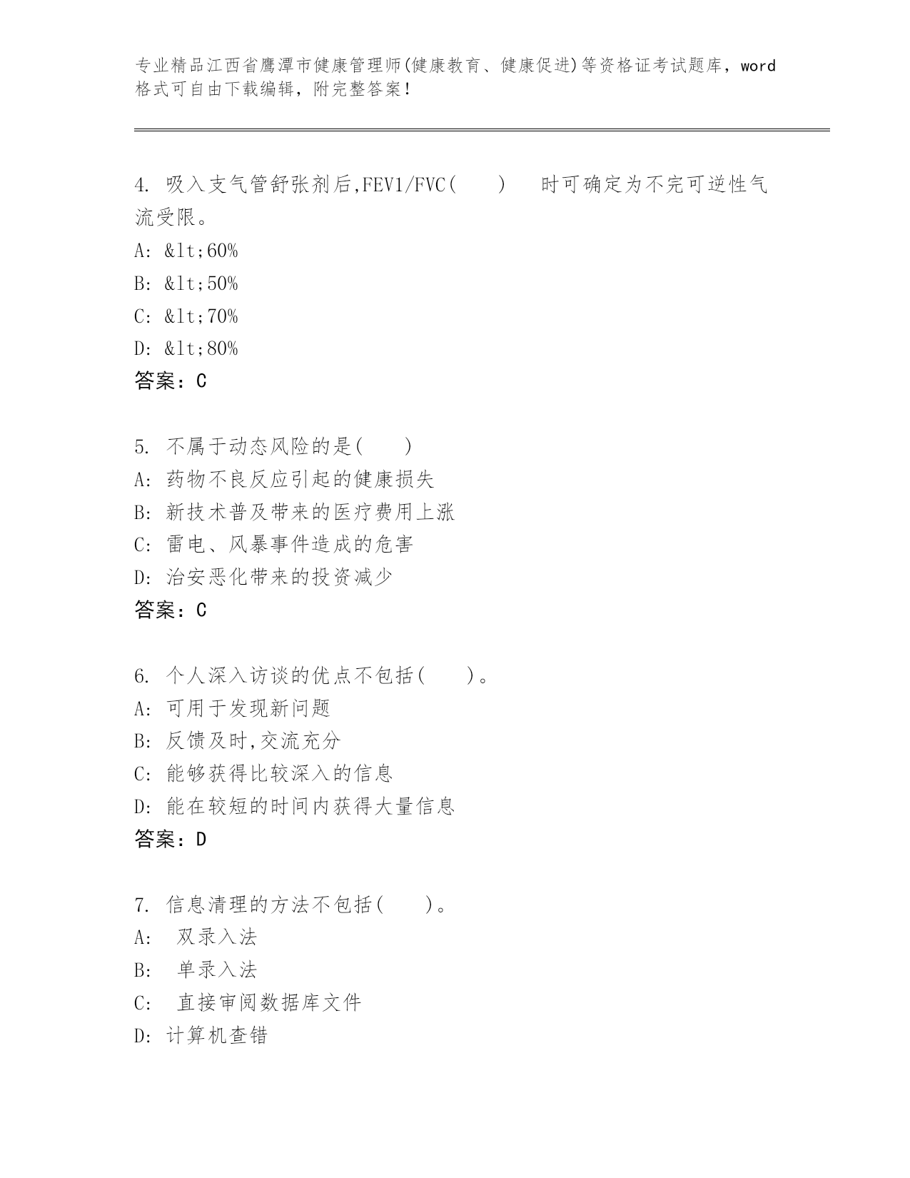 历年江西省鹰潭市健康管理师(健康教育、健康促进)等资格证考试优选题库(培优)