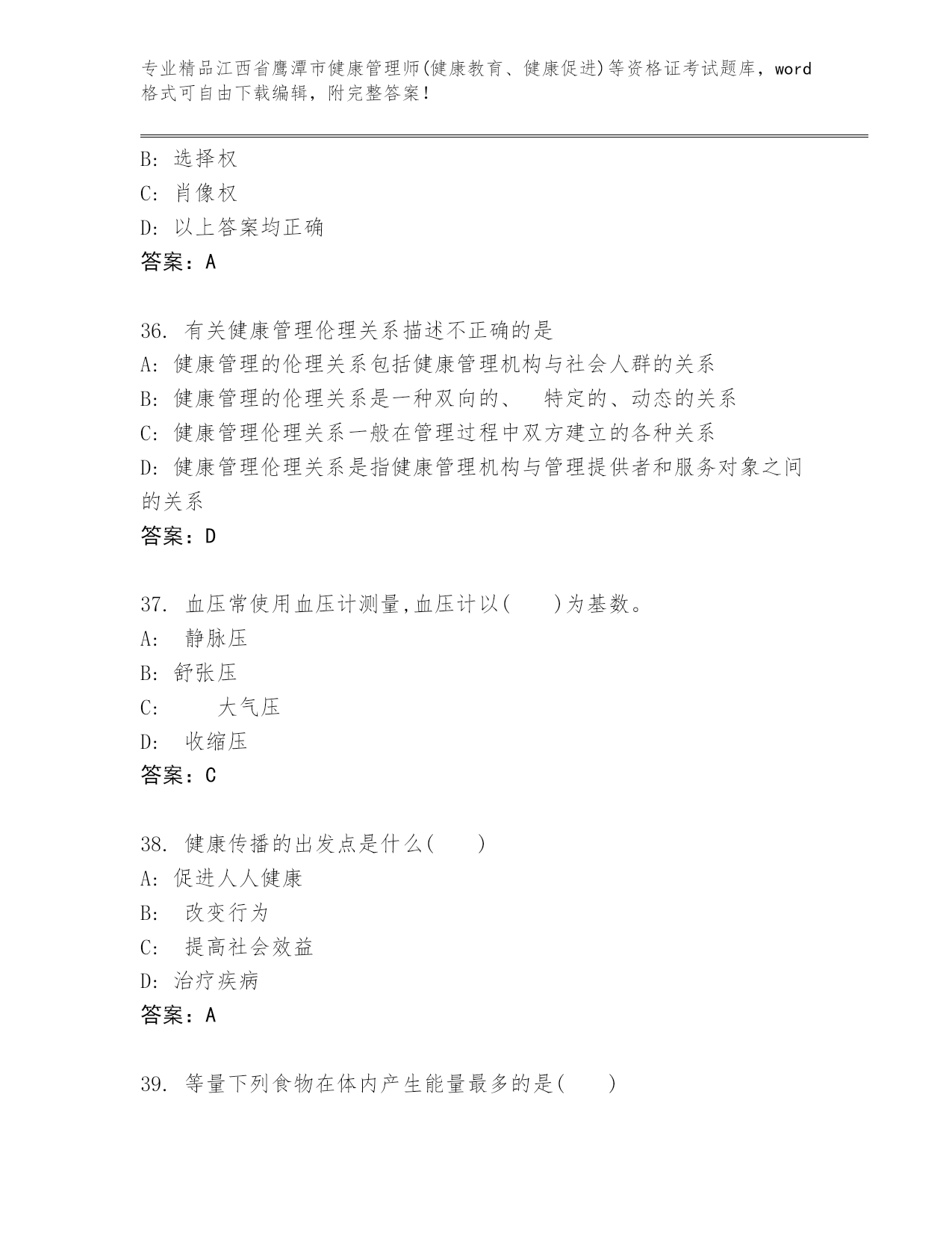 历年江西省鹰潭市健康管理师(健康教育、健康促进)等资格证考试优选题库(培优).docx