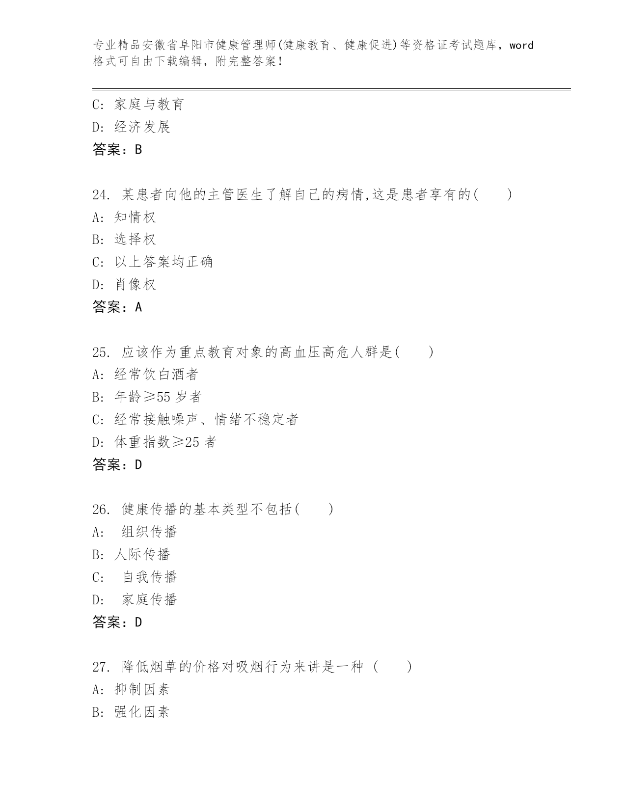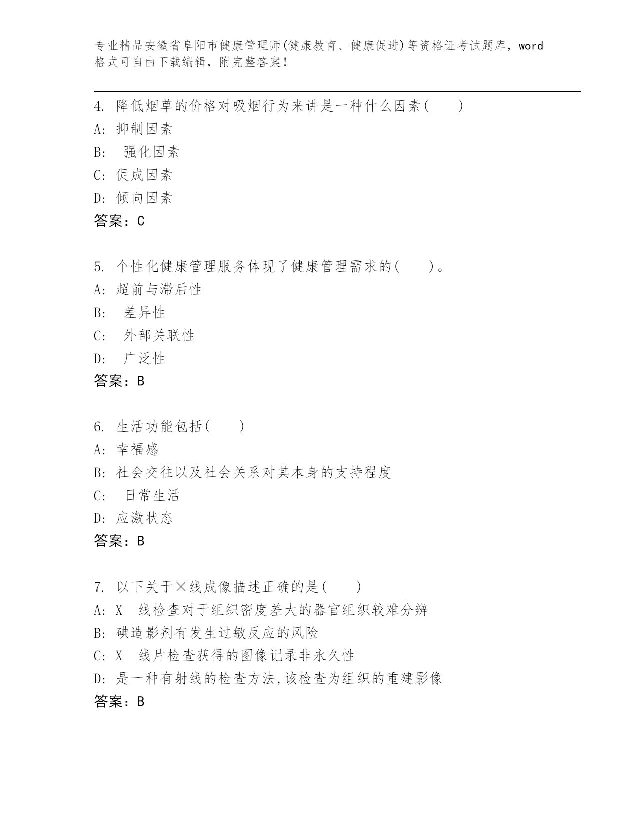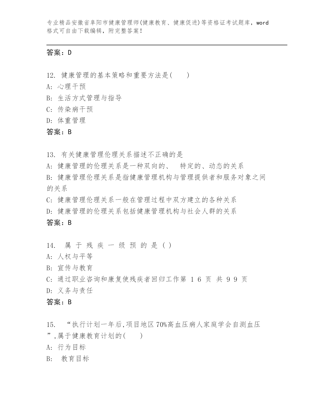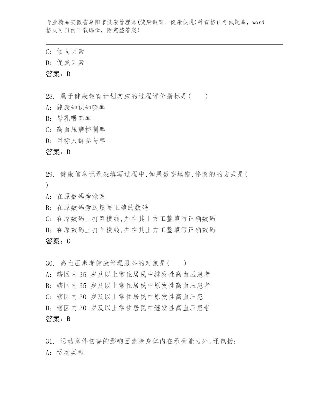 安徽省阜阳市健康管理师(健康教育、健康促进)等资格证考试(预热题).docx