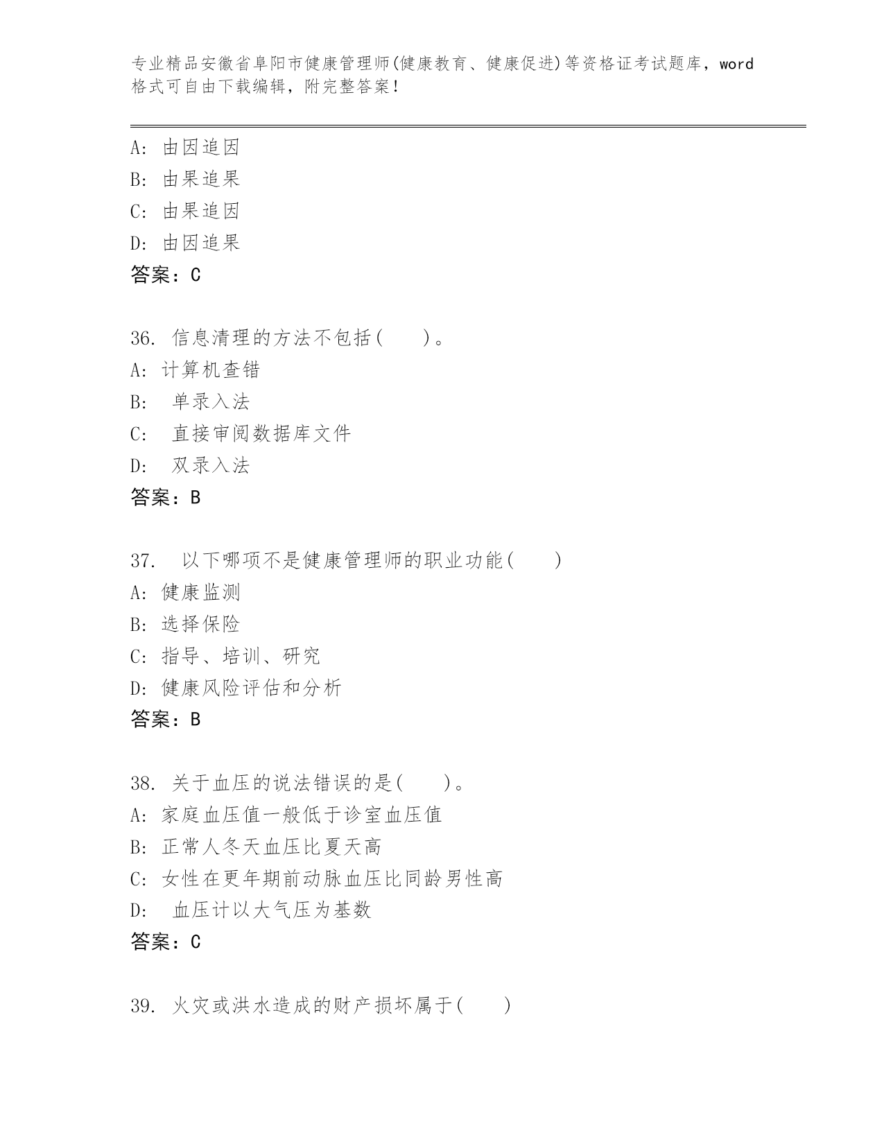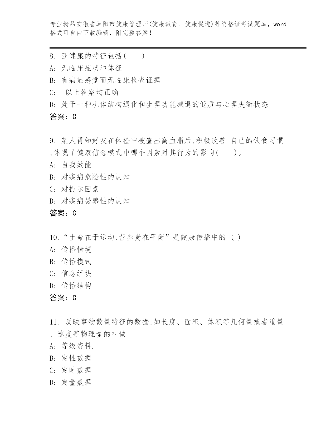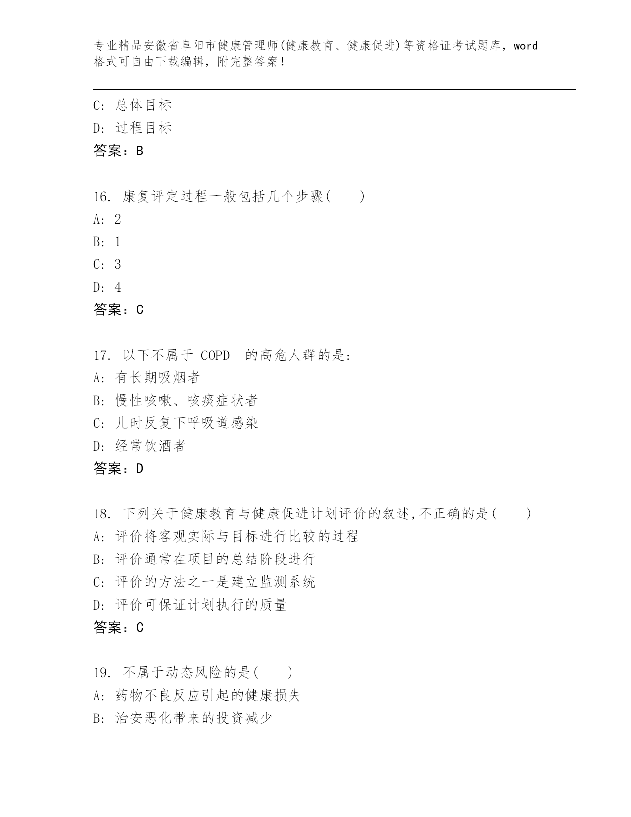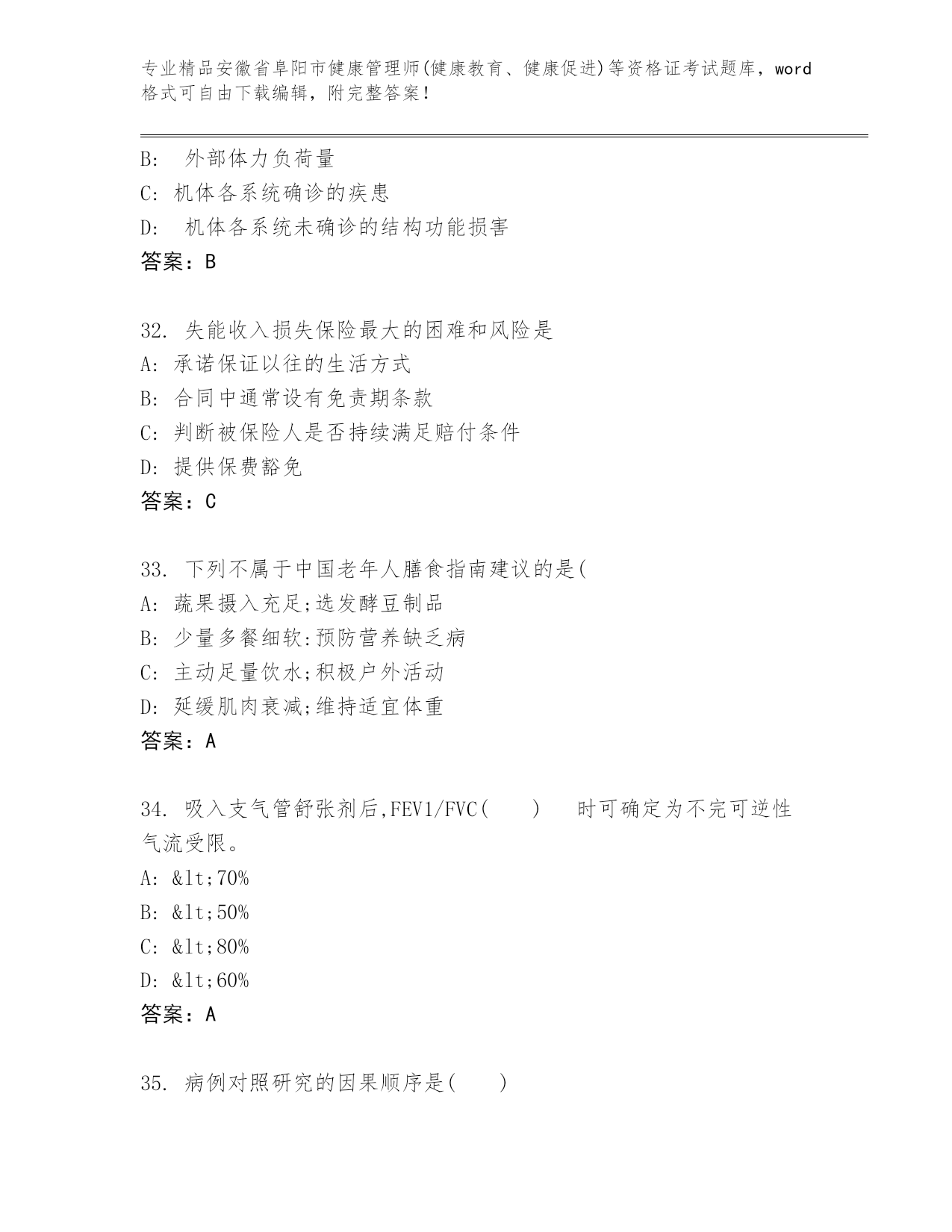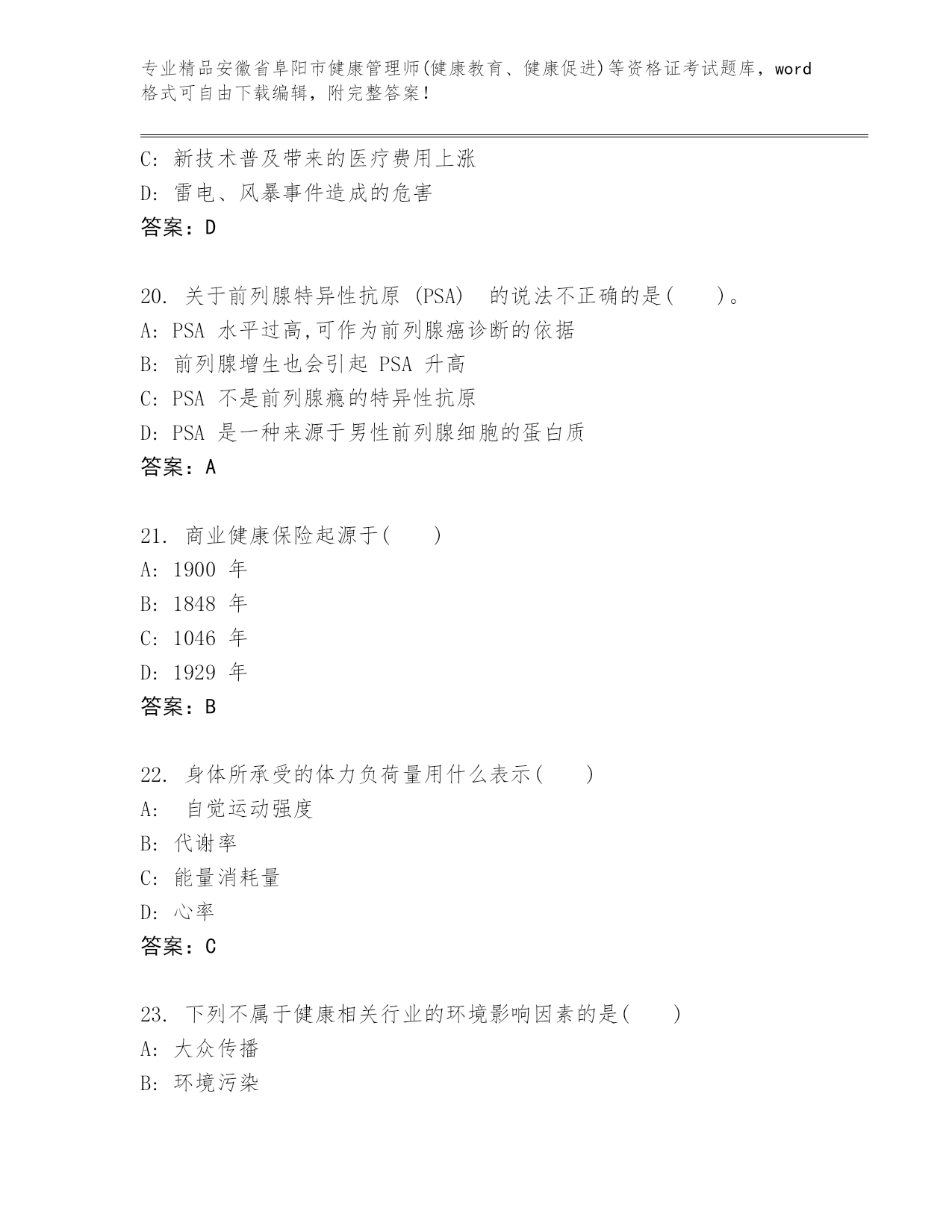 安徽省阜阳市健康管理师(健康教育、健康促进)等资格证考试(预热题).docx