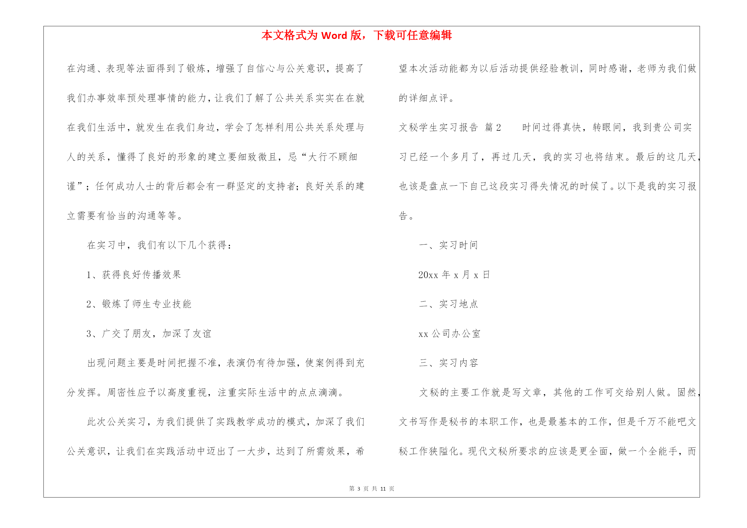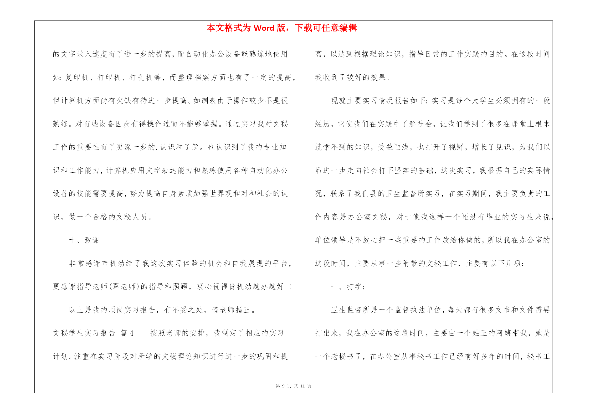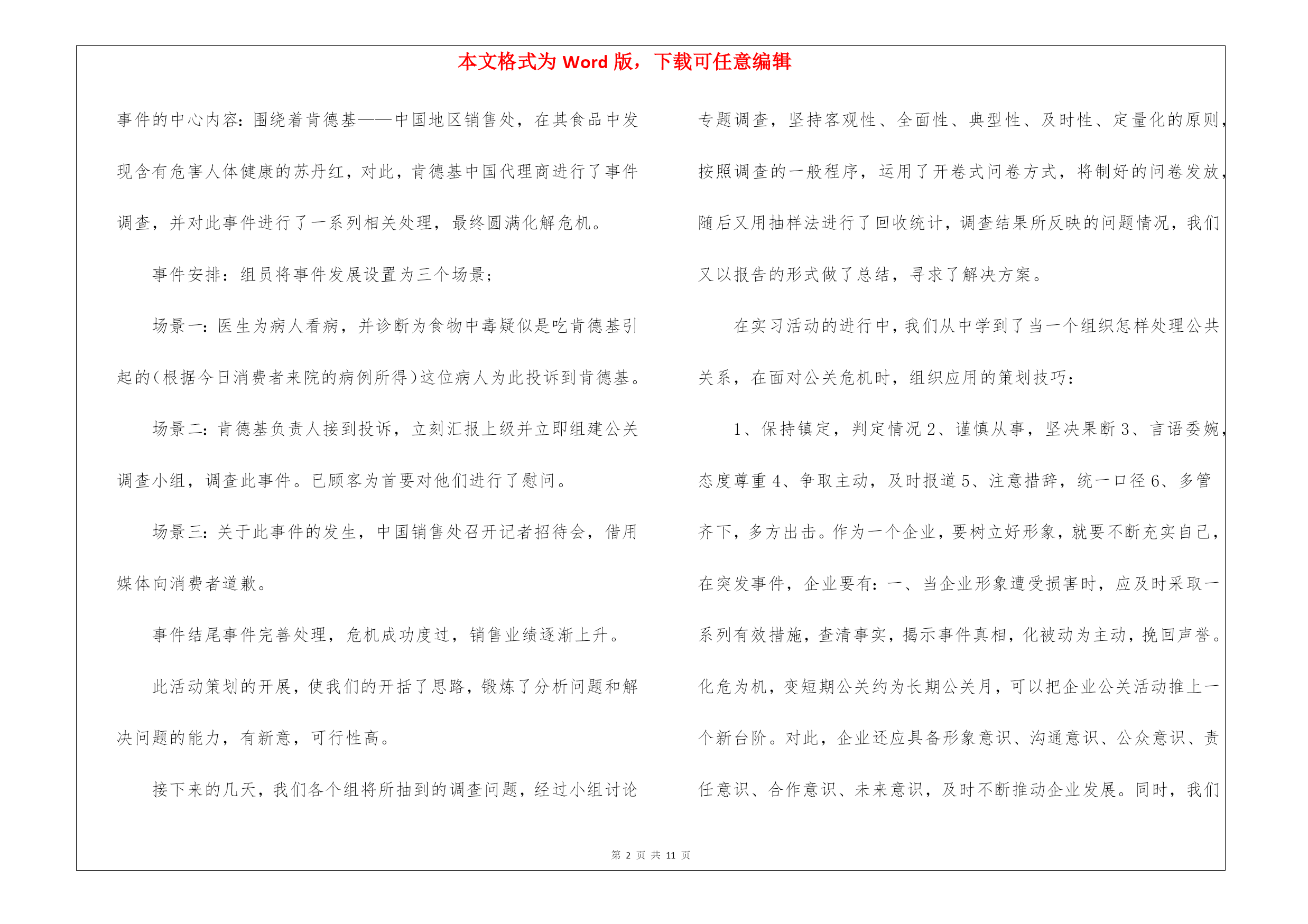 本文格式为Word版,下载可任意编辑第PAGE\*MERGEFORMAT11页共NUMPAGES\*MERGEFORMAT11页实用的文秘学生实习报告四篇实用的文秘学生实习报告四篇在不断进步的时代,报告使用的次数愈发增长,不同种类的报告具有不同的用途。一听到写报告马上头昏脑涨?下面是我为大家整理的文秘学生实习报告4篇,欢迎大家借鉴与参考,希望对大家有所帮助。文秘学生实习报告篇1为使公关实习得到良好的效果,我们本着现实性、生活性、真实性、的原则,进行了模拟公关策划模拟和问卷调查的活动。经过一周的实习使我们了解了当代大学生的公关意识成为影响大学生成材和发展以及整个社会发展和进步的重要因素。在实习的一周里,我们公共文秘专业的两个班共同做了关于包含八个主题的媒体访谈、新闻事件、危机处理、公关策划的公关模拟活动,紧接有进行了关于大学生八个方面的问卷调查,并将有关课题一一分组做了实践活动。在公关策划中,我们几组运用了情景体验,现场模拟的方式,对公关“是什么,怎么做,做的怎样”有了详细了解,有利于提高我们的学习积极性与掌握程度。策划中每组成员都能够按照规定的策划程序:1、确定公关目标2、设计主题3、界定公众4、选择媒体5、公关预算6、审定方案7、计划书,将方案确定下来;在模拟方案时,我们师生共同讨论,争辩、评判,在点评时间里,每组成员都能够认真听取其不足及优点,并及时对自己组的方案做及时的补充与修改,以求更精。中我组活动所做的课题为危机事件,主题为肯德基苏丹红事件。事件的中心内容:围绕着肯德基——中国地区销售处,在其食品中发现含有危害人体健康的苏丹红,对此,肯德基中国代理商进行了事件调查,并对此事件进行了一系列相关处理,最终圆满化解危机。事件安排:组员将事件发展设置为三个场景;场景一:医生为病人看病,并诊断为食物中毒疑似是吃肯德基引起的(根据今日消费者来院的病例所得)这位病人为此投诉到肯德基。场景二:肯德基负责人接到投诉,立刻汇报上级并立即组建公关调查小组,调查此事件。已顾客为首要对他们进行了慰问。场景三:关于此事件的发生,中国销售处召开记者招待会,借用媒体向消费者道歉。事件结尾事件完善处理,危机成功度过,销售业绩逐渐上升。此活动策划的开展,使我们的开括了思路,锻炼了分析问题和解决问题的能力,有新意,可行性高。接下来的几天,我们各个组将所抽到的调查问题,经过小组讨论专题调查,坚持客观性、全面性、典型性、及时性、定量化的原则,按照调查的一般程序,运用了开卷式问卷方式,将制好的问卷发放,随后又用抽样法进行了回收统计,调查结果所反映的问题情况,我们又以报告的形式做了总结,寻求了解决方案。在实习活动的进行中,我们从中学到了当一个组织怎样处理公共关系,在面对公关危机时,组织应用的策划技巧:1、保持镇定,判定情况2、谨慎从事,坚决果断3、言语委婉,态度尊重4、争取主动,及时报道5、注意措辞,统一口径6、多管齐下,多方出击。作为一个企业,要树立好形象,就要不断充实自己,在突发事件,企业要有:一、当企业形象遭受损害时,应及时采取一系列有效措施,查清事实,揭示事件真相,化被动为主动,挽回声誉。化危为机,变短期公关约为长期公关月,可以把企业公关活动推上一个新台阶。对此,企业还应具备形象意识、沟通意识、公众意识、责任意识、合作意识、未来意识,及时不断推动企业发展。同时,我们在沟通、表现等法面得到了锻炼,增强了自信心与公关意识,提高了我们办事效率预处理事情的能力,让我们了解了公共关系实实在在就在我们生活中,就发生在我们身边,学会了怎样利用公共关系处理与人的关系,懂得了良好的形象的建立要细致微且,忌“大行不顾细谨”;任何成功人士的背后都会有一群坚定的支持者;良好关系的建立需要有恰当的沟通等等。在实习中,我们有以下几个获得:1、获得良好传播效果2、锻炼了师生专业技能3、广交了朋友,加深了友谊出现问题主要是时间把握不准,表演仍有待加强,使案例得到充分发挥。周密性应予以高度重视,注重实际生活中的点点滴滴。此次公关实习,为我们提供了实践教学成功的模式,加深了我们公关意识,让我们在实践活动中迈出了一大步,达到了所需效果,希望本次活动能都为以后活动提供经验教训,同时感谢,老师为我们做的详细点评。文秘学生实习报告篇2时间过得真快,转眼间,我到贵公司实习已经一个多月了,再过几天,我的实习也将结束。最后的这几天,也该是盘点一下自己这段实习得失情况的时候了。以下是我的实习报告。一、实习时间20xx年x月x日二、实习地点xx公司办公室三、实习内容文秘的主要工作就是写文章,其他的工作可交给别人做。固然,文书写作是秘书的本职工作,也是最基本的工作,但是千万不能吧文秘工作狭隘化。现代文秘所要求的应该是更全面,做一个全能手,而不是只是一个专才。在我们的课程尚,这点也是显得非常