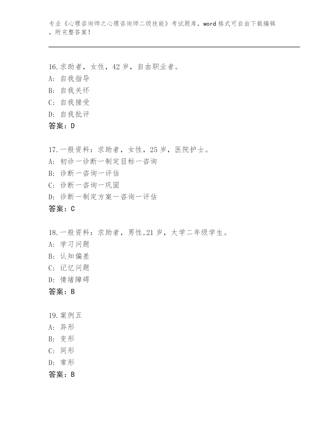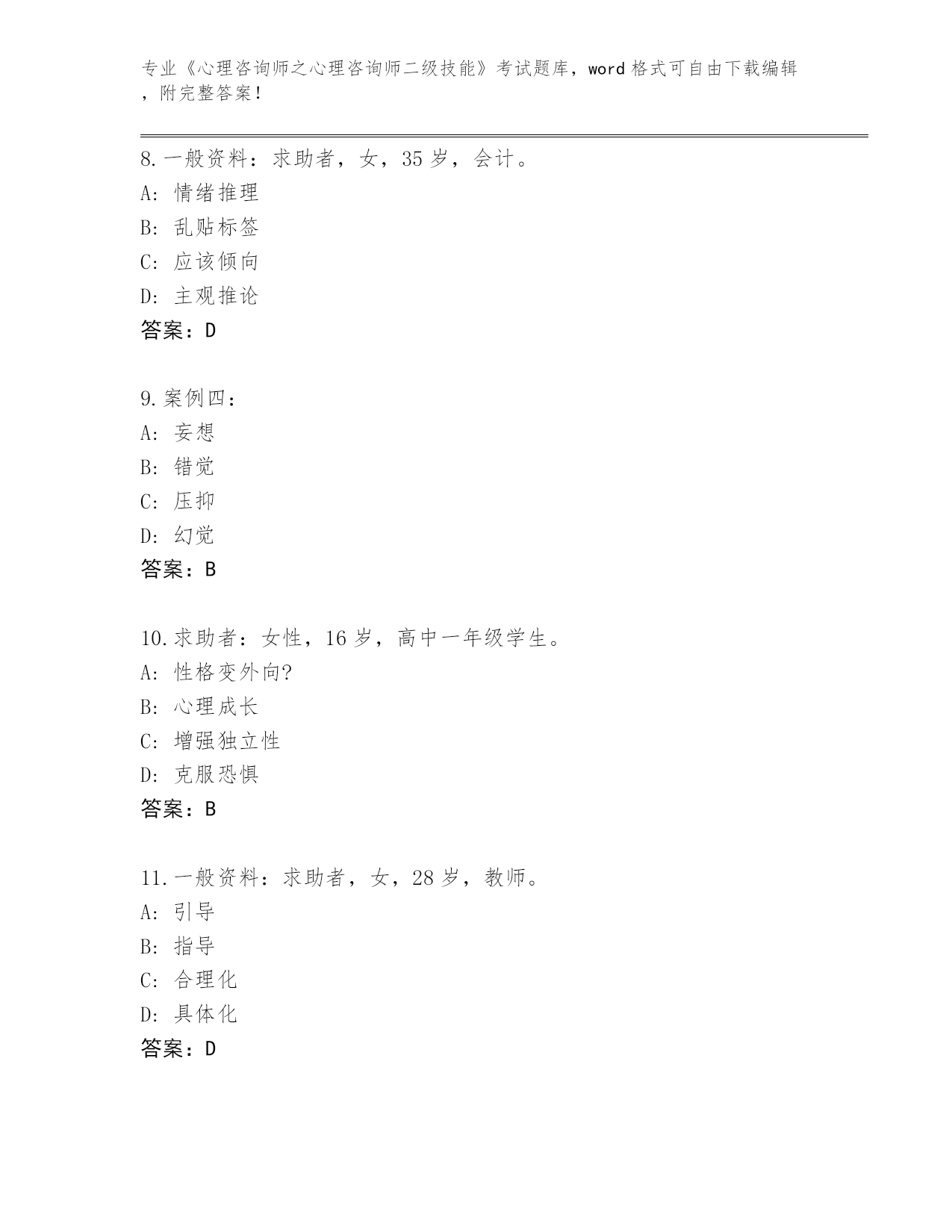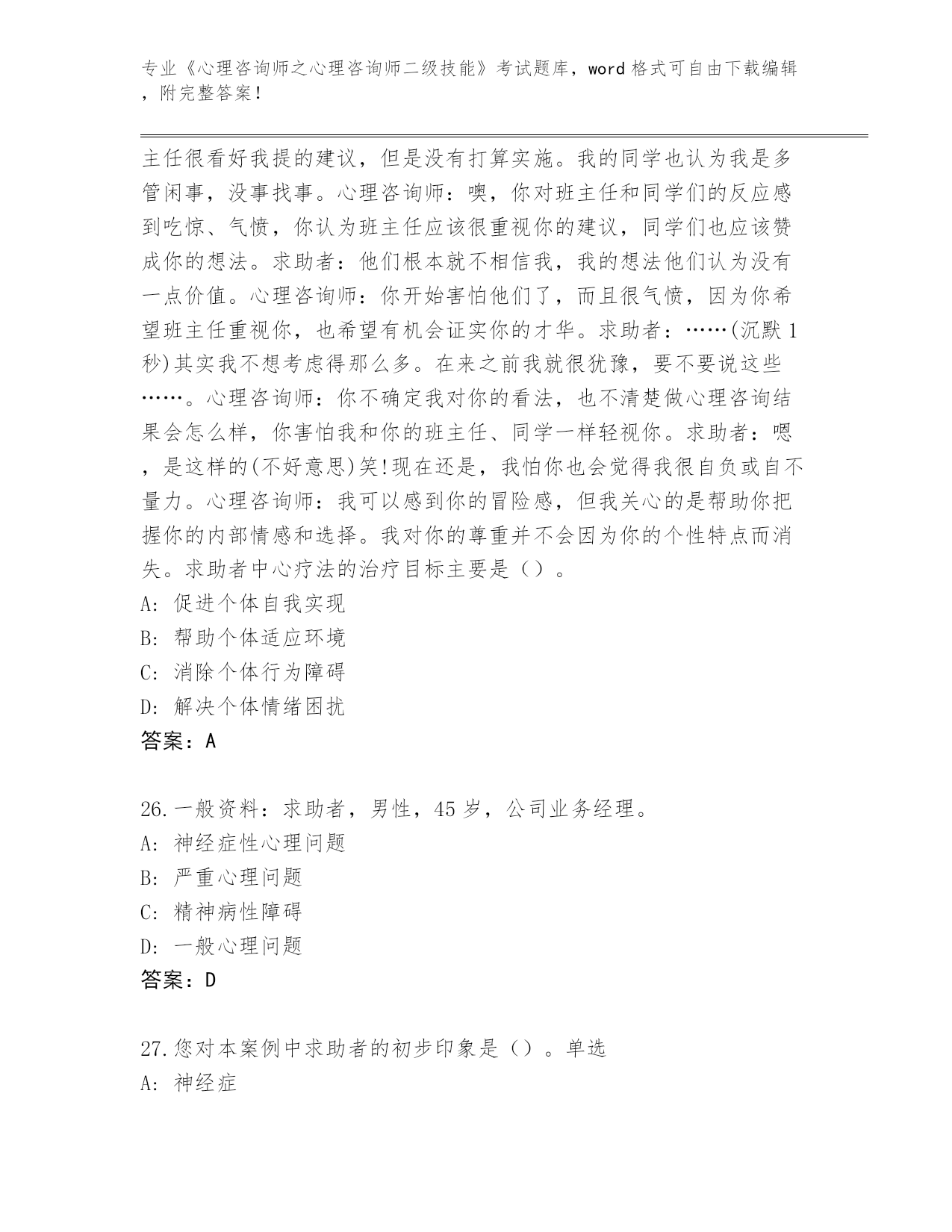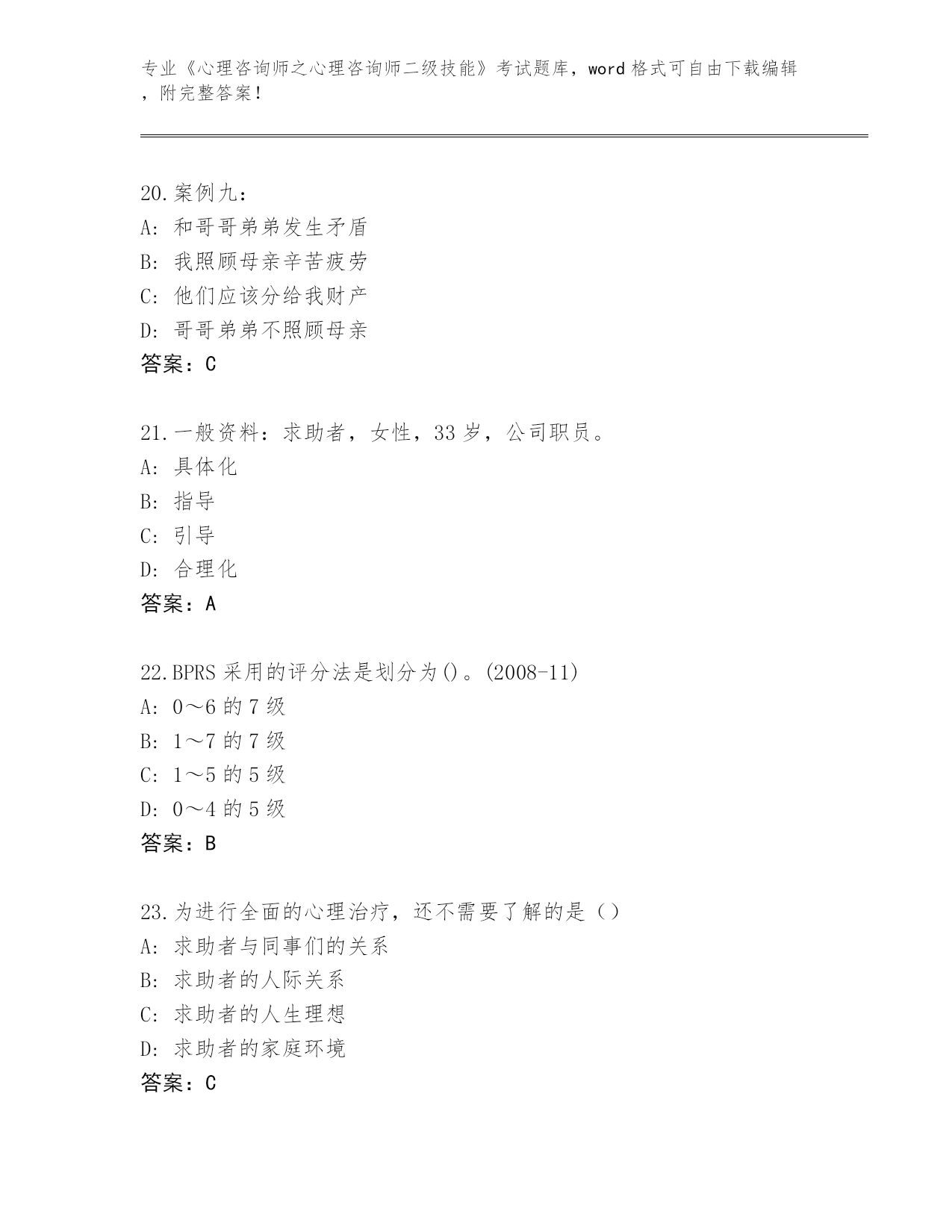 贵州省《心理咨询师之心理咨询师二级技能》考试题库带答案(综合题)