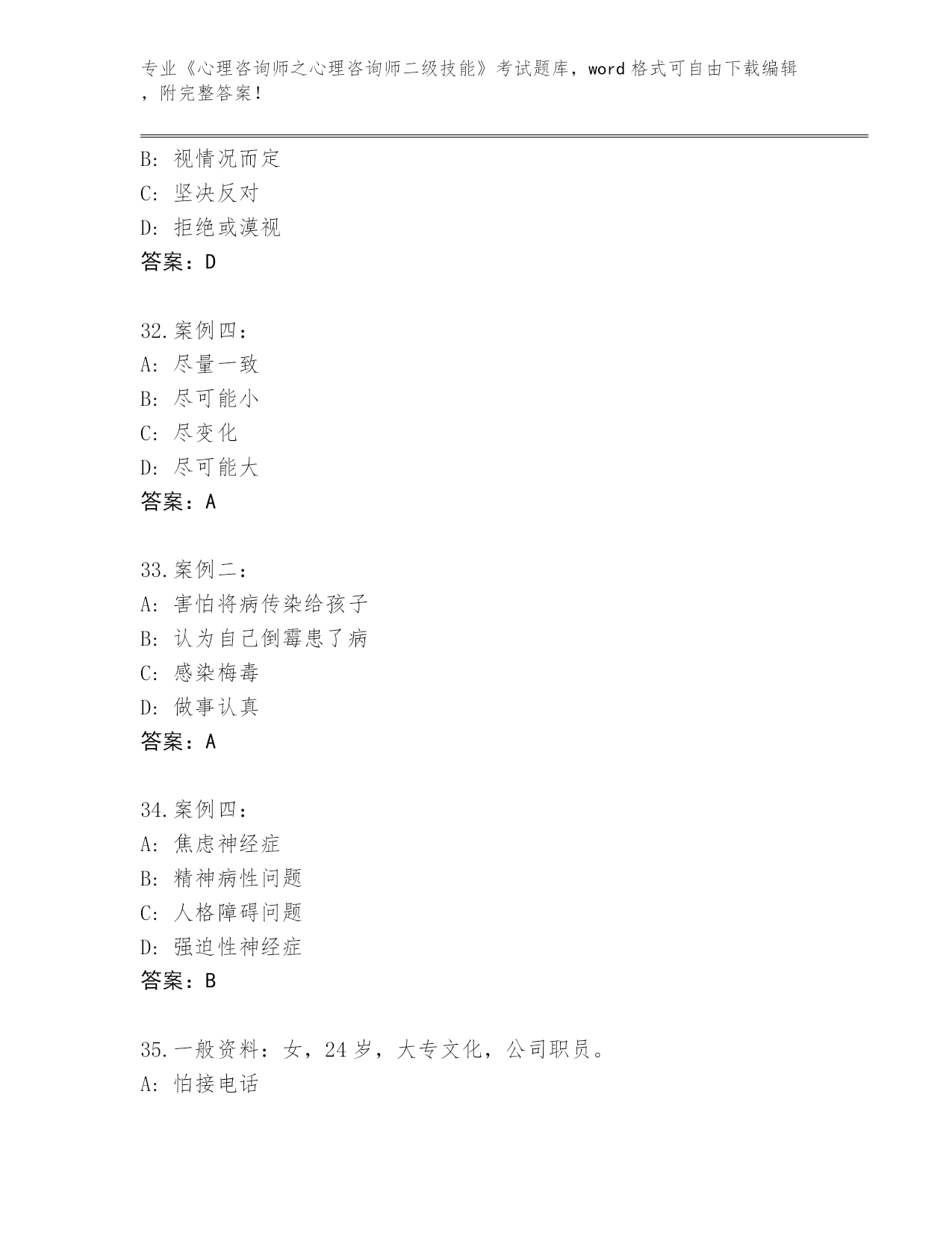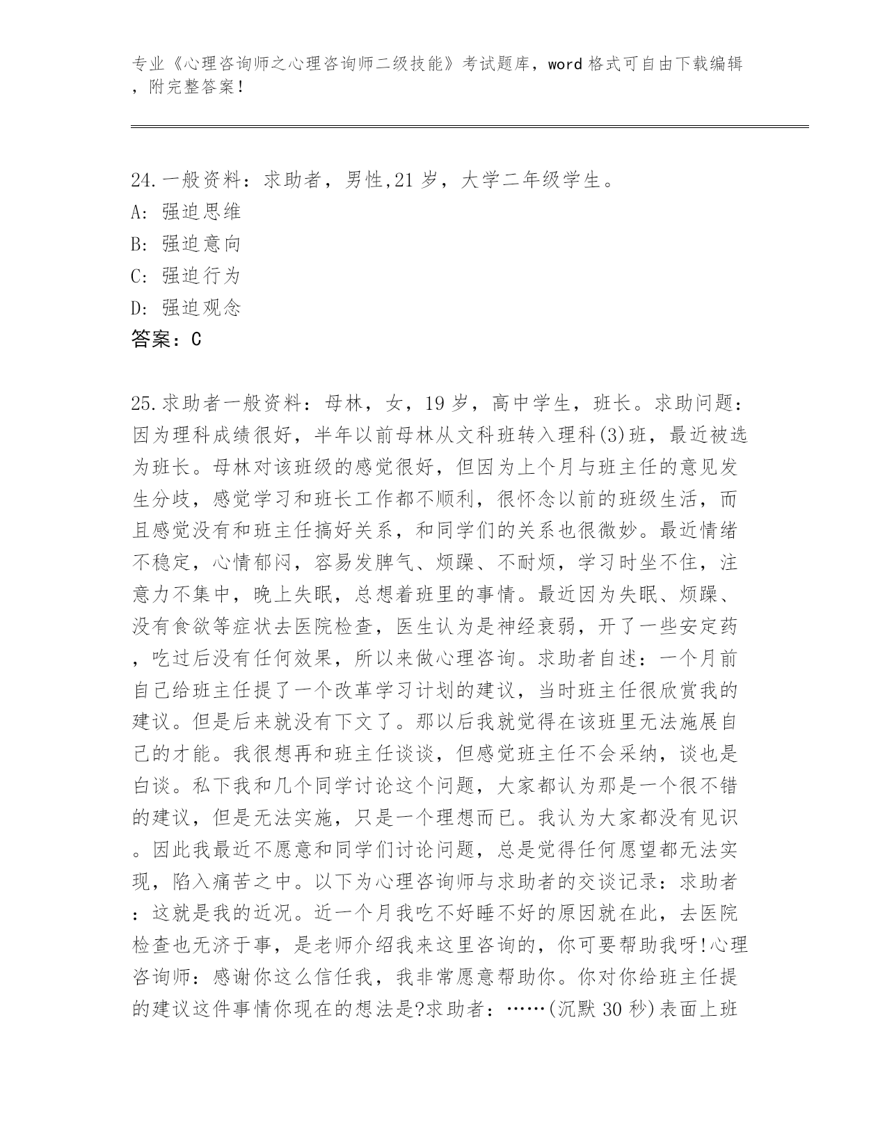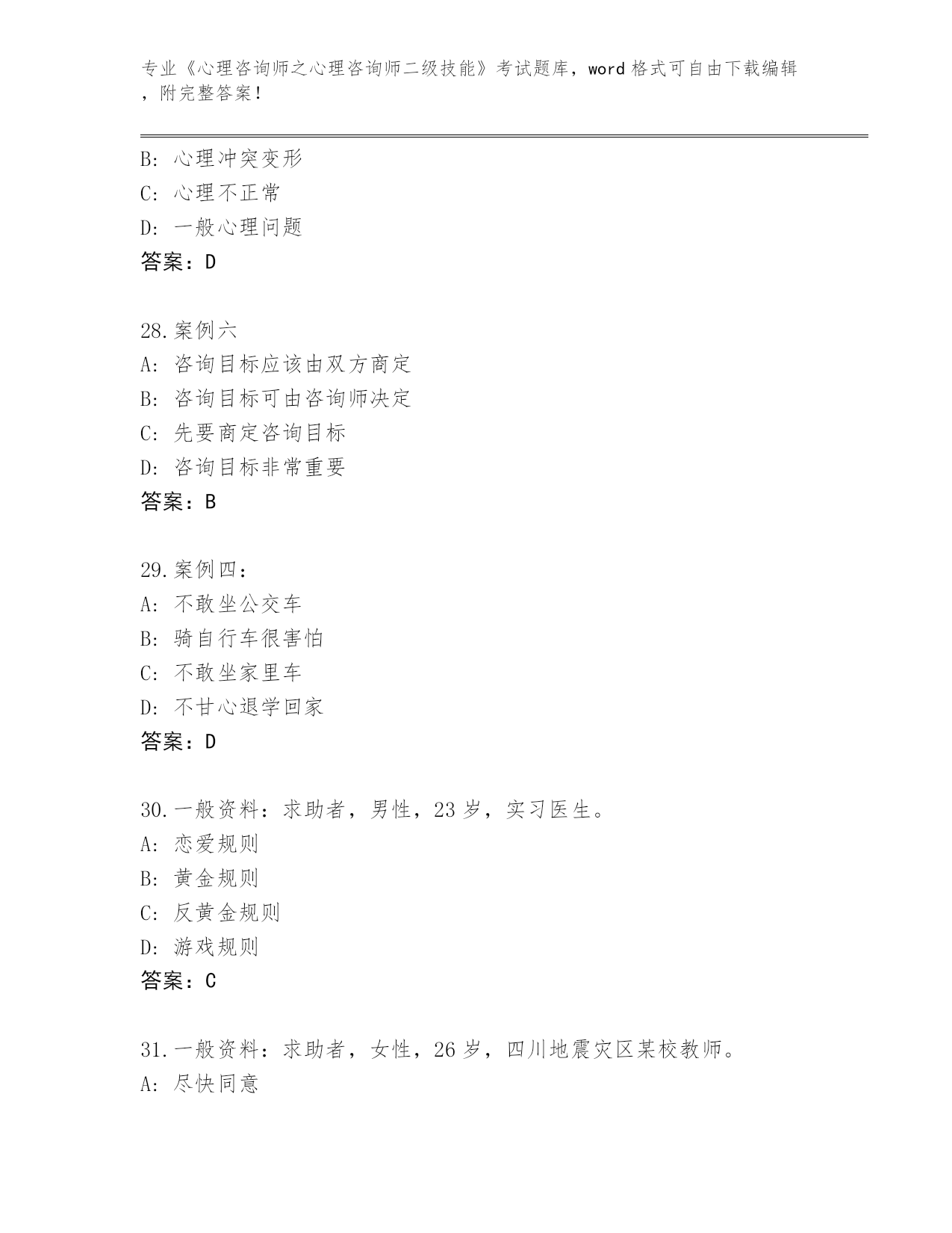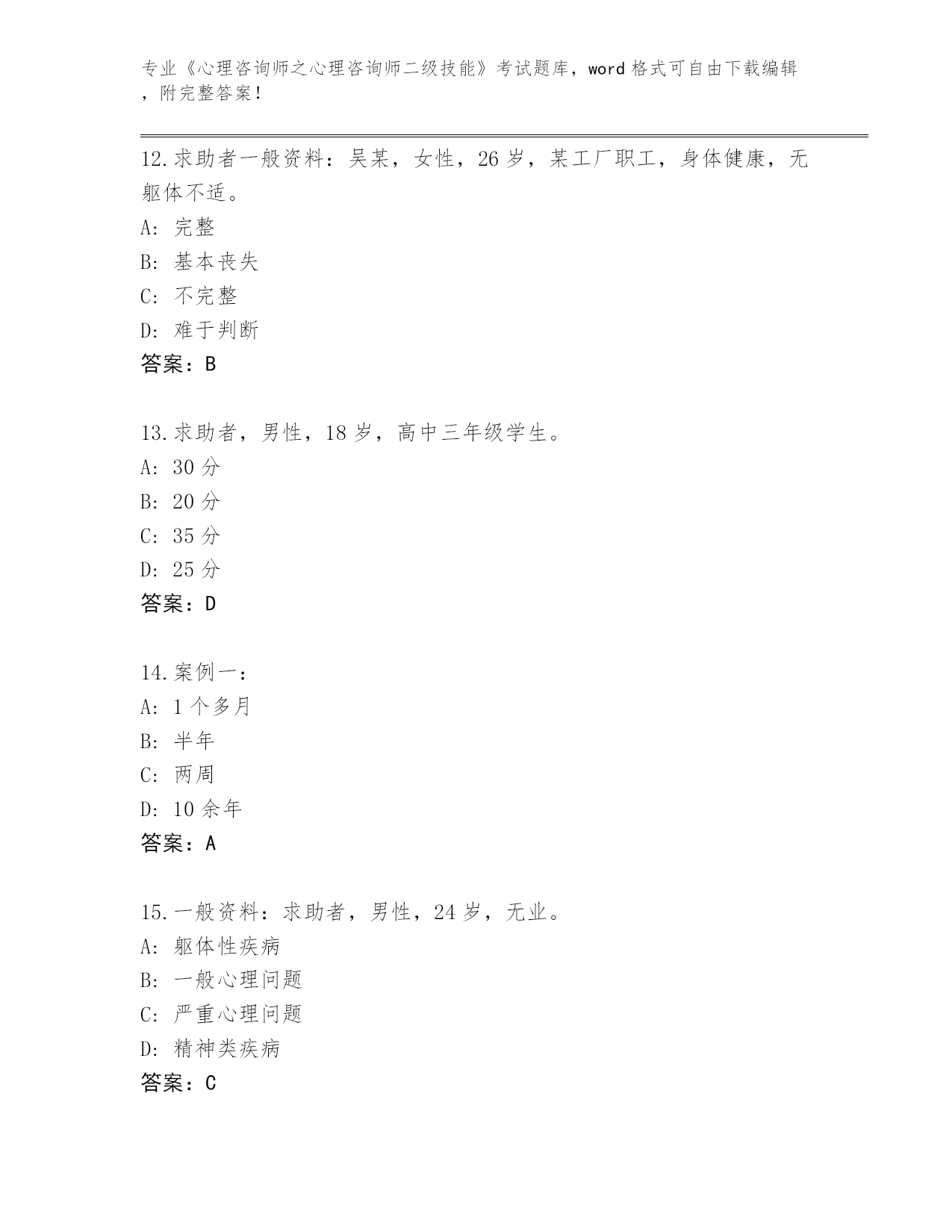 贵州省《心理咨询师之心理咨询师二级技能》考试题库带答案(综合题)