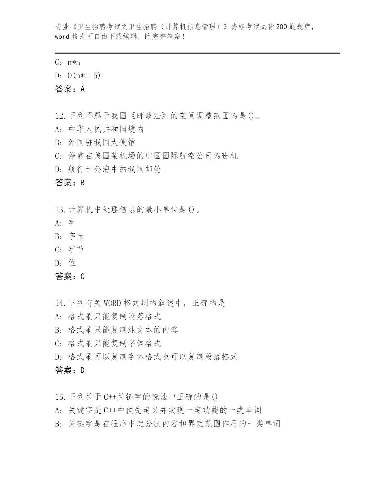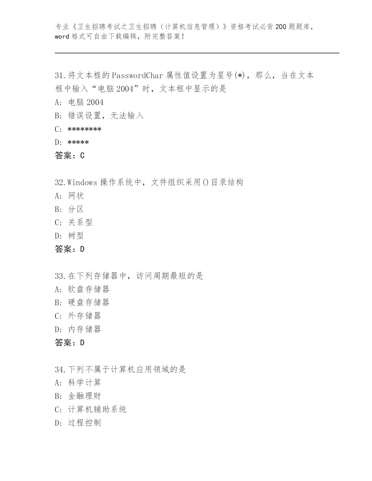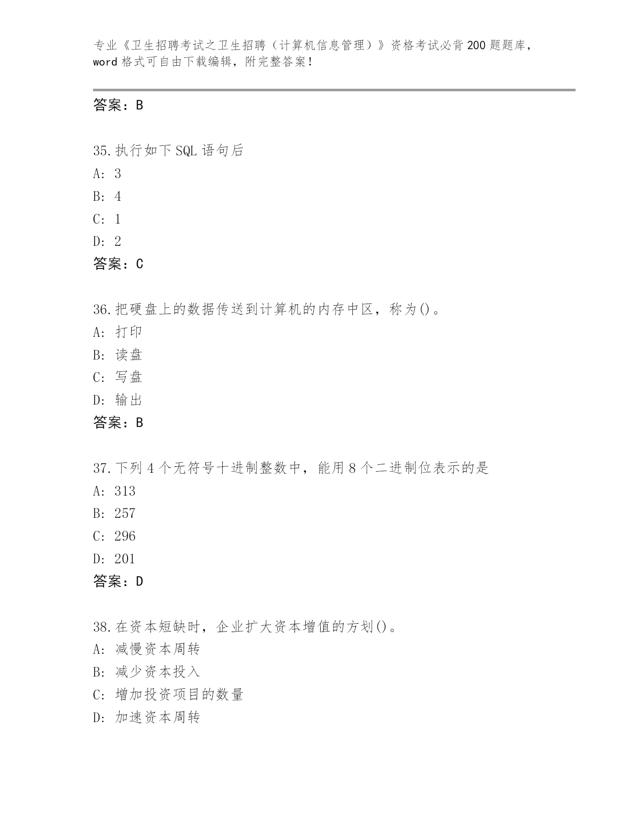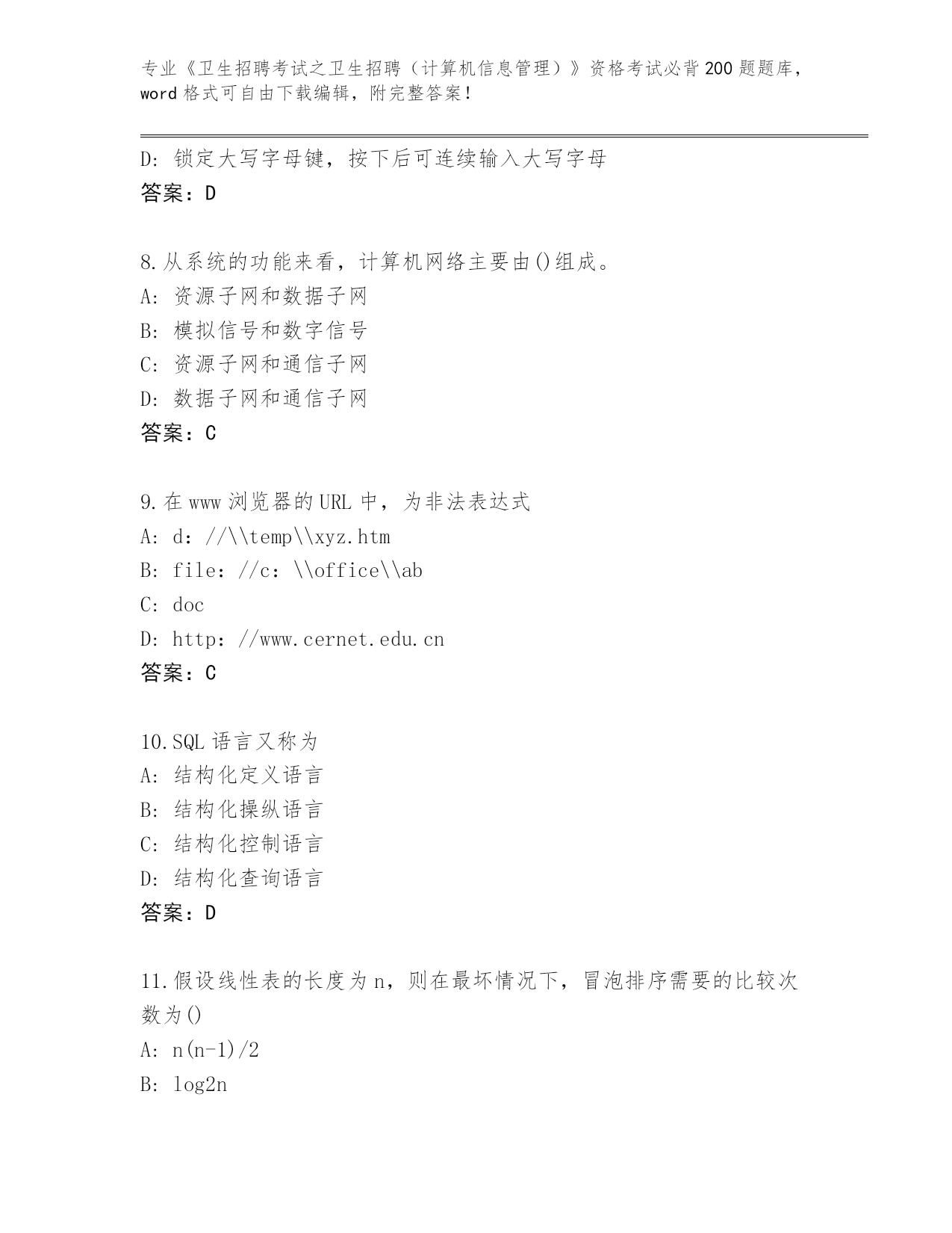 山东省栖霞市2024年《卫生招聘考试之卫生招聘(计算机信息管理)》资格考试必背200题题库含答案(最新)