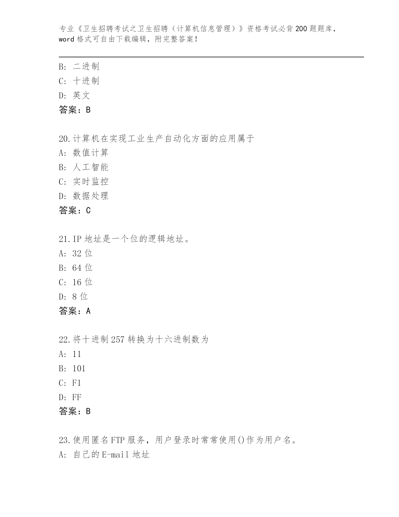 山东省淄川区《卫生招聘考试之卫生招聘(计算机信息管理)》资格考试必背200题大全(基础题)