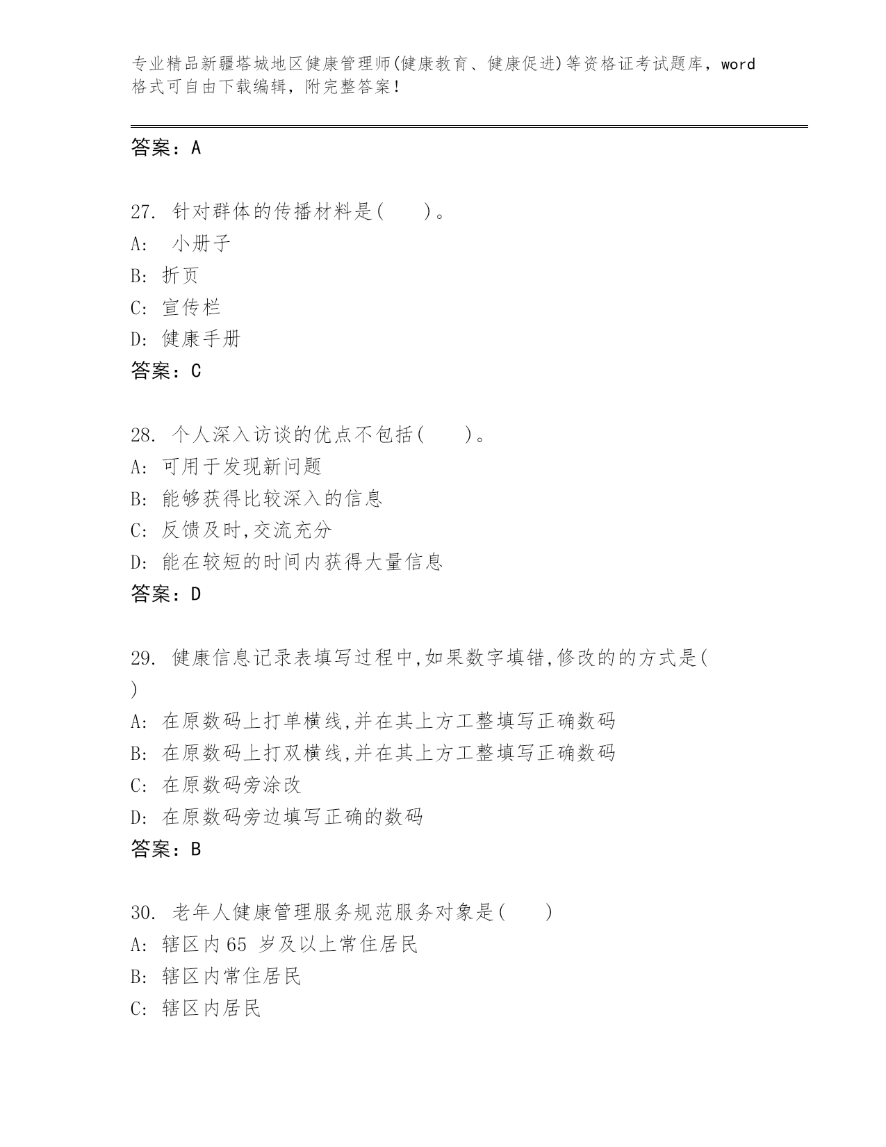 新疆塔城地区健康管理师(健康教育、健康促进)等资格证考试王牌题库精品(有一套)