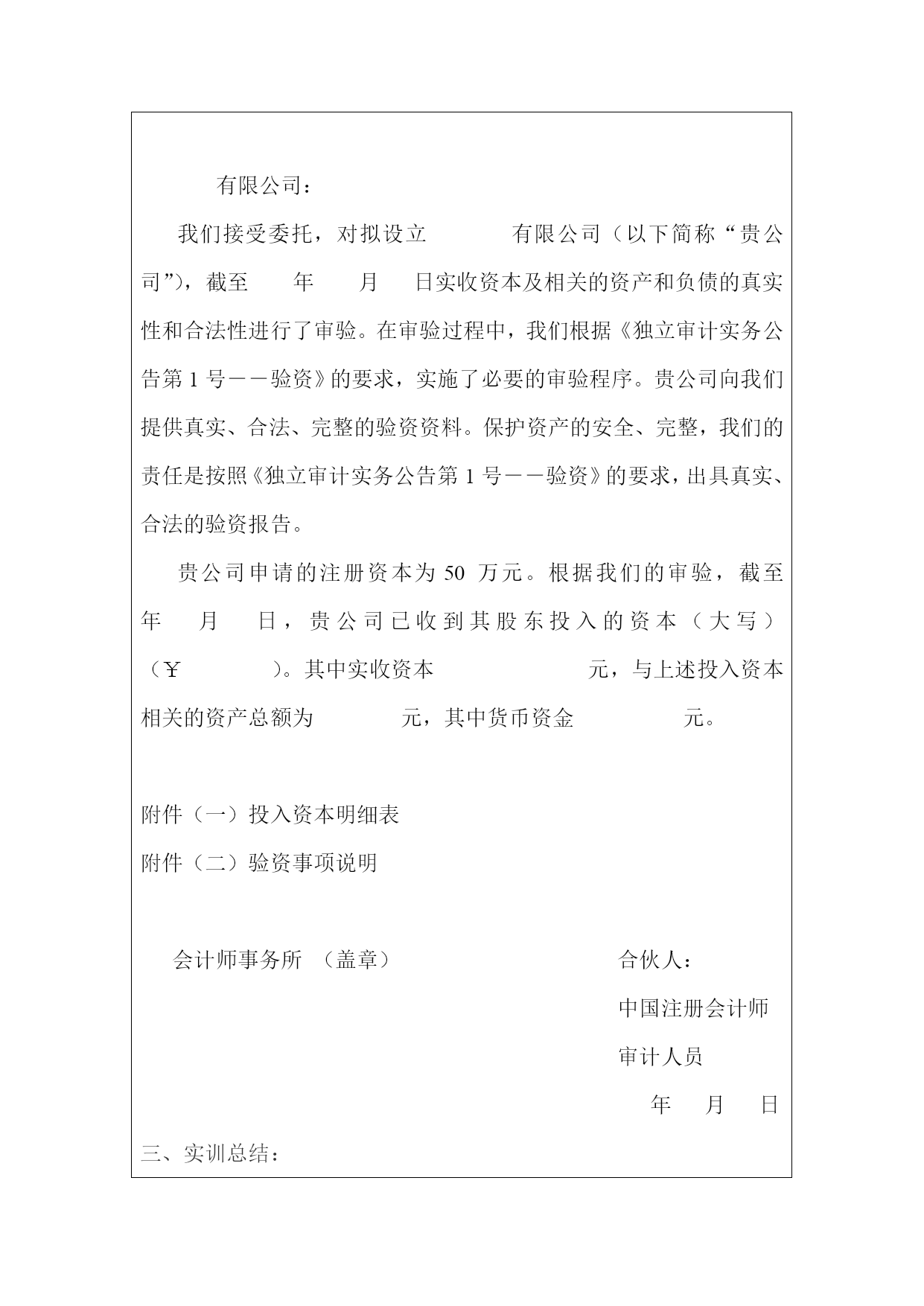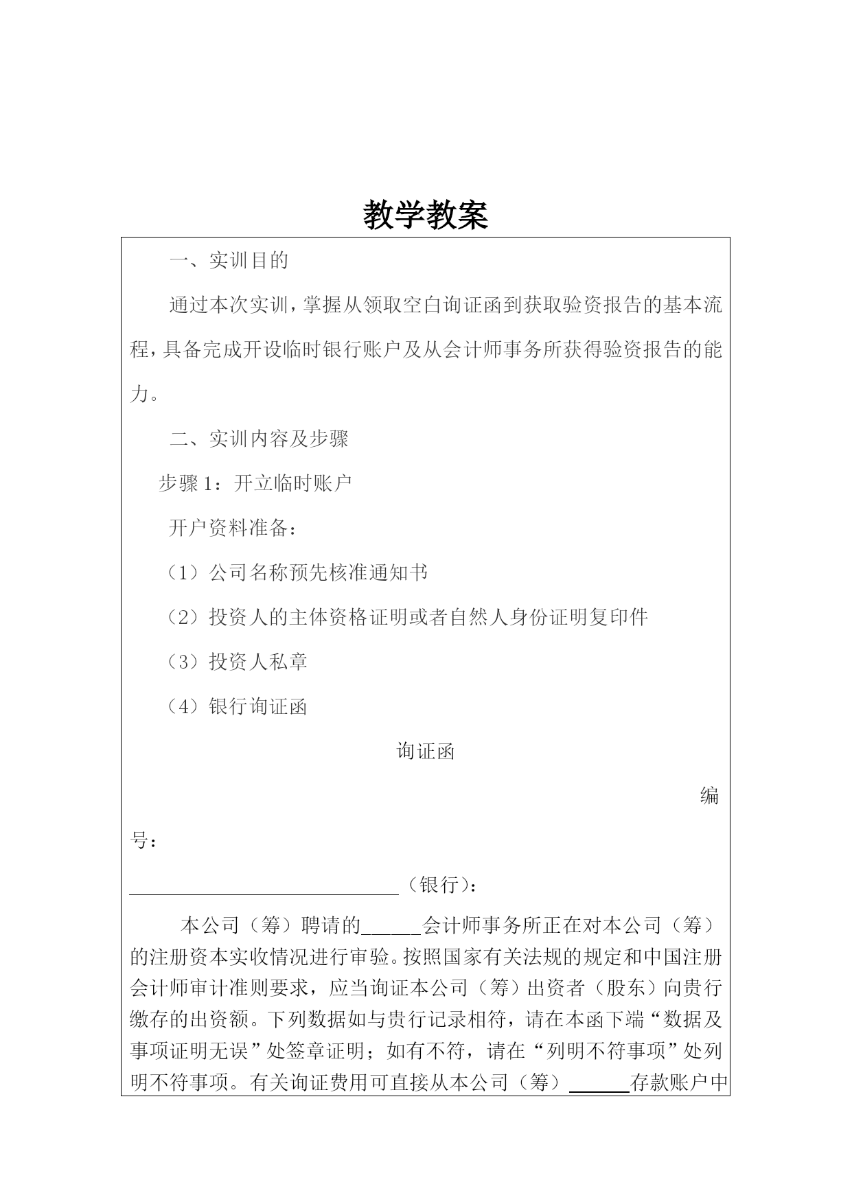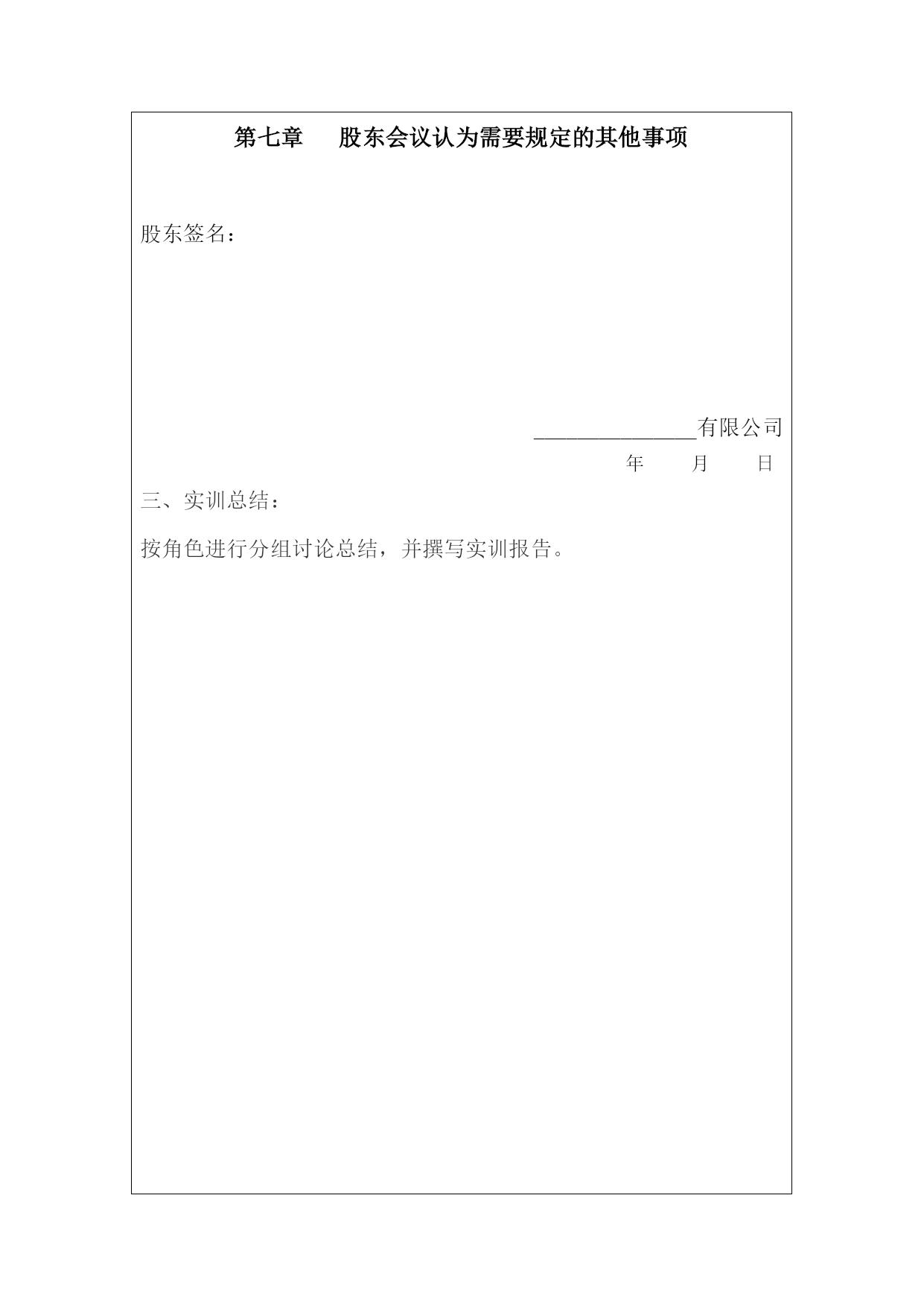 教学讲义首页课程名称企业登记注册班级09高职电一09高职电二教学时间2010年12月21日第17周星期一第1-4课时实训项目工商注册登记课型实训教学目标能力目标:具备工商登记表格填制及流程实现的能力知识目标:掌握工商注册登记的基本步骤课堂教学设计:1、教学步骤:(1)实训讲解(2)角色模拟实操(3)实训总结2、重点、难点重点:公司设立登记难点:公司设立登记3、教学方法和手段情景模拟,角色扮演,分析讨论4、参考资料《企业注册登记岗位职业技能训练》5、布置作业备注:课堂教学设计应包括:1、教学步骤;2、重点、难点;3、教学方法和手段;4、参考资料;5、布置作业教学教案一、实训目的通过本次实训,掌握工商注册登记的基本步骤,具备完成公司名称预先核准、公司设立申请等事项的能力。二、实训内容及步骤步骤1:公司名称预先核准(1)确认企业基本资料公司名称:安顺市黄果树新创公司公司地址:安顺市黄果树城南路188号公司注册资金50万元法人代表:王天一开户银行:中国工商银行安顺黄果树支行行号3703账号:583-803366税务登记号:603001112295联系电话:0853-3765606财务部门构成:经理:赵红艳会计:朱刚出纳:陈婷(2)根据企业概况填制企业名称预先核准申请书(表1.1)(3)向工商局提交预先核准申请书及代理人证明(1.2)。(4)取得企业名称预先核准通知书。(表2.1,表2.2)步骤2:公司设立登记。填制公司设立登记申请书(表3.1,3.2,3.3,3.4)有限责任公司设立登记提交材料规范:1、公司法定代表人签署的《公司设立登记申请书》;2、全体股东签署的《指定代表或者共同委托代理人的证明》(股东为自然人的由本人签字;自然人以外的股东加盖公章)及指定代表或委托代理人的身份证复印件(本人签字);应标明具体委托事项、被委托人的权限、委托期限。3、全体股东签署的公司章程(股东为自然人的由本人签字;自然人以外的股东加盖公章);4、股东的主体资格证明或者自然人身份证明复印件;股东为企业的,提交营业执照副本复印件;股东为事业法人的,提交事业法人登记证书复印件;股东人为社团法人的,提交社团法人登记证复印件;股东为民办非企业单位的,提交民办非企业单位证书复印件;股东为自然人的,提交身份证复印件。5、依法设立的验资机构出具的验资证明;6、股东首次出资是非货币财产的,提交已办理财产权转移手续的证明文件;7、董事、监事和经理的任职文件及身份证明复印件;依据《公司法》和公司章程的规定和程序,提交股东会决议、董事会决议或其他相关材料。股东会决议由股东签署(股东为自然人的由本人签字;自然人以外的股东加盖公章),董事会决议由董事签字。8、法定代表人任职文件及身份证明复印件;根据《公司法》和公司章程的规定和程序,提交股东会决议、董事会决议或其他相关材料。股东会决议由股东签署(股东为自然人的由本人签字;自然人以外的股东加盖公章),董事会决议由董事签字。9、住所使用证明;住所用途应与其规划用途相符。自有房产提交房屋产权证复印件(有关房屋未取得房屋产权证的,提交房地产管理部门的权属证明或《建筑工程规划验收合格证》、购房合同及派出所编定门牌的证明复印件);租赁房屋提交经区(县级市)国土房管局备案的租赁协议复印件。住所位于专业市场内的,提交租赁协议、市场登记证、出租方营业执照副本复印件;住所位于区(县级市)级以上政府批准设立的工业园、科技园内的,提交租赁协议复印件和园区管委会出具的场地证明文件;住所为《关于整治无证照生产经营场所若干问题的意见》(穗府办[2007]41号)第四条规定的临时生产经营场所的,还需提交所在镇政府(街道办事处)出具的《临时生产经营场所使用证明》。10、《企业名称预先核准通知书》;11、法律、行政法规和国务院决定规定设立有限责任公司必须报经批准的,提交有关的批准文件或者许可证书复印件;12、公司申请登记的经营范围中有法律、行政法规和国务院决定规定必须在登记前报经批准的项目,提交有关的批准文件或者许可证书复印件或许可证明。注:依照《公司法》、《公司登记管理条例》设立的除一人有限责任公司和国有独资公司以外的有限责任公司申请设立登记适用本规范。以上各项未注明提交复印件的,应当提交原件;提交的复印件均需持原件到登记部门核对,不能提交原件的(身份证、计生证、许可证等除外),应当注明“与原件一致”并由股东加盖公章或签字。步骤3:订立公司章程_____________有限责任公司章程第一章总则第一条依据《中华人民共和国公司法》(以下简称《公司法》及其他有关法律、行政法规的规定,由_____出资设立“______有