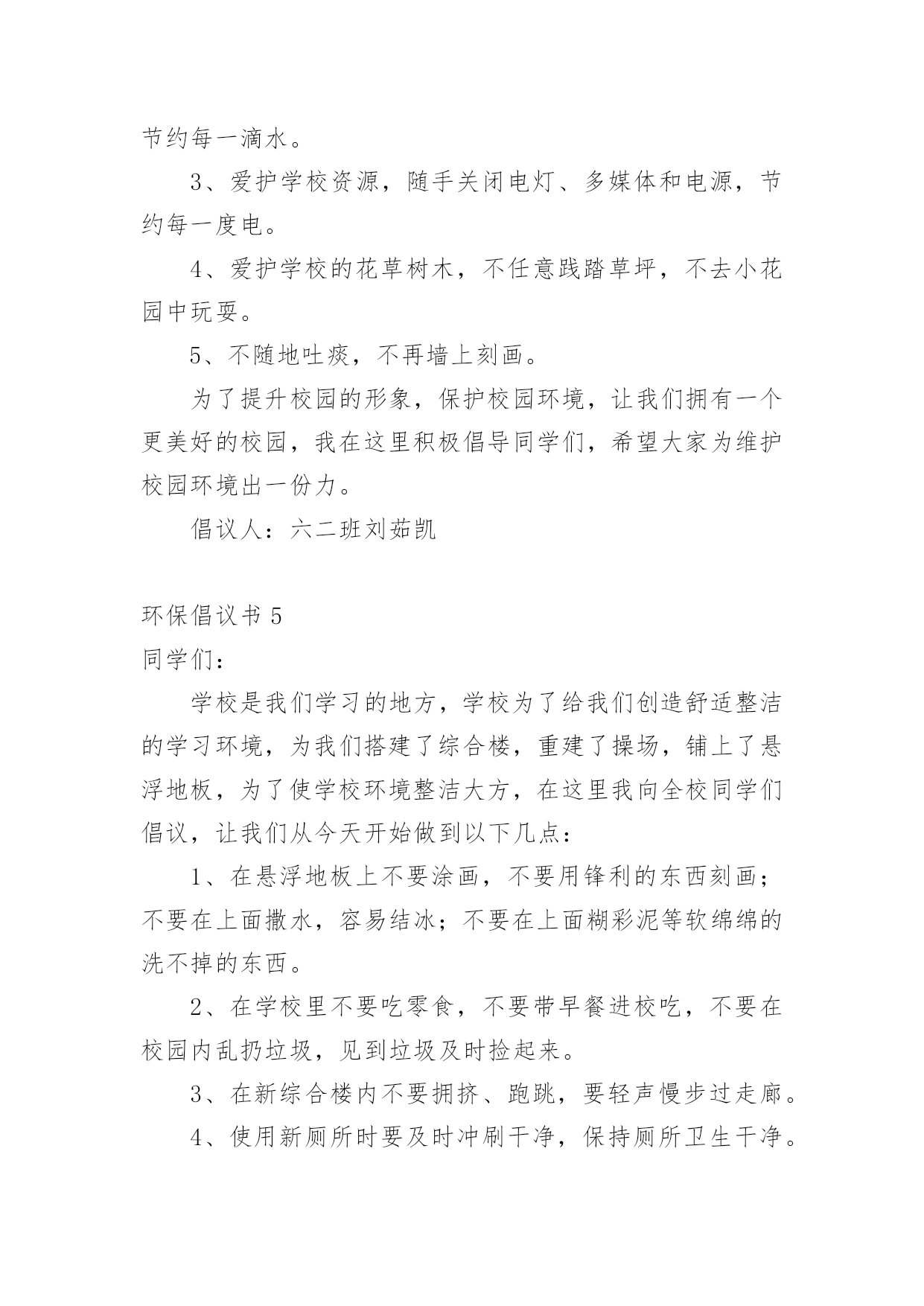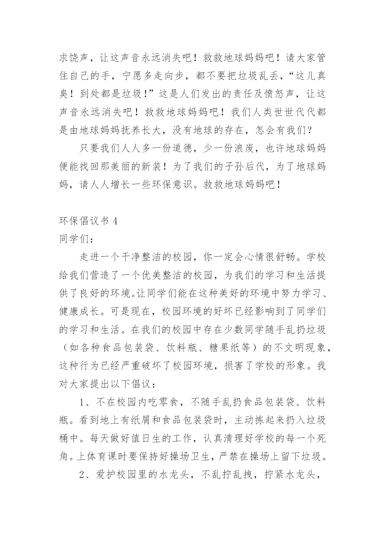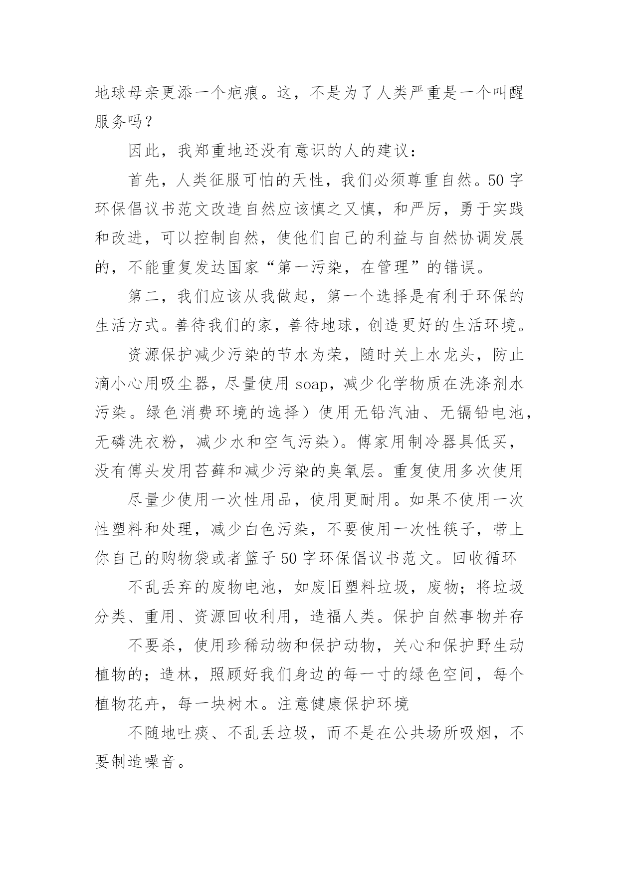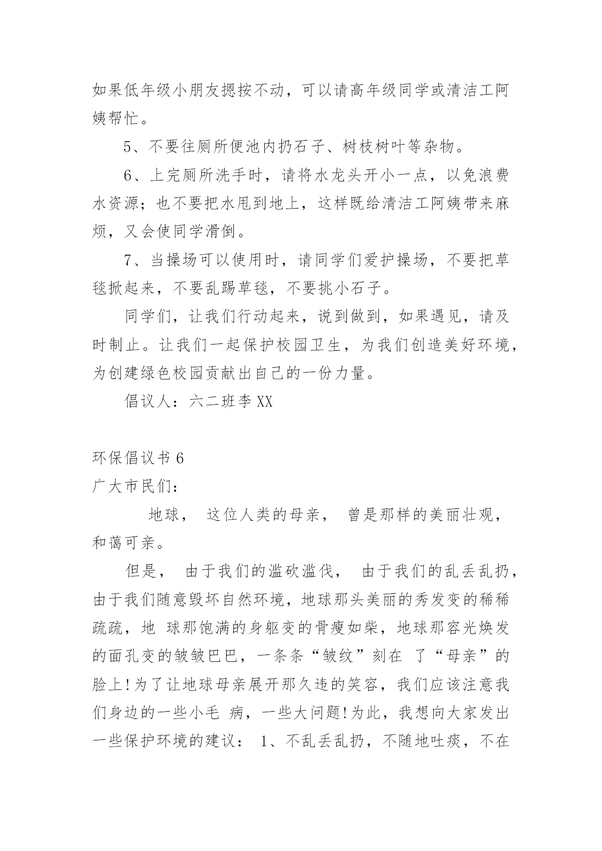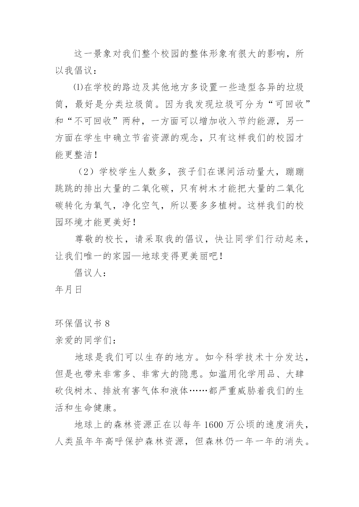 环保倡议书环保倡议书【精】随着社会一步步向前发展,越来越多地方需要用到倡议书,不同的倡议书内容同样也是不同的。还是对倡议书一筹莫展吗?以下是小编精心整理的环保倡议书,仅供参考,欢迎大家阅读。环保倡议书1各位同学,老师:大家好!我今天要演讲的题目就是《保护地球》,而保护地球的首要任务,就是保护环境。但是这样的意识,却不是我们每个人时刻都能意识到的。当我走在水泥路上,望着刺眼的太阳,再看地上的垃圾,我们人类终究还能还有多少个年月?春夏秋冬,四季都是片无生机。春天,我回老家,黄河两旁全是垃圾,牛奶盒、烟头、塑料袋、包装盒、袋、未吃完的食品等垃圾遍地都是,一眼望去犹如一个垃圾场。夏天,走路,一步一声响,满地都是雪糕袋。秋天,地上都是水果皮比如:橘子皮、香蕉皮、柿子皮……冬天大雪纷纷,地上全是小树们的“胳膊”和“手”,树上的雪全被弄得所剩无几了。看着,在此我向大家提几条倡议:1、爱护好自己身边的环境。2、为保护森林、矿产等自然资源,尽量购买使用再生材料制成的、可多次长期使用的商品;减少使用一次性纸杯、一次性木筷和餐盒等。3、不要乱扔垃圾,不随地吐痰。4、减少使用塑料袋,它是白色污染的元凶。5、自觉保护生态环境,积极参与绿化美化活动。我希望,我们大家可以认识到污染环境,会为我们的地球带来许多的害处,也会为我们人类的生活带来许多的害处。所以,让我们一起为人类的明天,大家请保护地球村吧!环保倡议书2市长xx:今天是非常发达的地球,尽管环境条件看起来很乐观,但也有非常显著的隐患,这是人类制造出来的,:肆意砍伐树木和修建一座化工厂,排放的有害液体。“对人类的威胁更大的气体,世界年度排放超过6亿吨的……估计当中去下一个世纪,地球表面有三分之一面临危险的土地荒漠化,每年6平方公里的土地荒漠化,威胁到60多个国家……“看这组尖叫号码,人类,你感觉如何?从2300万年到1800万年前出现的森林古猿直到现在人类的高度发达的文明时代,为每个人从不停下来休息,自然是“需求”,这更开发人们的贪婪。一个例子:中国的木兰流,在50年代,这是一个明确的河,但现在它已经灭绝的鱼和虾和肮脏的河流,和我们的地球母亲更添一个疤痕。这,不是为了人类严重是一个叫醒服务吗?因此,我郑重地还没有意识的人的建议:首先,人类征服可怕的天性,我们必须尊重自然。50字环保倡议书范文改造自然应该慎之又慎,和严厉,勇于实践和改进,可以控制自然,使他们自己的利益与自然协调发展的,不能重复发达国家“第一污染,在管理”的错误。第二,我们应该从我做起,第一个选择是有利于环保的生活方式。善待我们的家,善待地球,创造更好的生活环境。资源保护减少污染的节水为荣,随时关上水龙头,防止滴小心用吸尘器,尽量使用soap,减少化学物质在洗涤剂水污染。绿色消费环境的选择)使用无铅汽油、无镉铅电池,无磷洗衣粉,减少水和空气污染)。傅家用制冷器具低买,没有傅头发用苔藓和减少污染的臭氧层。重复使用多次使用尽量少使用一次性用品,使用更耐用。如果不使用一次性塑料和处理,减少白色污染,不要使用一次性筷子,带上你自己的购物袋或者篮子50字环保倡议书范文。回收循环不乱丢弃的废物电池,如废旧塑料垃圾,废物;将垃圾分类、重用、资源回收利用,造福人类。保护自然事物并存不要杀,使用珍稀动物和保护动物,关心和保护野生动植物的;造林,照顾好我们身边的每一寸的绿色空间,每个植物花卉,每一块树木。注意健康保护环境不随地吐痰、不乱丢垃圾,而不是在公共场所吸烟,不要制造噪音。作为新时代的小学生,我提倡学生门来提高环保意识,还暗示的叔叔阿姨们加入我们的团队,为保护环境,造福子孙后代的贡献力量。因为:保护环境,拖延!倡议人:xxx20xx年x月x日环保倡议书3地球妈妈不仅给了我们人类宝贵的森林资源,还给人类带来了很多可爱的朋友——动物,而且还献给了人类宇宙上最美的风景,还给予了人类……地球妈妈为了我们付出了许多许多,可是——我们人类已享尽了福,开始无止禁地破坏这美丽的一切,地球妈妈已经不漂亮了,它那湛蓝而洁白的衣装变色了,地球妈妈正危在旦夕,它生病了!救救地球妈妈吧!救救地球妈妈吧!伐木工人们,请手下留情,我们宁愿不用牙签、火柴、一次性筷子……都请求你们不要砍伐树木,“哎哟喂!”这是小树的呻吟声,让这声音永远消失吧!救救地球妈妈吧!请制造垃圾袋的叔叔、阿姨们停止生产吧,我们宁愿不用垃圾袋改为用环保袋,都请求你们不要再制造垃圾袋来污染环境,让那清澈的水变色令人厌弃,“真脏!”这是人们的责备与厌弃声,让这声音永远消失吧!救救地球妈妈吧!请屠杀小动物的屠手们大发慈悲,我们宁愿不吃肉只吃面制品(“人造肉”),都请你们不要再屠杀那些可爱的小动物了,“放了我吧!”这是小动物的求饶声,让这声音永远消失吧!救救地球妈妈吧!请大家管住自己的手,宁愿多走向步,都不要把垃圾乱
