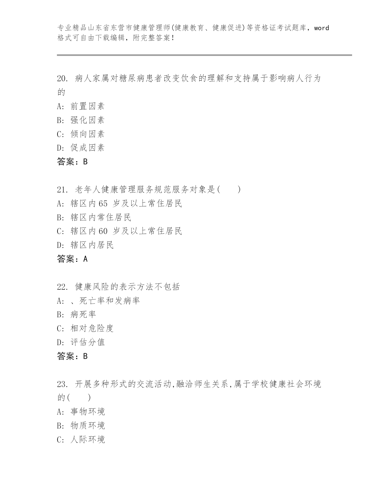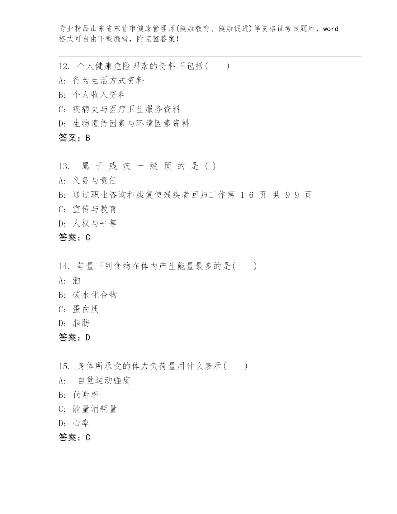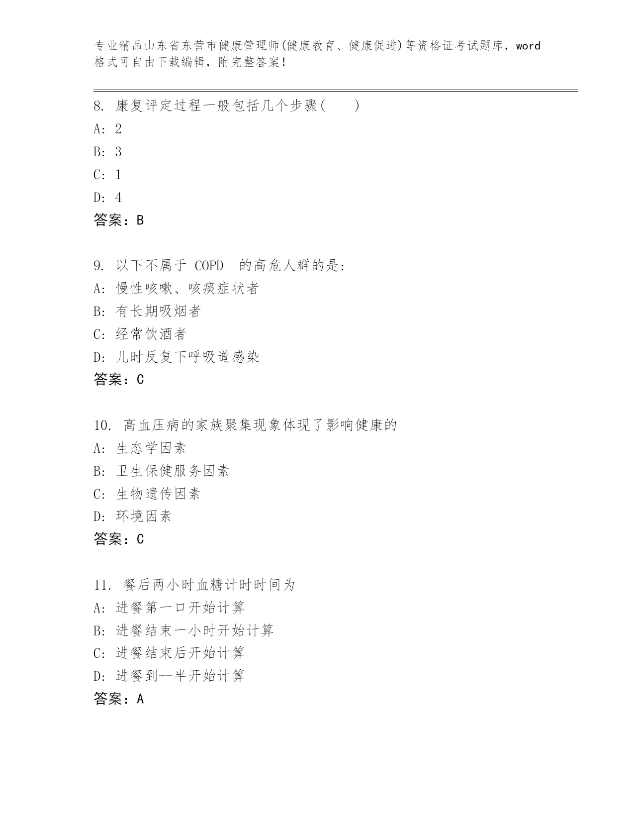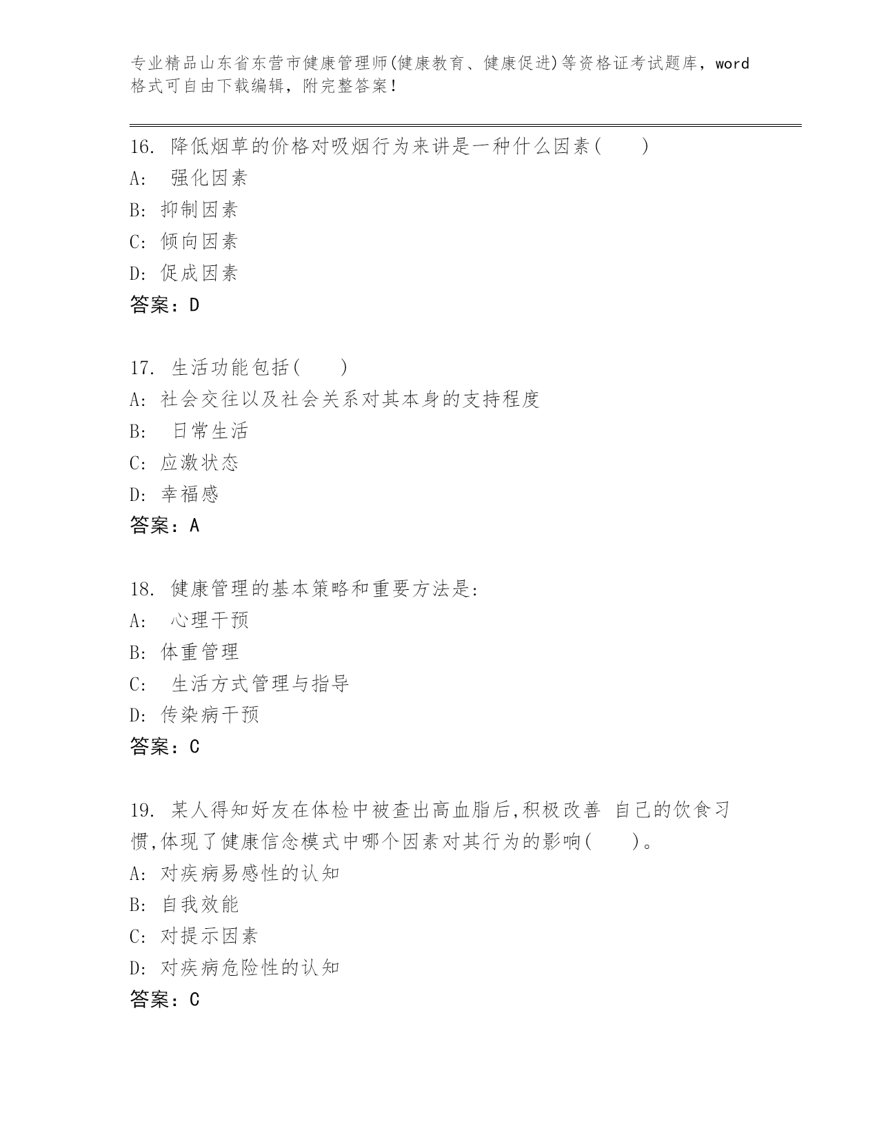 精品山东省东营市健康管理师(健康教育、健康促进)等资格证考试大全【夺冠】
