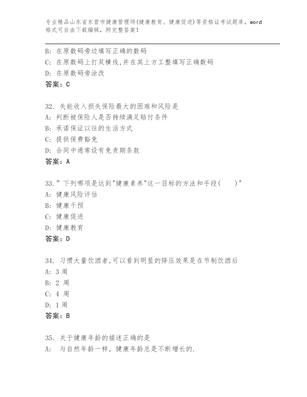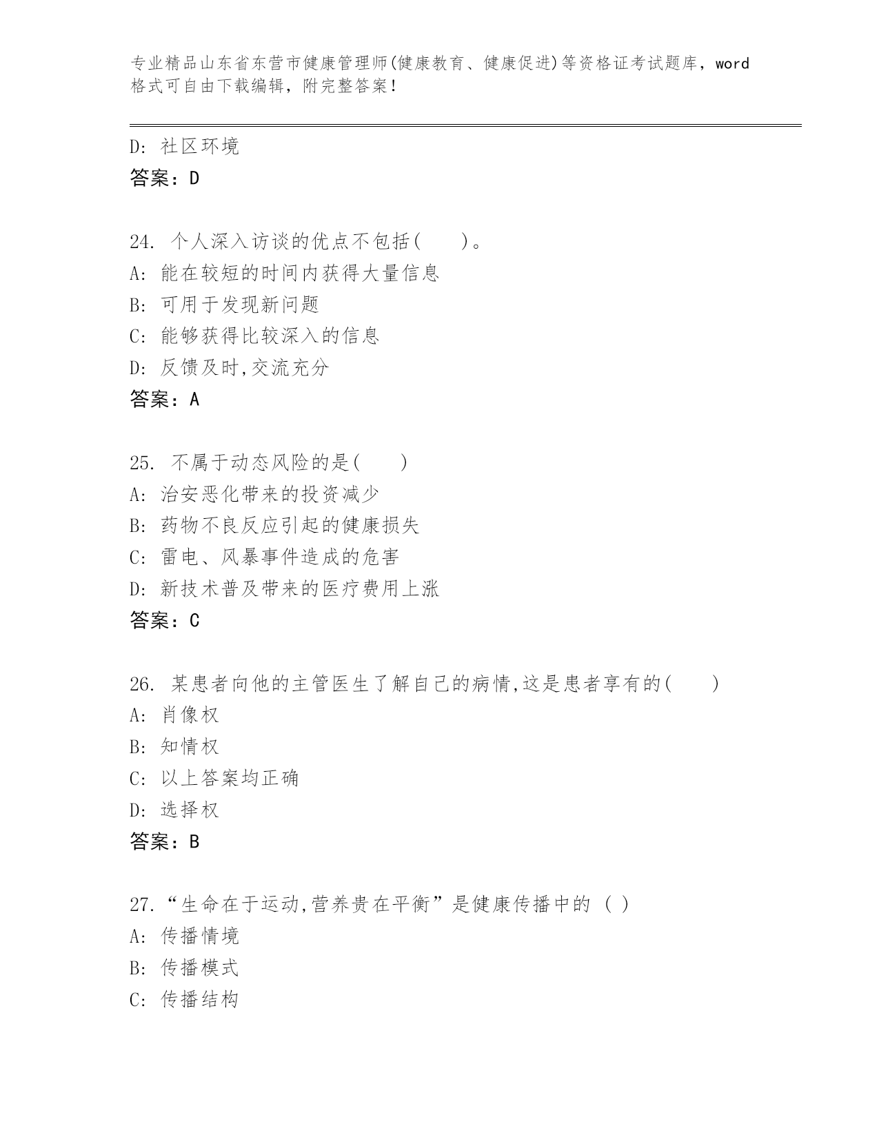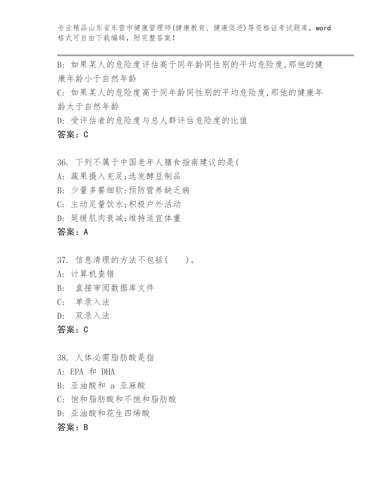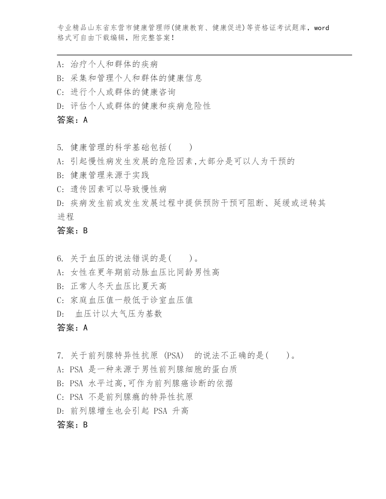精品山东省东营市健康管理师(健康教育、健康促进)等资格证考试大全【夺冠】