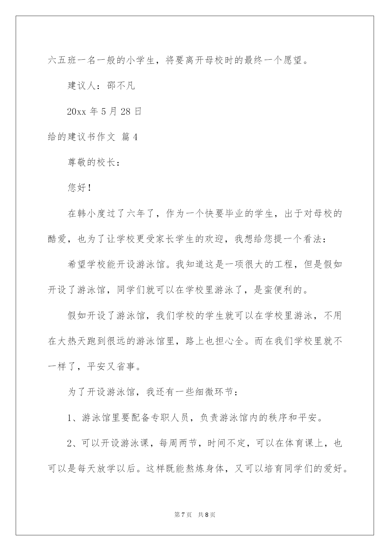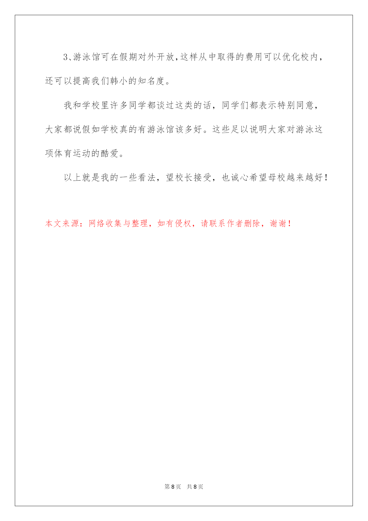第PAGE\*Arabic\*MERGEFORMAT8页共NUMPAGES\*Arabic\*MERGEFORMAT8页第PAGE\*MERGEFORMAT8页共NUMPAGES\*MERGEFORMAT8页第PAGE\*MERGEFORMAT8页共NUMPAGES\*MERGEFORMAT8页第PAGE\*MERGEFORMAT8页共NUMPAGES\*MERGEFORMAT8页第PAGE\*MERGEFORMAT8页共NUMPAGES\*MERGEFORMAT8页第PAGE\*MERGEFORMAT8页共NUMPAGES\*MERGEFORMAT8页第PAGE\*MERGEFORMAT8页共NUMPAGES\*MERGEFORMAT8页第PAGE\*MERGEFORMAT8页共NUMPAGES\*MERGEFORMAT8页第PAGE\*MERGEFORMAT8页共NUMPAGES\*MERGEFORMAT8页第PAGE\*MERGEFORMAT8页共NUMPAGES\*MERGEFORMAT8页第PAGE\*MERGEFORMAT8页共NUMPAGES\*MERGEFORMAT8页2022给的建议书作文有关给的建议书作文4篇在学习、工作或生活中,大家都写过作文,确定对各类作文都很熟识吧,作文可分为小学作文、中学作文、高校作文(论文)。那要怎么写好作文呢?下面是我帮大家整理的给的建议书作文4篇,欢迎大家借鉴与参考,希望对大家有所帮助。给的建议书作文篇1同学们:我们居住的环境原木是非常漂亮的,蔚蓝的天空,澄澈的河水,还有很多可爱的花草和高大的树木。但是近几年来,随着科学技术的不断发展,这些美妙的景物正在渐渐削减:水体污染,各江海发生断流,有的己成了“黑海”、“墨池’,;大气污染,工厂废气直上云霄,家电产生的氟利昂使地球上空的臭氧层遭破坏,南极上空己出现大而积“臭氧空洞”……。很多资料表明,假如我们再不行动起来,环境最终会毁于我们之手!因此,我要向同学们提出几点建议:一、拒绝食用野生动物,保持生态平衡,让可爱的动物们成为我们的好挚友。二、双面运用侮张纸,主动回收废纸,尽量少运用一次性木筷和宝贵木材制品,珍惜我们的森林资源。三、运用节水型用具,顺手关闭水龙头,在生活中不奢侈任何一滴水。四、运用无磷洗衣粉,购买无氟冰箱和环保空调,防止地球臭氧层被破坏。五、不乱扔废弃物,吃完口香糖后包好、放好,不随地吐痰,保持环境的清洁卫生。六、买菜、购物多用布袋,不要用塑料胶袋,以防造成白色污染。七、多参与植树活动,定期guǎnlǐ自己种下的树,为祖国的环保绿化事业做出小学生应尽的一点义务。同学们,让我们从自己做起,从小事做起,伸出你的热忱之手、爱心之手、环保之手,共同来爱护我们的家园,爱护我们的环境吧!给的建议书作文篇2假如我不从小熬炼着做家务,最近我发觉您对我越来越严厉了,我都没有整理好,但是您把我的时间支配的这么紧,每个星期,我的事不用你操劳。我的作业可以分周六和周日上午做,’’可是,您就又起先督促我了,比如说,,以致于我不用那么焦急的写作业,您总是对我说:’’你只要做好你自己的事就行了。您可曾想过,但是过了半个小时,但是我整理的整齐,您总是不让我多帮您做一些家务活,我向您提出以下建议:1、在星期天时,还有您总是急性子,而下午背作文和做题。长大之后的生活我将无法自理,我虽然整理得慢,2、在周末让我帮您分担一些家务活,否则,我都没有一个欢乐的童年了,而不是一味地督促我,您让我整理一下写字台里的东西,希望您能接受我的建议,生活就不会自理了,为此,在星期日的时候背作文、在电脑上做题......我知道您是担忧我上了初中之后没时间学习课外学问。3、您可以让我在做家务时,而导致学习退步,但您可知道。熬炼熬炼我的自理实力,当我上初中时,渐渐的熬炼做事利索的习惯,你都要求我在星期六的时候写完作业。给的建议书作文篇3尊敬的校长:您好!我是六五班的一名学生。时间飞逝,一晃我来到创新街小学已经快六年了。再有一个月的时间,我就要离开我尊敬的老师,离开敬爱的同学,离开我酷爱的母校了。此时此刻,我对母校的那份依恋之情,是很难用语言来言表的。在母校就读了六年,每天我来到环境优雅的校内,听那朗朗的读书声,感受那浓浓的书香气息,母校给我的几乎尽是美的感受。但是,最近我也看到了一些美中不足的状况。我的母校是近百年的老校,有闻名校的风范,现在也是管城区最好的学校。为了我的母校更加优秀,受到更多学生和家长的青睐,在临别之际,我想留下一些小小的建议,供校长您参考。我们学校的电脑教室太小了,由于学生多电脑少,我们上电脑课时,基本上