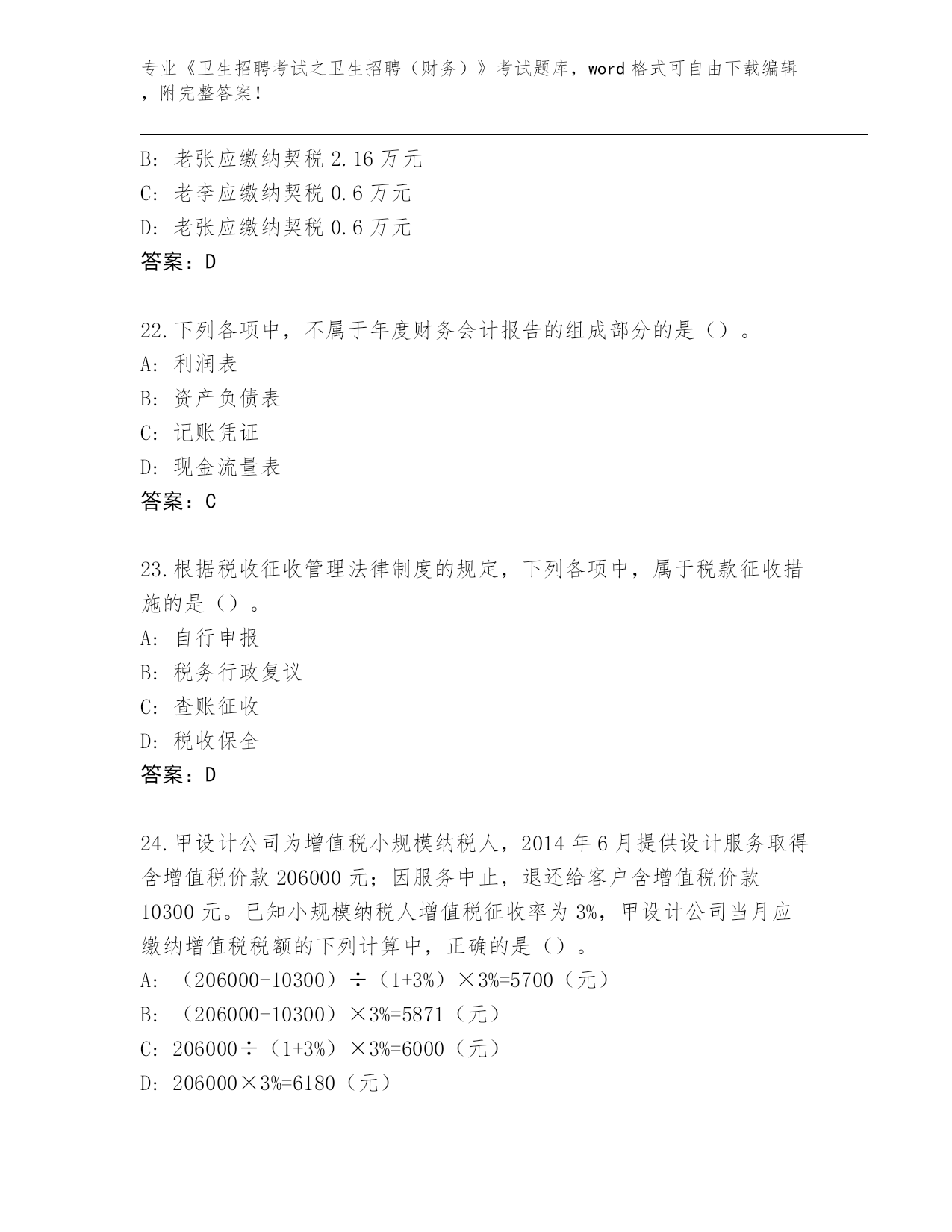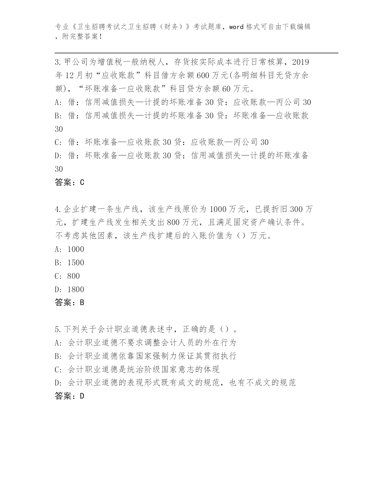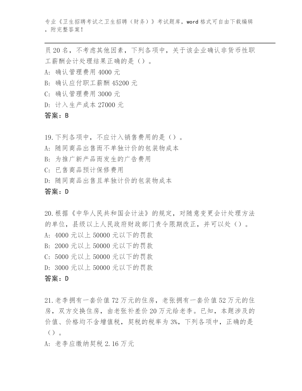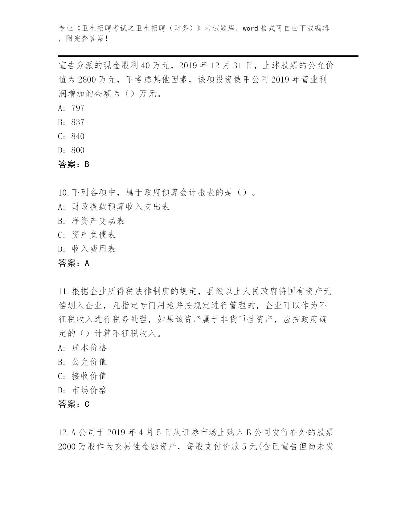 河北省河间市整理《卫生招聘考试之卫生招聘(财务)》考试大全(名师推荐)