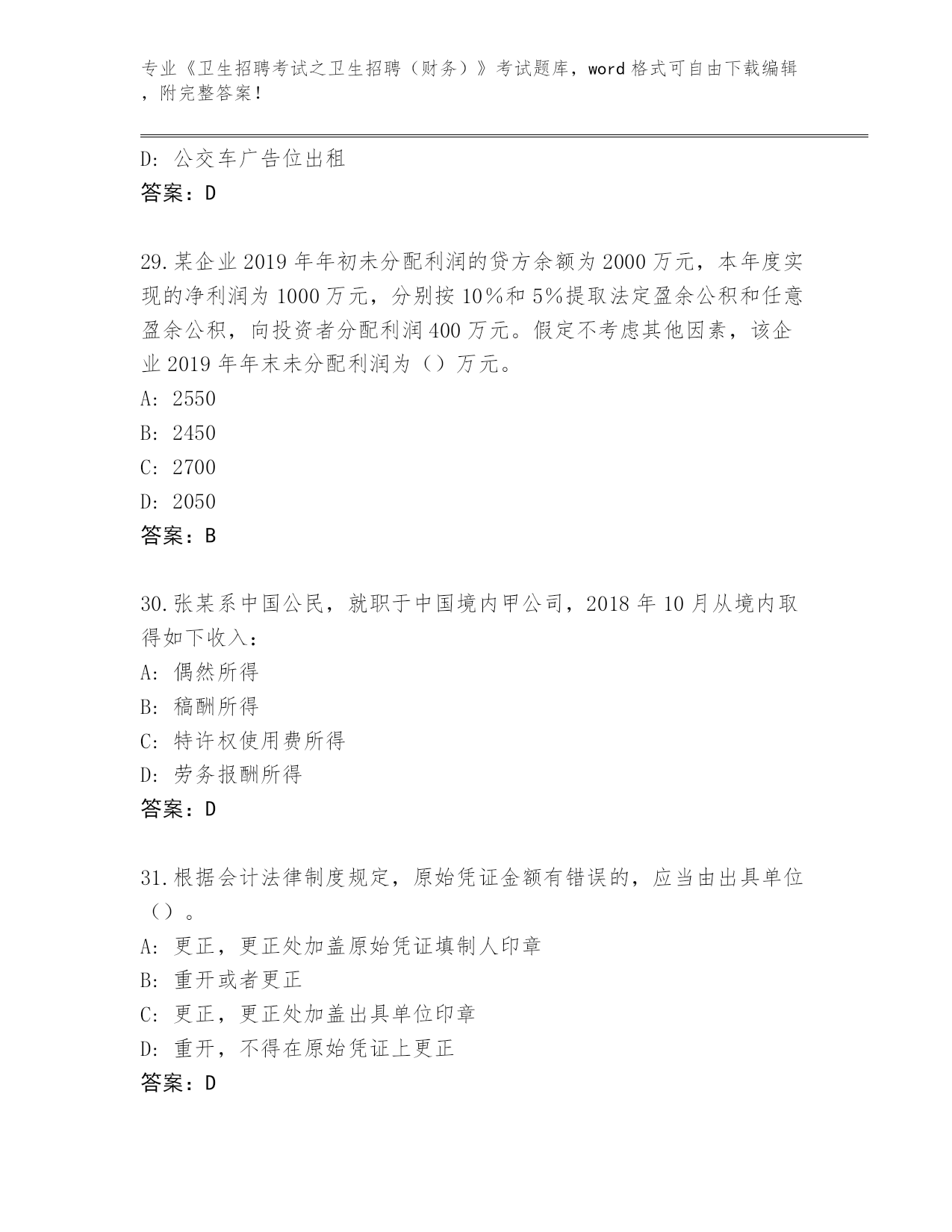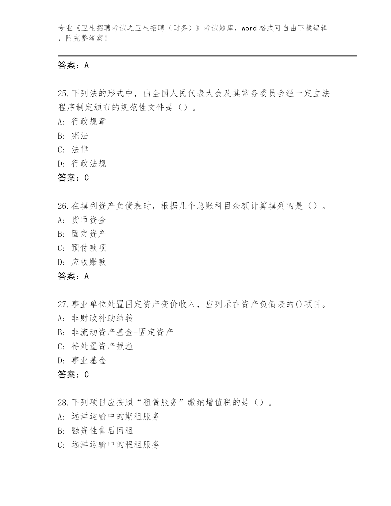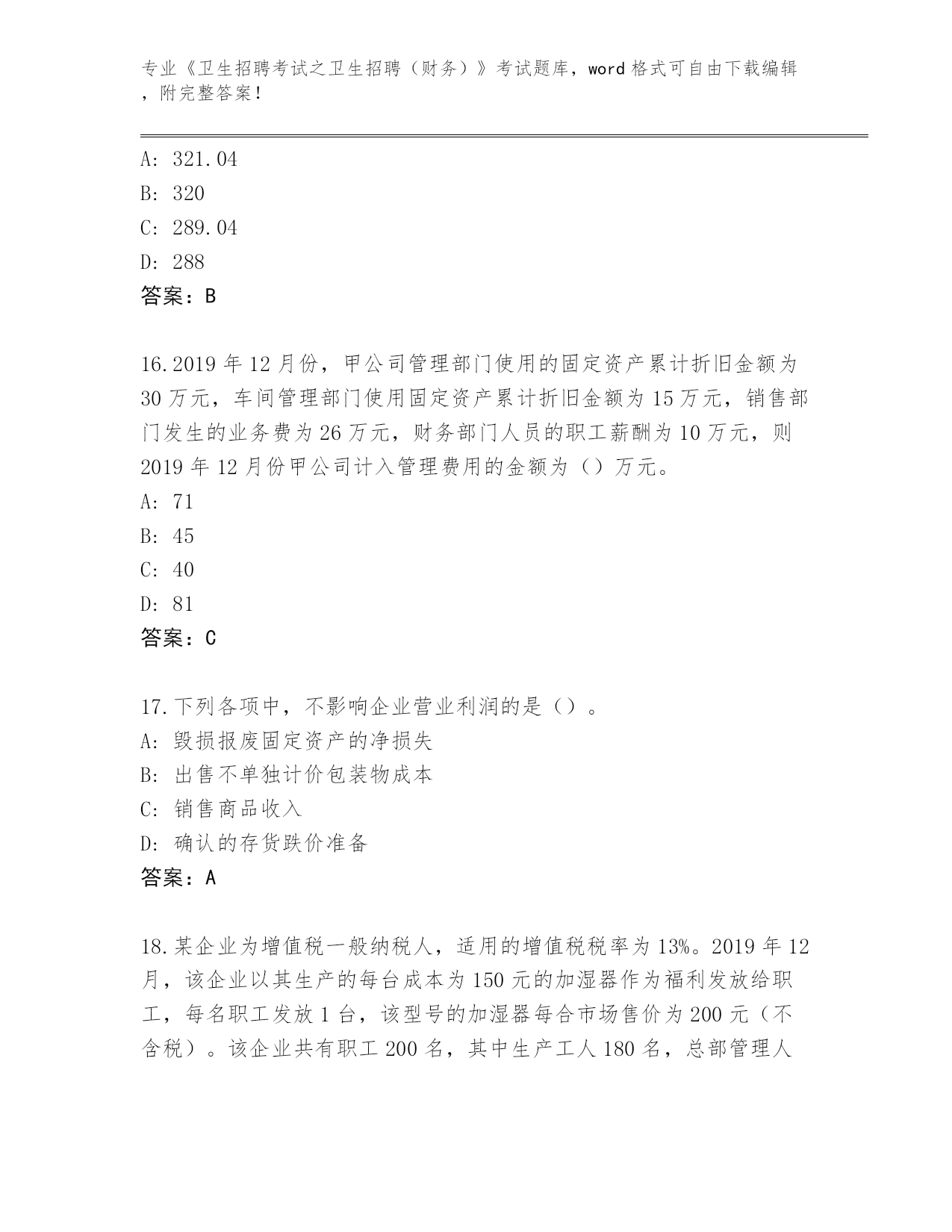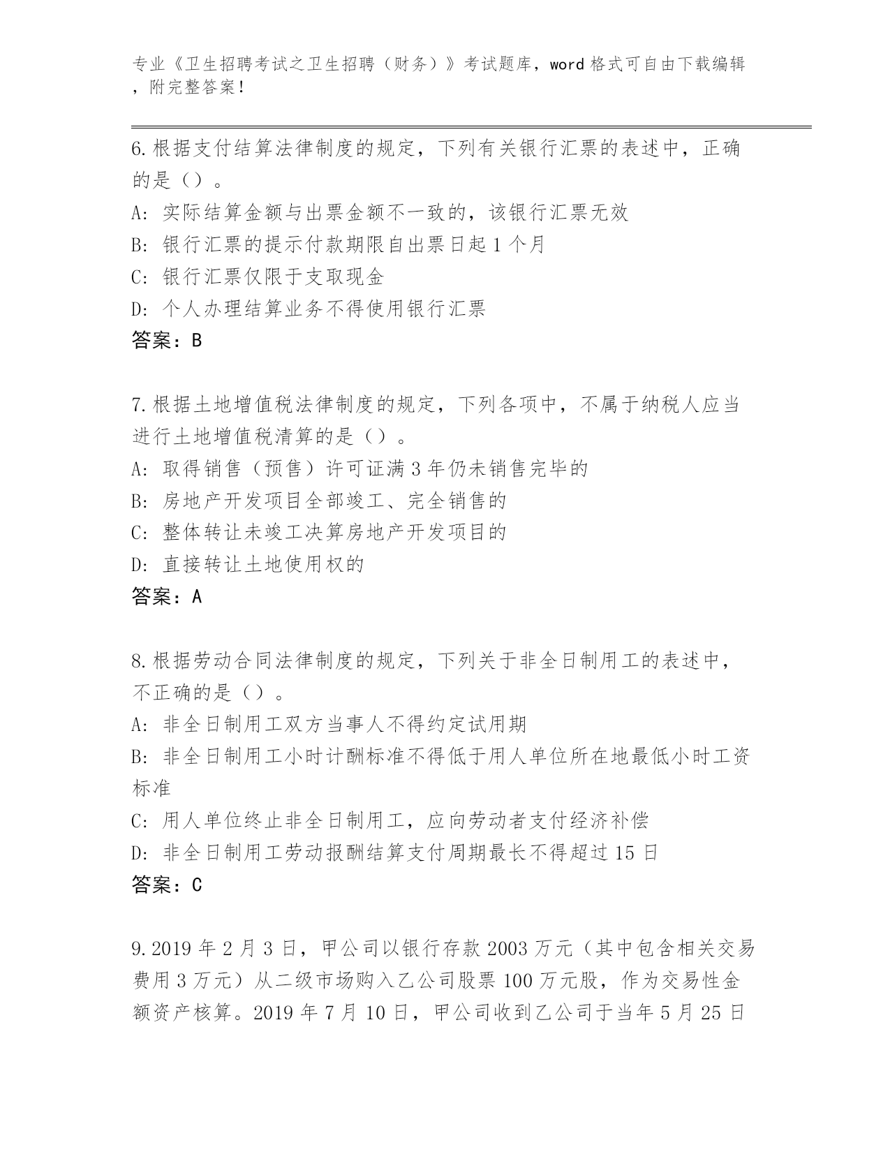 河北省河间市整理《卫生招聘考试之卫生招聘(财务)》考试大全(名师推荐)