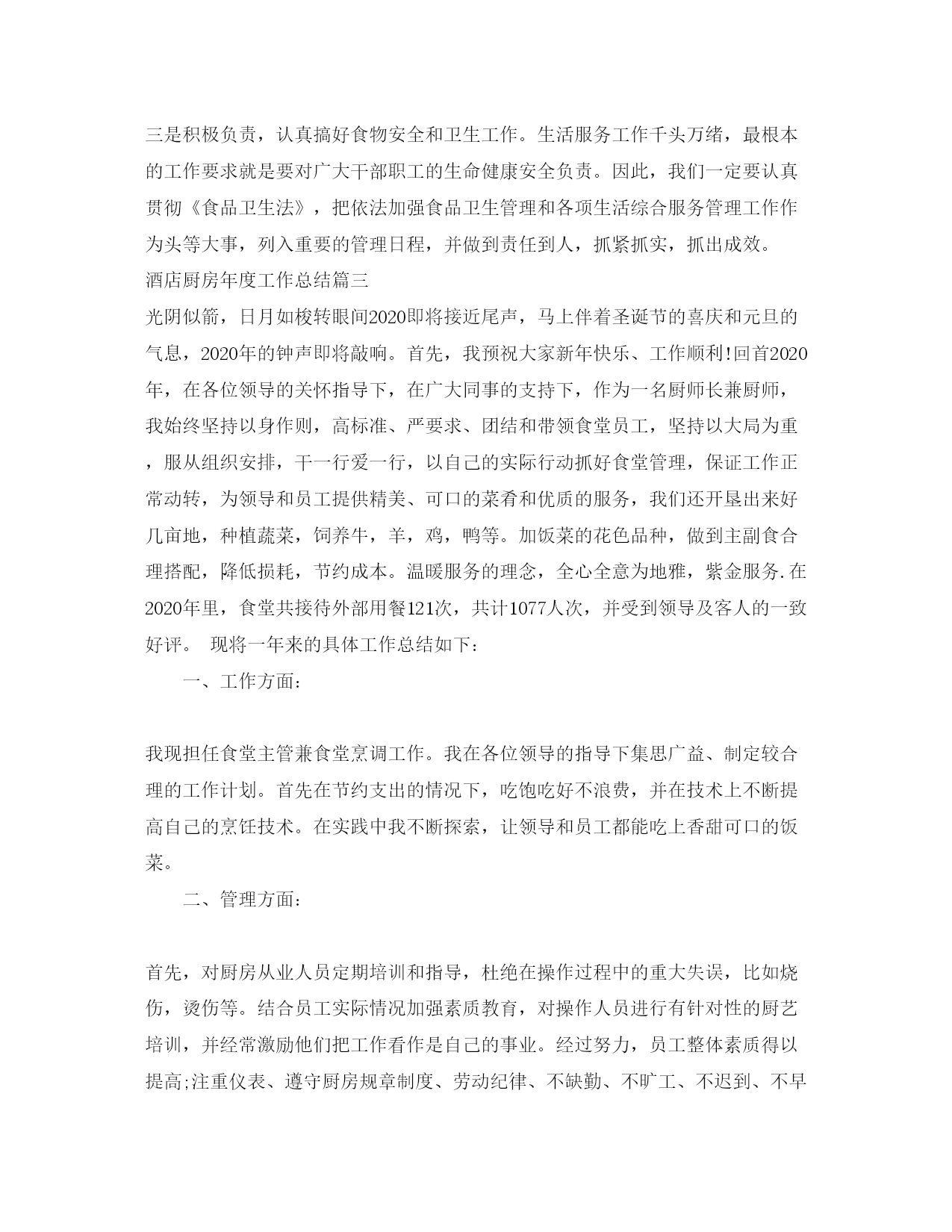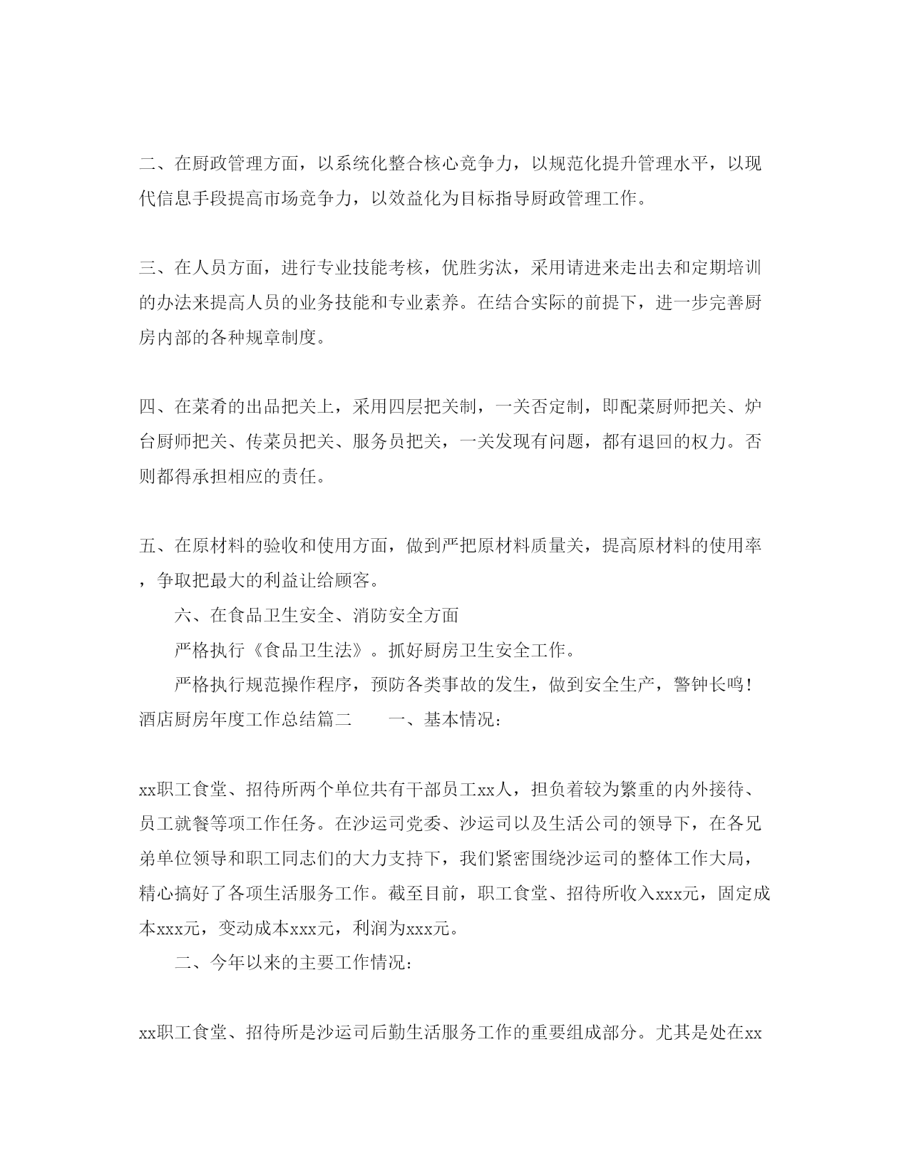 此资料由网络收集而来,如有侵权请告知上传者立即删除。资料共分享,我们负责传递知识。酒店厨房年度工作总结酒店厨房管理系统未来的发展趋势有着明显的特点,那就是实施信息化、智能化管理系统。今天小编给大家带来了酒店厨房年度工作总结,希望对大家有所帮助。酒店厨房年度工作总结篇一我于XX年11月正式到月宝宾馆工作,当时正是宾馆筹备最紧张的时期,餐饮部厨房的工作局面一切都是空白,设备如何添置、原材料如何采够、把关、市场宣传和产品如何定位、规章制度及各种日用单据的制定等。针对以上种种问题,我依据以往经验制定初步计划,一方面查找资料,涉入市场一线,夺取第一手材料,制定采购计划;另一方面根据周边市场实际情况初步确定菜品的定位,制定菜谱。争取定位准确,能为下一步的经营奠定基础。月宝大酒店在倍受领导的关注与关怀下开始了试营业,餐饮部厨房在努力完成上级下达的各项任务的同时,在菜品上随着客人的要求不断改进,以求菜品能更加适应市场。试营业以来,接待对象有团体会议、婚宴、以及各种规格的宴会接待和零点客人(主要集中在12月下旬)。营收达19万余元。试营业中,厨部的工作也出现了如:菜品的定位不准确,菜品设计没根据客人的要求而定,等一些问题。带着种种问题和努力改变提升产品形象的决心迎来了新的一年。现将XX年工作计划汇报如下:一、在菜品定位上,依照酒店整体的战略规划来开发规划菜品,根据餐厅菜点经营状况和市场客户调查,来不断地改进和提升产品形象。根据来酒店消费的团体会议,零点散客,宴会接待,三大块消费群体的需求,来不断丰富产品,使之能逐渐形成一组有针对性的风格化的产品。使产品在发展变化中树立自己的品牌。二、在厨政管理方面,以系统化整合核心竞争力,以规范化提升管理水平,以现代信息手段提高市场竞争力,以效益化为目标指导厨政管理工作。三、在人员方面,进行专业技能考核,优胜劣汰,采用请进来走出去和定期培训的办法来提高人员的业务技能和专业素养。在结合实际的前提下,进一步完善厨房内部的各种规章制度。四、在菜肴的出品把关上,采用四层把关制,一关否定制,即配菜厨师把关、炉台厨师把关、传菜员把关、服务员把关,一关发现有问题,都有退回的权力。否则都得承担相应的责任。五、在原材料的验收和使用方面,做到严把原材料质量关,提高原材料的使用率,争取把最大的利益让给顾客。六、在食品卫生安全、消防安全方面严格执行《食品卫生法》。抓好厨房卫生安全工作。严格执行规范操作程序,预防各类事故的发生,做到安全生产,警钟长鸣!酒店厨房年度工作总结篇二一、基本情况:xx职工食堂、招待所两个单位共有干部员工xx人,担负着较为繁重的内外接待、员工就餐等项工作任务。在沙运司党委、沙运司以及生活公司的领导下,在各兄弟单位领导和职工同志们的大力支持下,我们紧密围绕沙运司的整体工作大局,精心搞好了各项生活服务工作。截至目前,职工食堂、招待所收入xxx元,固定成本xxx元,变动成本xxx元,利润为xxx元。二、今年以来的主要工作情况:xx职工食堂、招待所是沙运司后勤生活服务工作的重要组成部分。尤其是处在xx,担负着较为繁忙的各级领导、来宾的接待任务和面对沙运司内部单身干部员工的住宿、生活等项工作。作为沙运司的一个“窗口”单位,这两个单位工作质量的好坏,直接关系到沙运司的对外形象和广大员工的切身利益。因此,我们坚持做好以下几个方面的工作:1、围绕大局,提高认识。今年以来,沙运司的各项生产经营活动和整体工作大局呈现出了前所未有的紧张繁忙景象。在此情况下,我们的工作节奏和各项管理、生活服务工作如果不能够紧紧地跟上沙运司快速发展的大好形势,必将愧对沙运司领导的信任和支持,也无颜面对辛勤奋战在各项工作第一线的沙运司广大干部和员工。因此,我们把切实做好各项生活综合服务工作当作贯彻沙运司党委、沙运司全年奋斗目标和落实科学发展观,坚持以人为本,关心职工生活,为广大干部员工办好事、办实事的重要方面切实抓紧抓好,使职工食堂、招待所真正成为“职工之家”和干部员工满意的场所。特别是我们能够紧密沙运司的整体工作大局,密切联系本单位的实际,坚持对员工进行“生活服务无小事”、“做好各项接待和为员工服务是我们的本分”等项教育,使大家从思想上认识到了做好本职工作的重要性,从而自觉地投身到各项服务工作中去。今年以来,职工食堂、招待所的所有工作人员,都能以沙运司的大局为重,尽心尽力地做好各自的本职工作,受到了领导和员工的称赞。2、加强管理,规范运作。职工食堂和招待所的工作经常与干部员工打交道,涉及大家的吃喝住等一些具体问题,被人们认为是“出力不讨好的工作。在这种情况下,我们没有因为自己虽然做了很多工作但不到大家的认可而懊悔,而是尽心尽力地搞好各项服务。今年以来,我们没有辜负沙运司领导和广大干部员工的期望,领导以身作则,加强各方