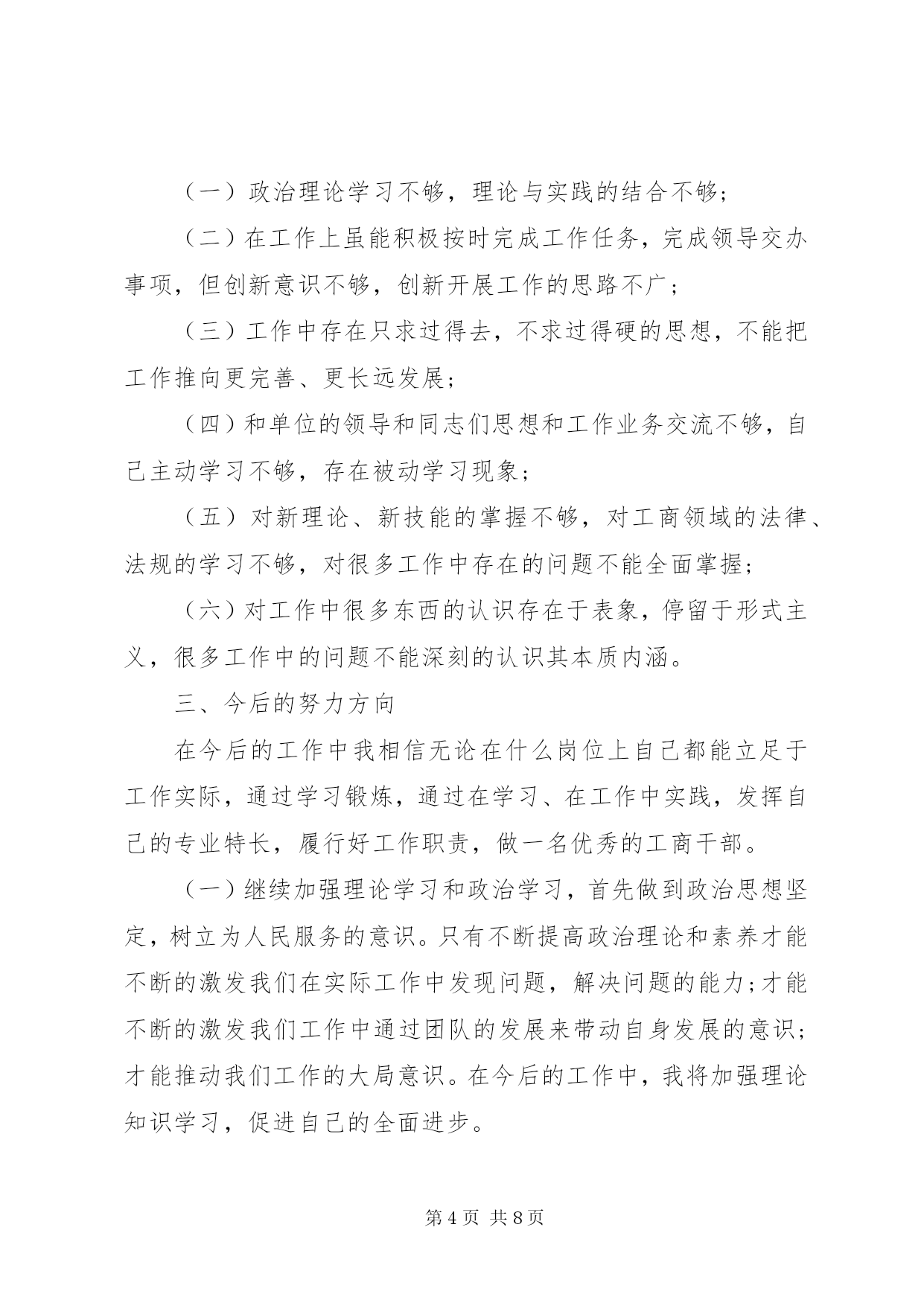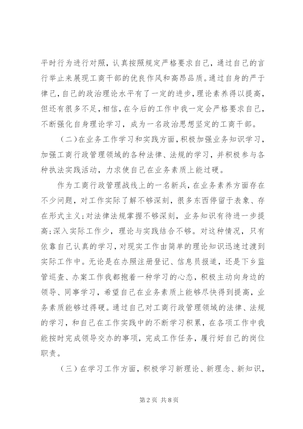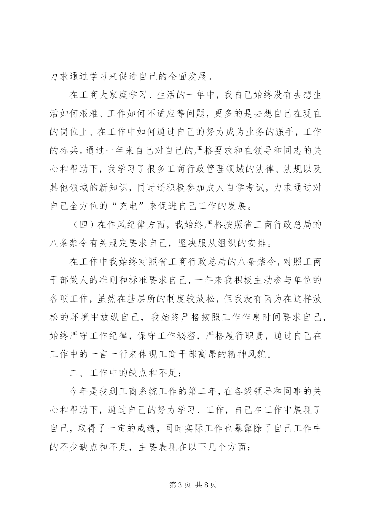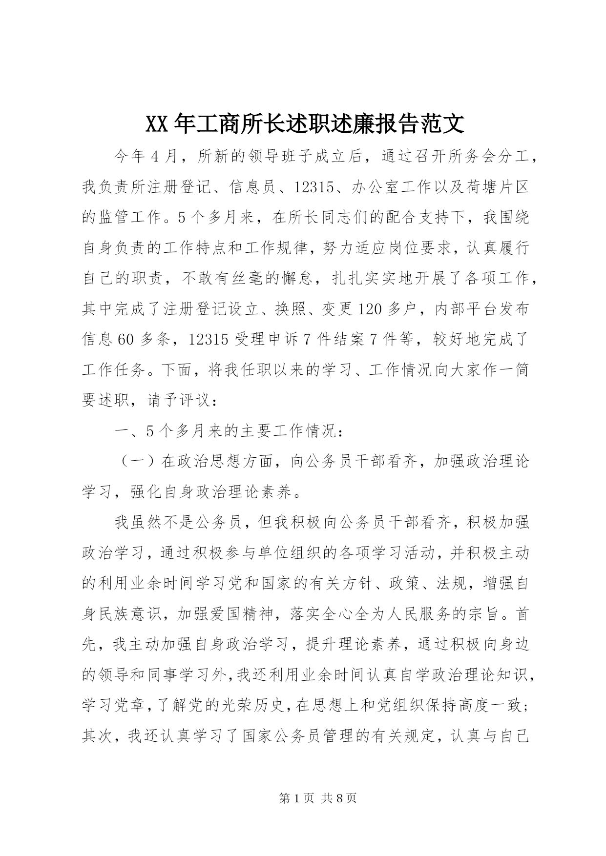 第PAGE\*Arabic\*MERGEFORMAT8页共NUMPAGES\*MERGEFORMAT8页XX年工商所长述职述廉报告范文今年4月,所新的领导班子成立后,通过召开所务会分工,我负责所注册登记、信息员、12315、办公室工作以及荷塘片区的监管工作。5个多月来,在所长同志们的配合支持下,我围绕自身负责的工作特点和工作规律,努力适应岗位要求,认真履行自己的职责,不敢有丝毫的懈怠,扎扎实实地开展了各项工作,其中完成了注册登记设立、换照、变更120多户,内部平台发布信息60多条,12315受理申诉7件结案7件等,较好地完成了工作任务。下面,将我任职以来的学习、工作情况向大家作一简要述职,请予评议:一、5个多月来的主要工作情况:(一)在政治思想方面,向公务员干部看齐,加强政治理论学习,强化自身政治理论素养。我虽然不是公务员,但我积极向公务员干部看齐,积极加强政治学习,通过积极参与单位组织的各项学习活动,并积极主动的利用业余时间学习党和国家的有关方针、政策、法规,增强自身民族意识,加强爱国精神,落实全心全为人民服务的宗旨。首先,我主动加强自身政治学习,提升理论素养,通过积极向身边的领导和同事学习外,我还利用业余时间认真自学政治理论知识,学习党章,了解党的光荣历史,在思想上和党组织保持高度一致;其次,我还认真学习了国家公务员管理的有关规定,认真与自己平时行为进行对照,认真按照规定严格要求自己,通过自己的言行举止来展现工商干部的优良作风和高昂品质。通过自身的严于律己,自己的政治理论水平有了一定的进步,理论素养得以提高,但还有很多不足,相信,在今后的工作中我一定会严格要求自己,不断强化自身理论学习,成为一名政治思想坚定的工商干部。(二)在业务工作学习和实践方面,积极加强业务知识学习,加强工商行政管理领域的各种法律、法规的学习,并积极参与各种执法实践活动,力求使自己在业务素质上能过硬。作为工商行政管理战线上的一名新兵,在业务素养方面存在不少问题,对工作实际了解不够深刻,很多东西停留于表象、存在形式主义;对法律法规掌握不够深刻,业务知识有待进一步提高;深入实际工作少,理论与实践结合不够。对这种情况,只有依靠自己认真的学习,对现实工作由简单的理论知识迅速过渡到实际工作中。无论是在办照注册登记、信息员报道,还是下乡监管巡查、办案工作我都抱着一种学习的心态,积极主动向身边的领导、同事学习,希望自己在业务素质上能够尽快得到提高,业务素质能够过得硬。通过自己对工商行政管理领域的法律、法规的学习,和自己在工作实践中的不断学习积累,在各项工作中我能按时完成领导交办的事项,完成工作任务,履行好自己的岗位职责。(三)在学习工作方面,积极学习新理论、新理念、新知识,力求通过学习来促进自己的全面发展。在工商大家庭学习、生活的一年中,我自己始终没有去想生活如何艰难、工作如何不适应等问题,更多的是去想自己在现在的岗位上、在工作中如何通过自己的努力成为业务的强手,工作的标兵。通过一年来自己对自己的严格要求和在领导和同志的关心和帮助下,我学习了很多工商行政管理领域的法律、法规以及其他领域的新知识,同时还积极参加成人自学考试,力求通过对自己全方位的“充电”来促进自己工作的发展。(四)在作风纪律方面,我始终严格按照省工商行政总局的八条禁令有关规定要求自己,坚决服从组织的安排。在工作中我始终对照省工商行政总局的八条禁令,对照工商干部做人的准则和标准要求自己,一年来我积极主动参与单位的各项工作,虽然在基层所的制度较放松,但我没有因为在这样放松的环境中放纵自己,我始终严格按照工作作息时间要求自己,始终严守工作纪律,保守工作秘密,严格履行职责,通过自己在工作中的一言一行来体现工商干部高昂的精神风貌。二、工作中的缺点和不足:今年是我到工商系统工作的第二年,在各级领导和同事的关心和帮助下,通过自己的努力学习、工作,自己在工作中展现了自己,取得了一定的成绩,同时实际工作也暴露除了自己工作中的不少缺点和不足,主要表现在以下几个方面:(一)政治理论学习不够,理论与实践的结合不够;(二)在工作上虽能积极按时完成工作任务,完成领导交办事项,但创新意识不够,创新开展工作的思路不广;(三)工作中存在只求过得去,不求过得硬的思想,不能把工作推向更完善、更长远发展;(四)和单位的领导和同志们思想和工作业务交流不够,自己主动学习不够,存在被动学习现象;(五)对新理论、新技能的掌握不够,对工商领域的法律、法规的学习不够,对很多工作中存在的问题不能全面掌握;(六)对工作中很多东西的认识存在于表象,停留于形式主义,很多工作中的问题不能深刻的认识其本质内涵。三、今后的努力方向在今后的工作中我相信无论在什么岗位上自己都能立足于工作实际,通过学习锻炼,通过在学习、在工作中实践,发挥自己的专