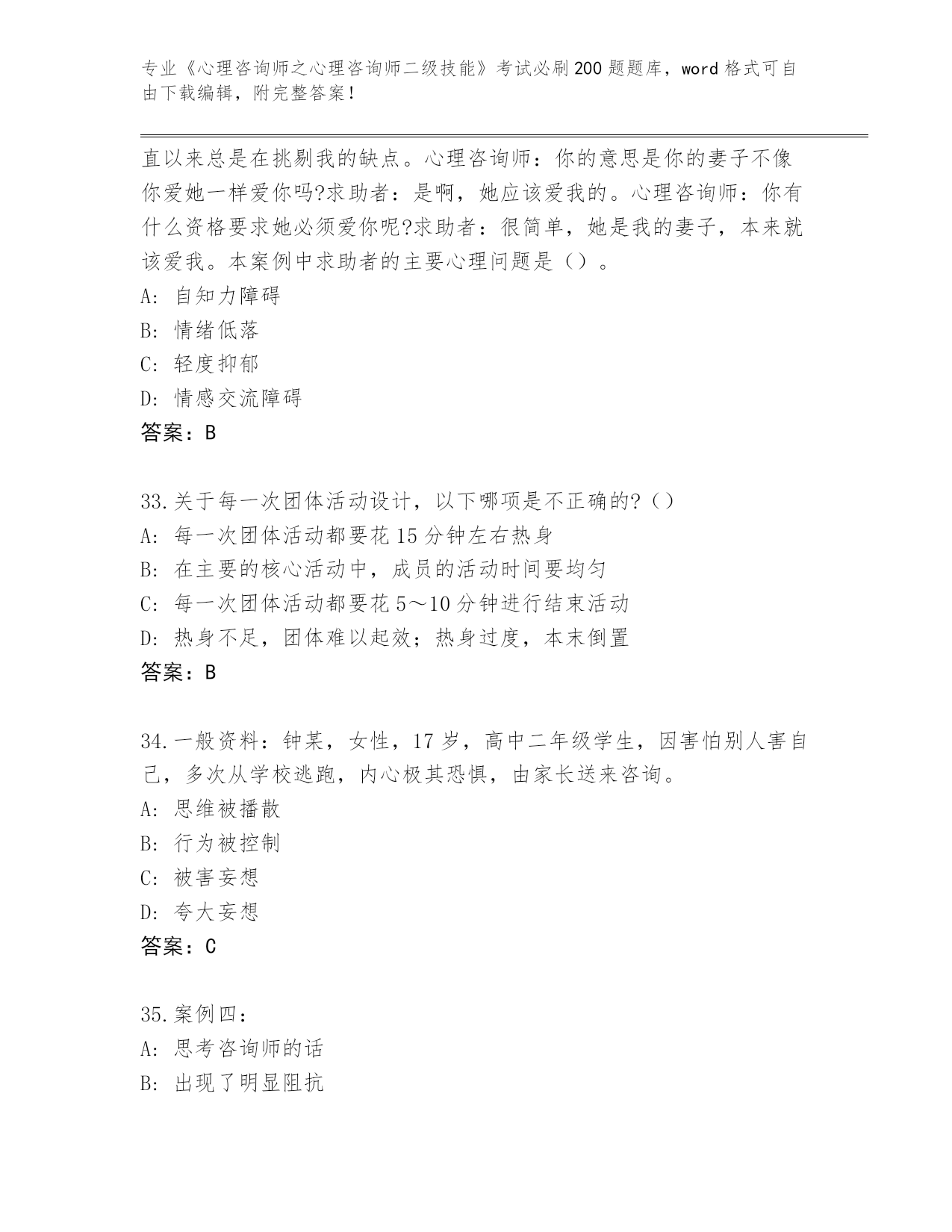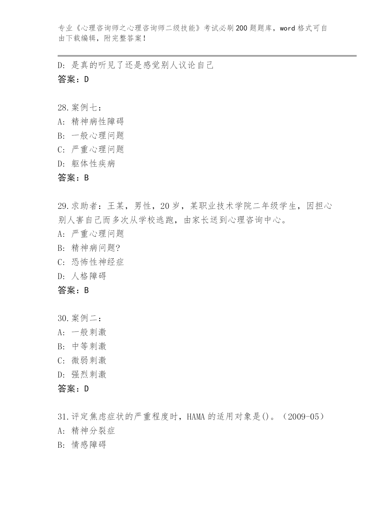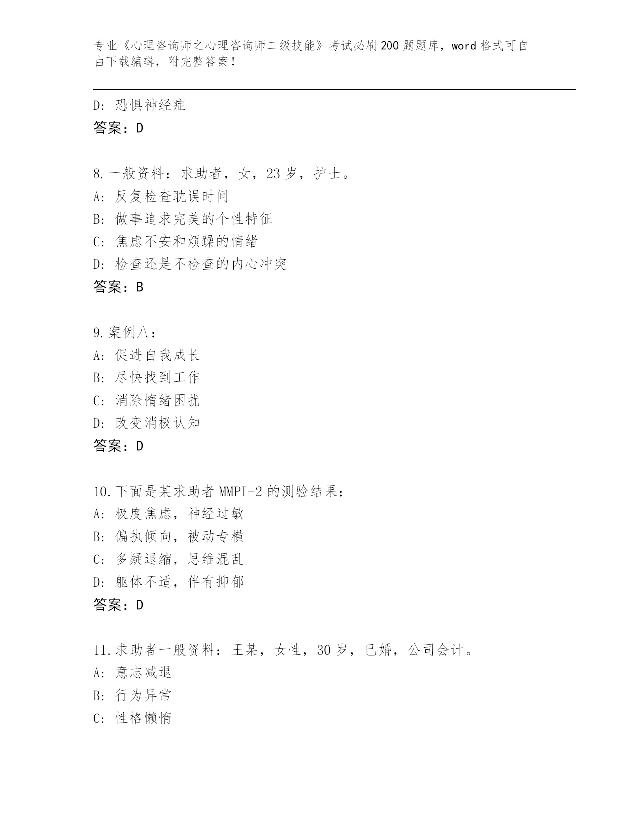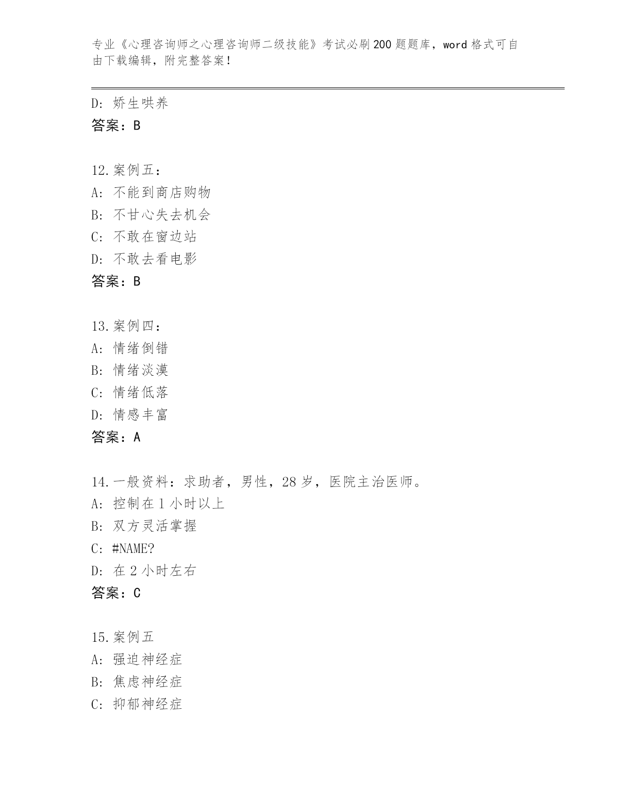 江苏省港闸区完整版《心理咨询师之心理咨询师二级技能》考试必刷200题真题题库附解析答案