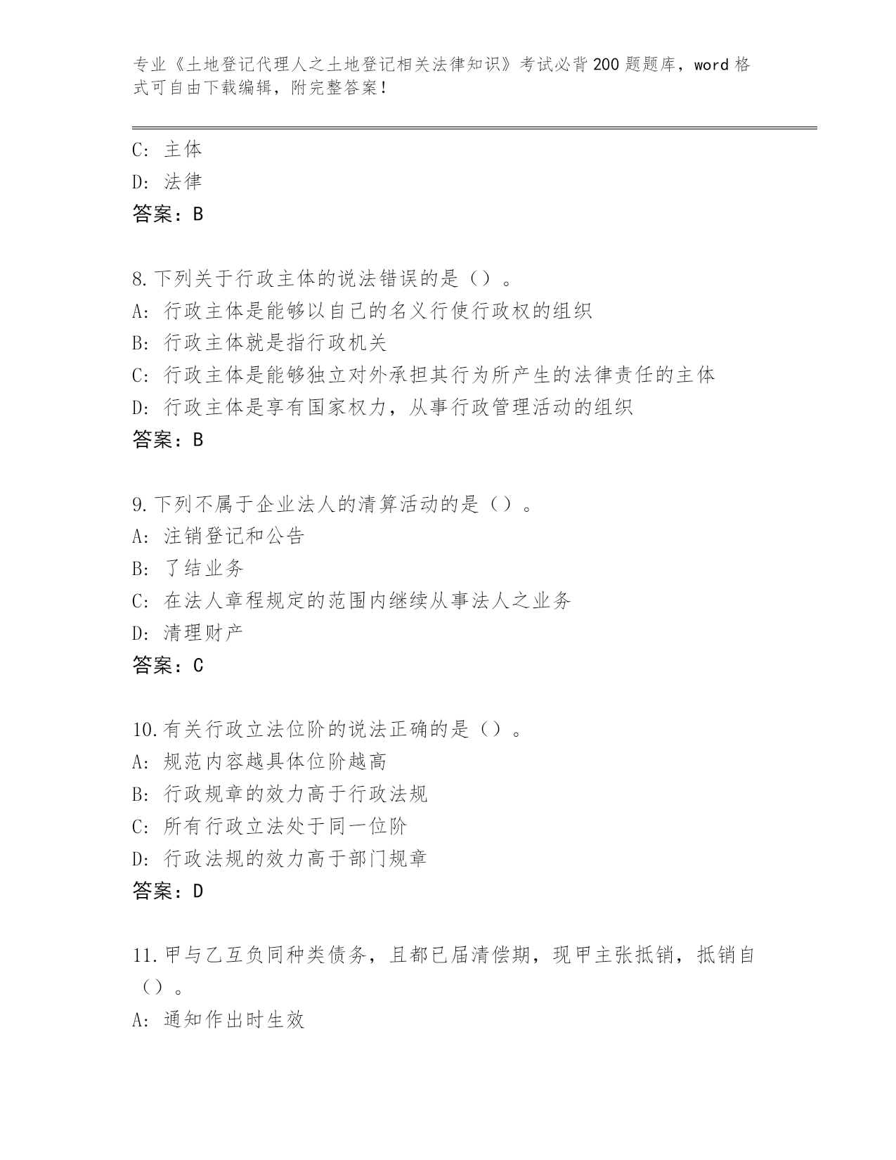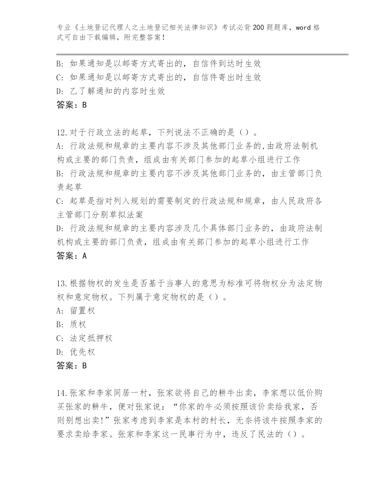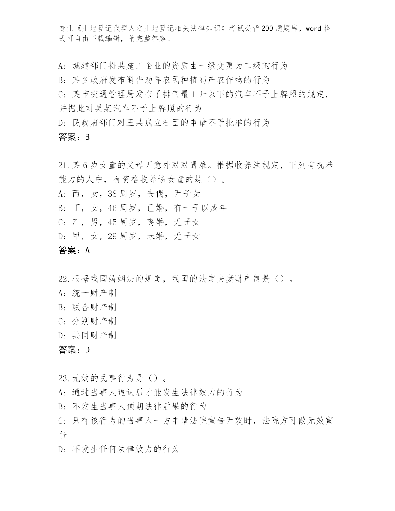 2024黑龙江省泰来县《土地登记代理人之土地登记相关法律知识》资格考试必刷200题真题(网校专用)