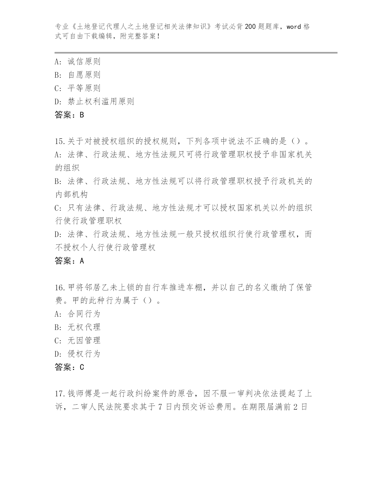 江西省《土地登记代理人之土地登记相关法律知识》考试必背200题题库(必刷)