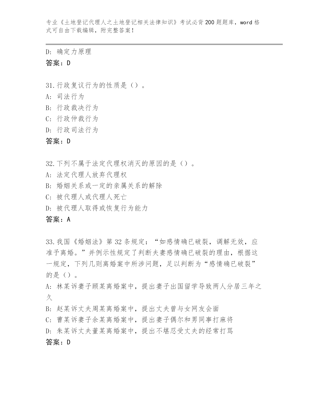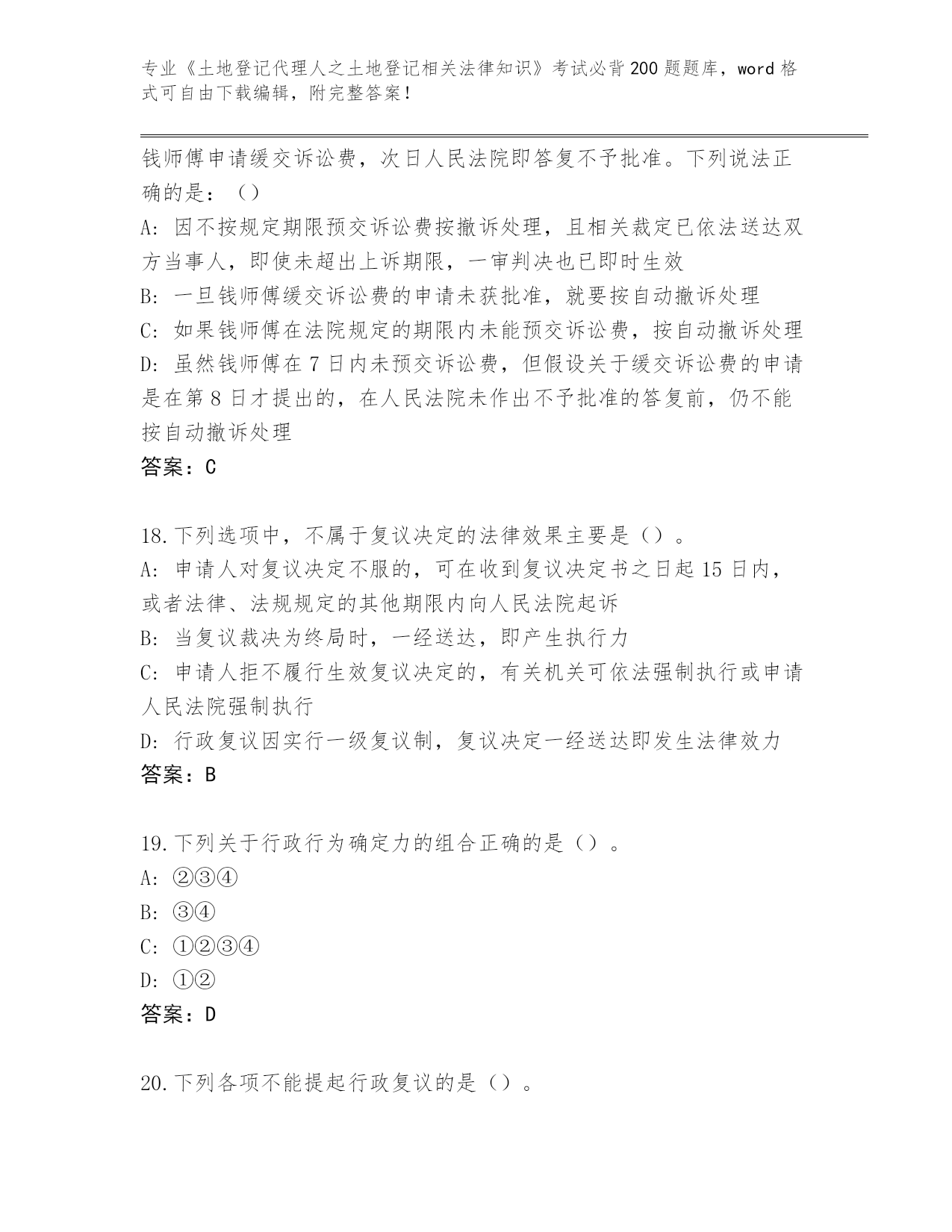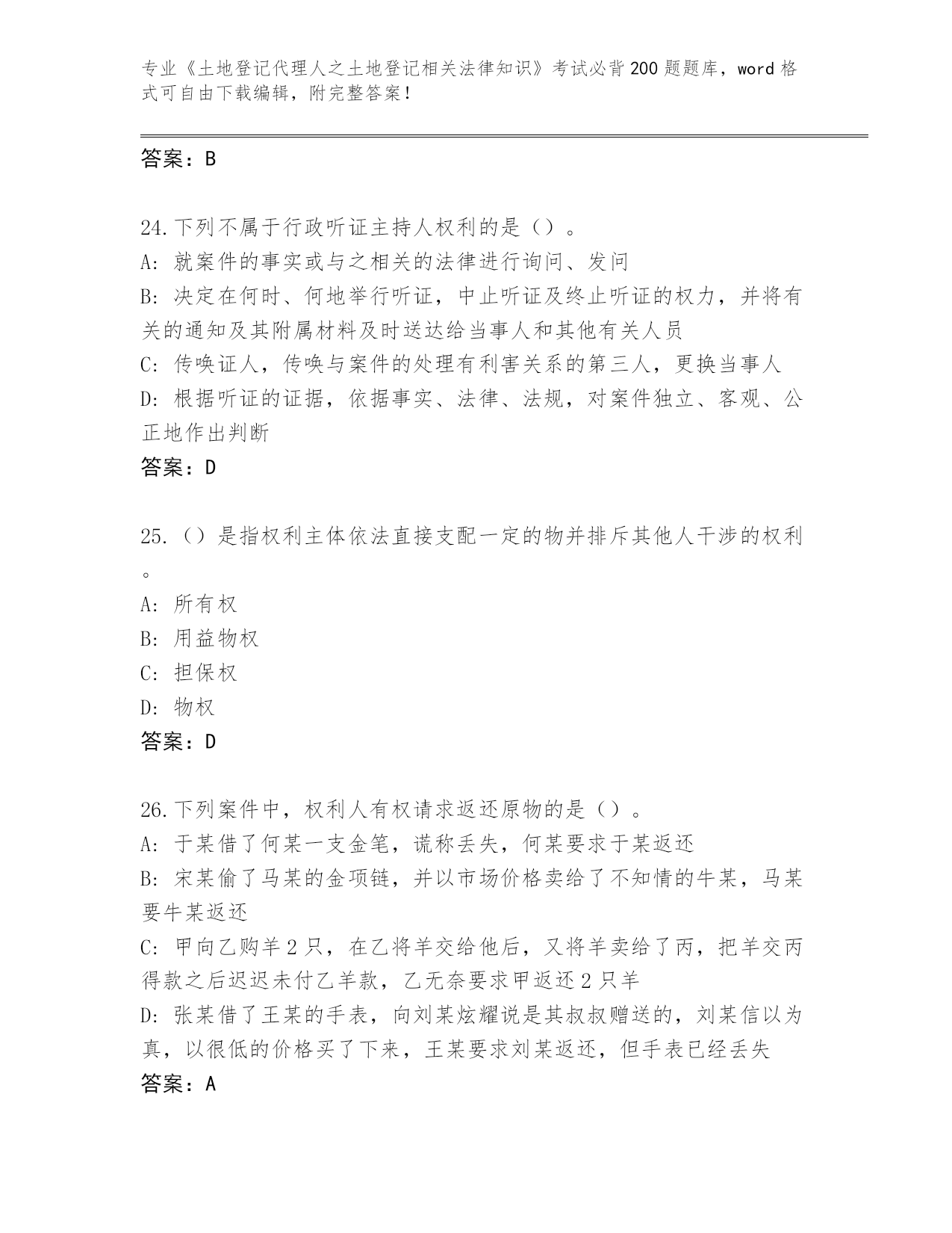 2024年江西省新干县《土地登记代理人之土地登记相关法律知识》资格考试必刷200题题库(突破训练)