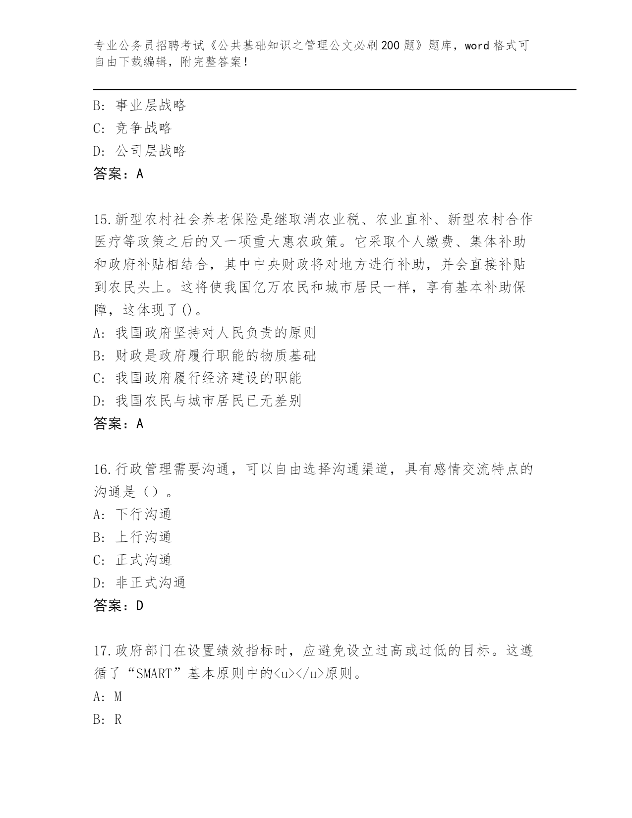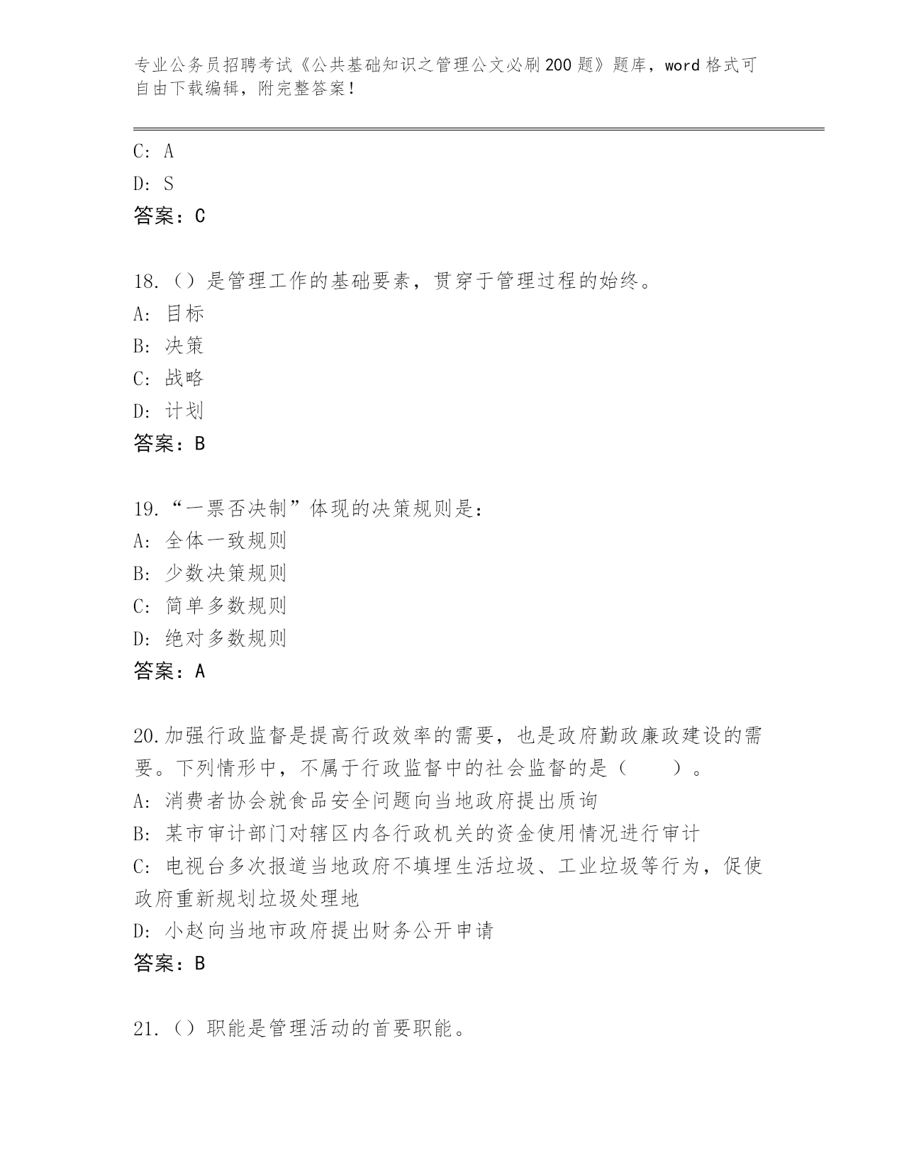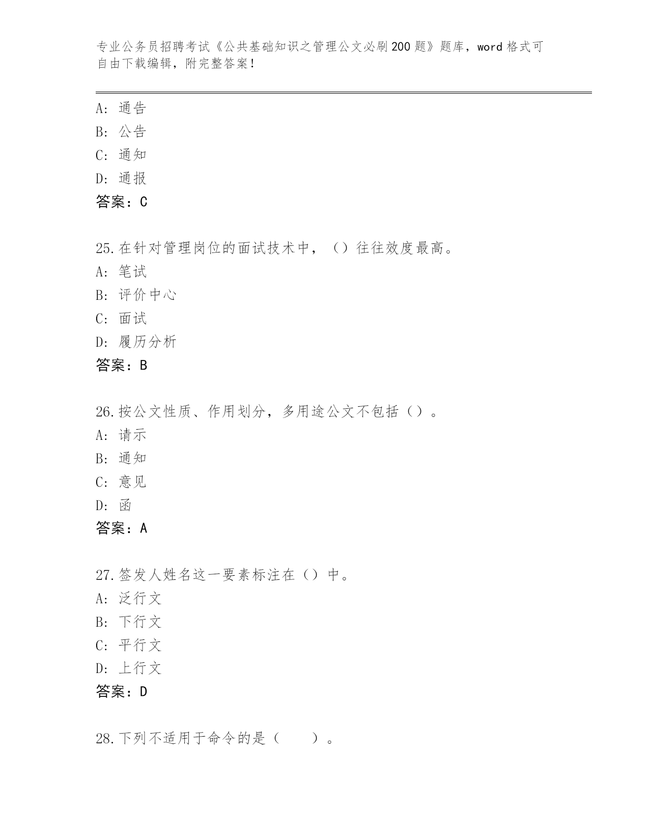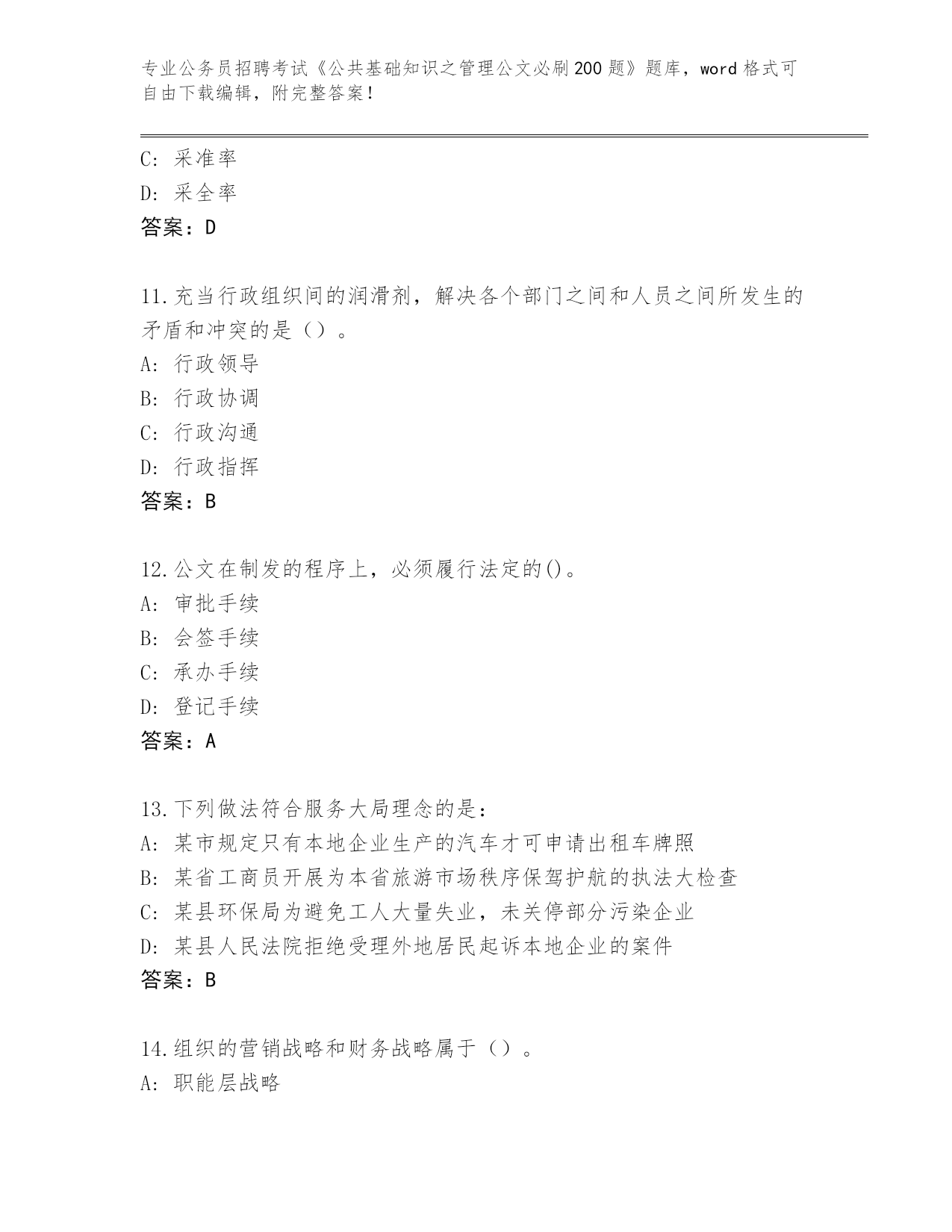 吉林省安图县2024公务员招聘考试《公共基础知识之管理公文必刷200题》完整题库(夺冠)