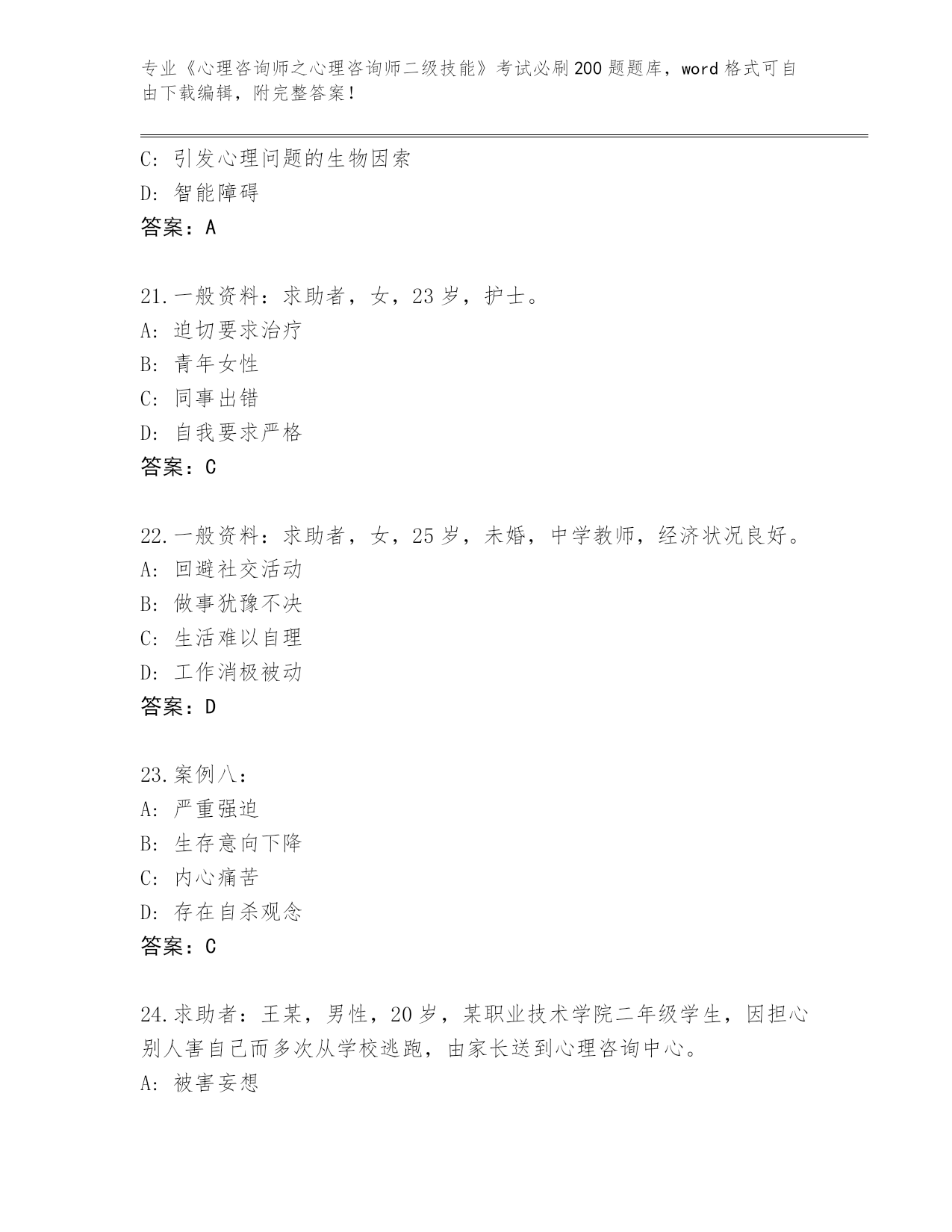 贵州省2024年《心理咨询师之心理咨询师二级技能》考试必刷200题题库附答案【预热题】